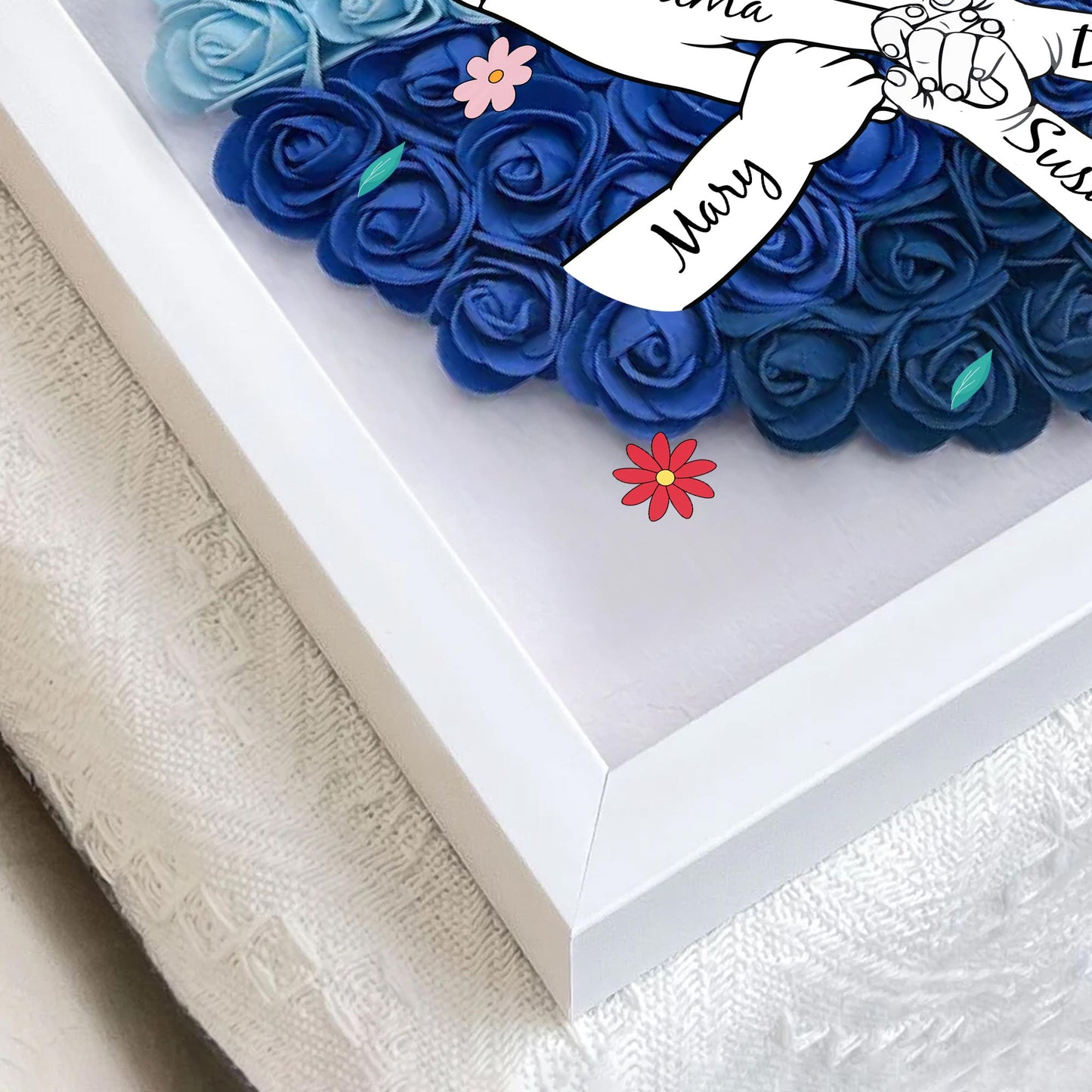 Abuela, te queremos, flores y manos - Caja de sombras de flores personalizada - MOM011_HESHA