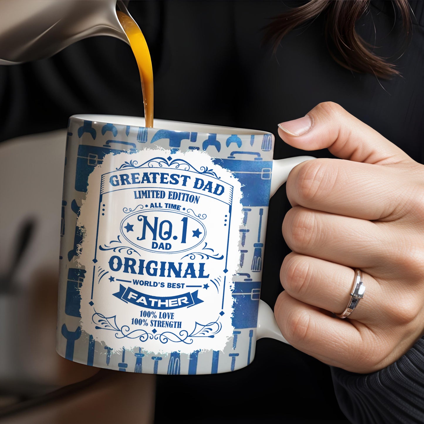 Edición limitada "El mejor papá", el mejor padre del mundo, diseño de herramientas y llave inglesa - Taza de café personalizada - DAD123_MG