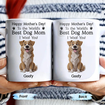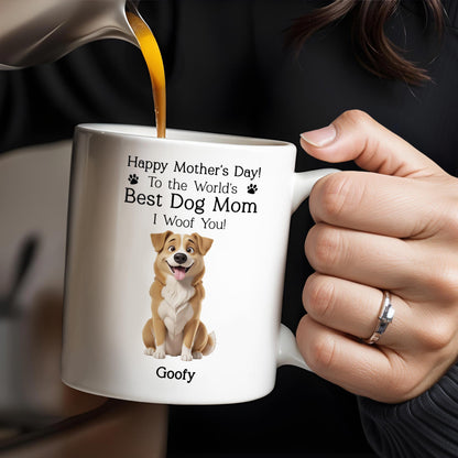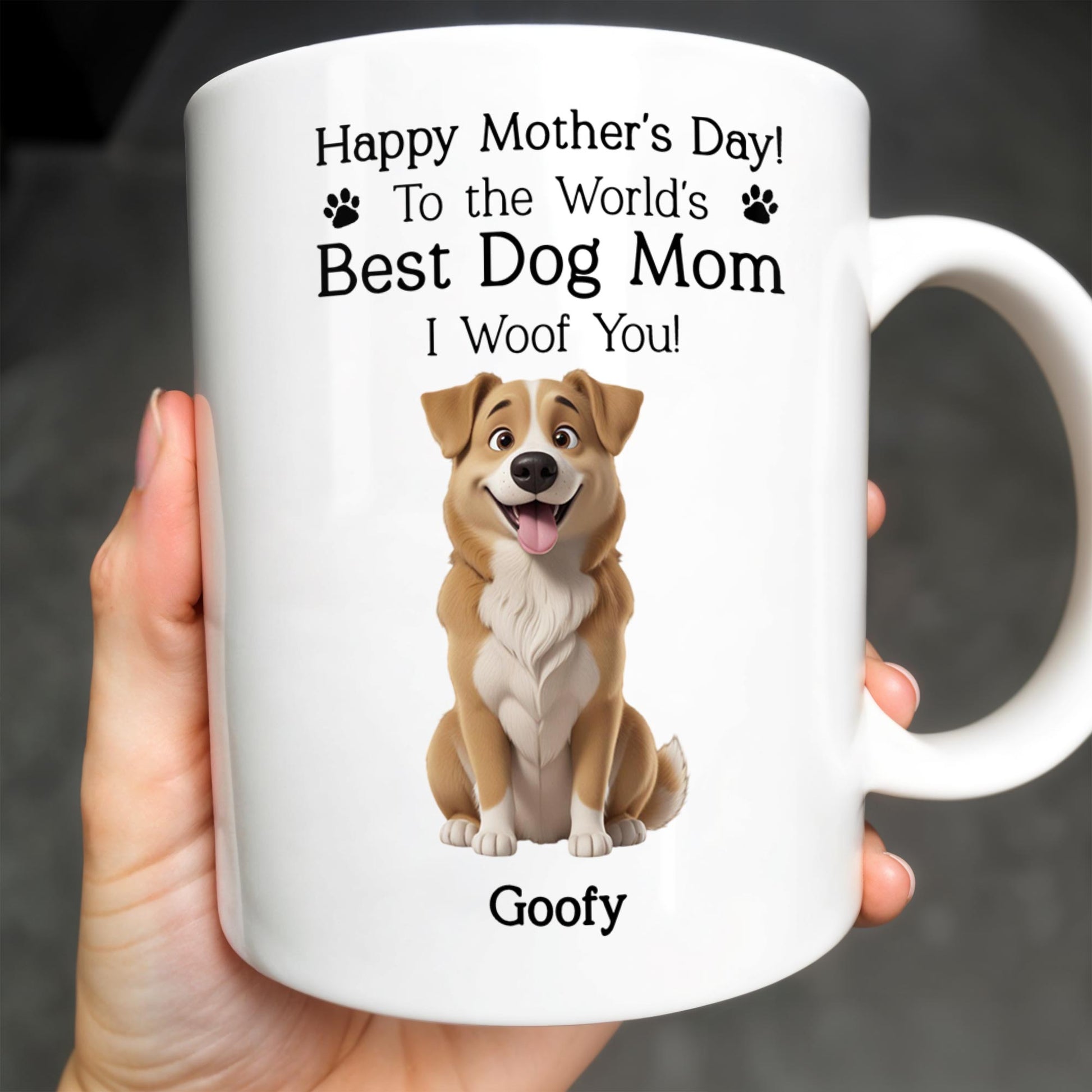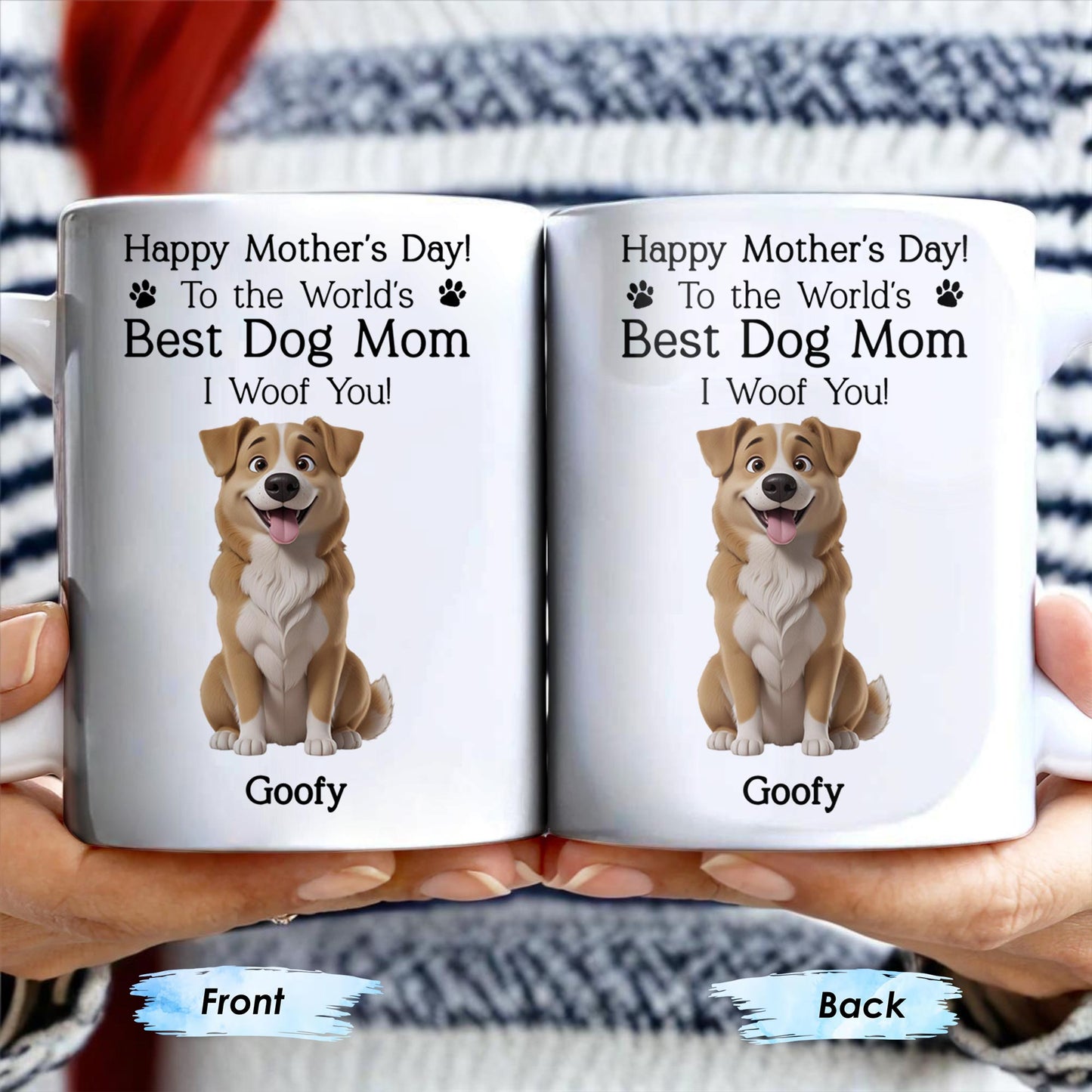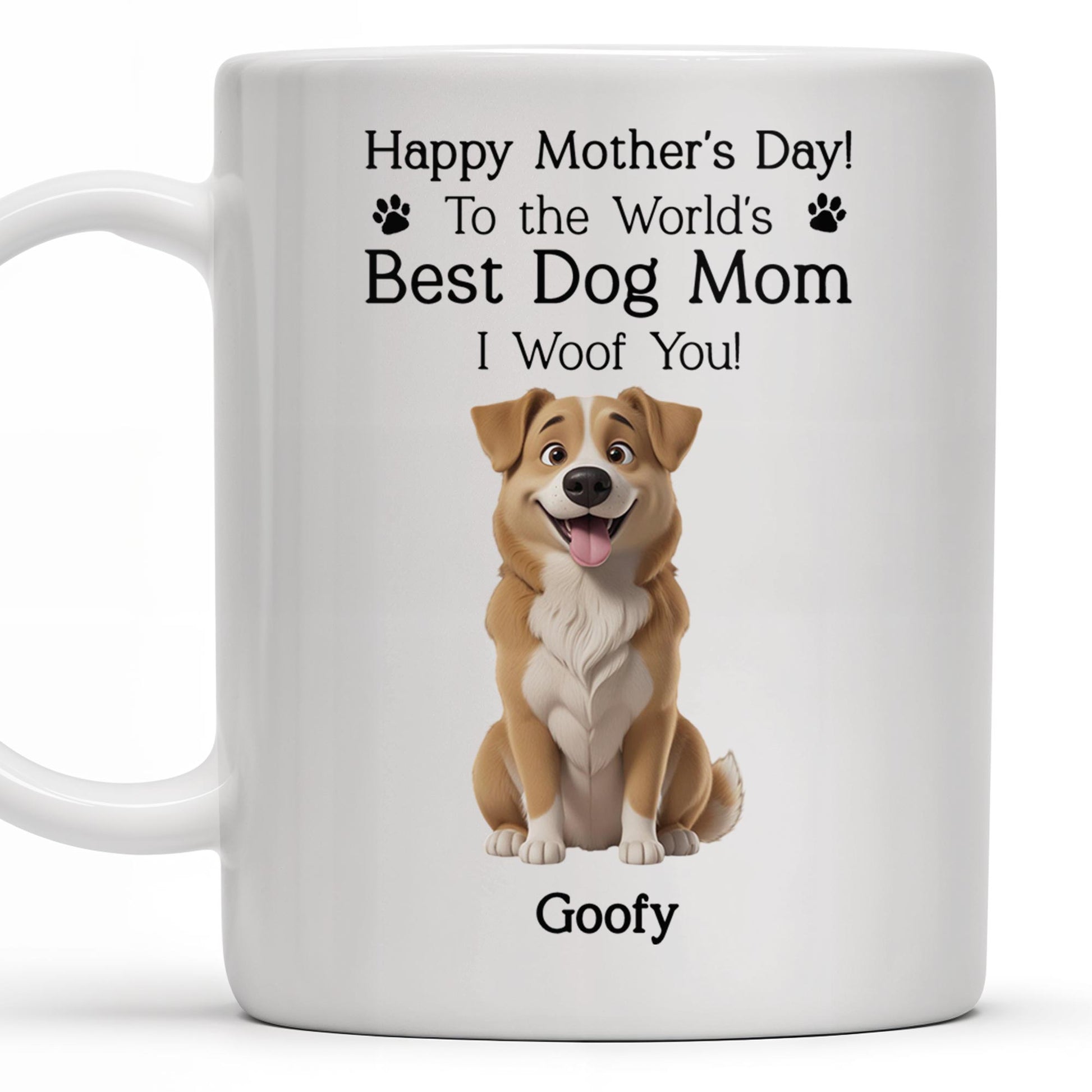 Happy Mother's Day! To the World's Best Dog Mom I Woof You, Dog and Paw Prints, Personalized Custom Coffee Mug, Gift for Dog Moms