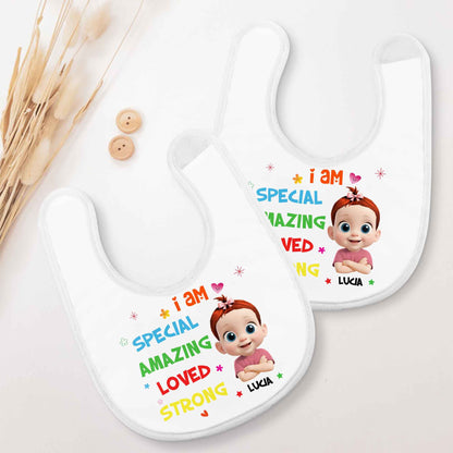 I Am Special, Amazing, Loved, Strong Baby Bib, Gift For Baby and Daughter