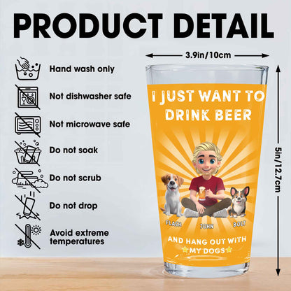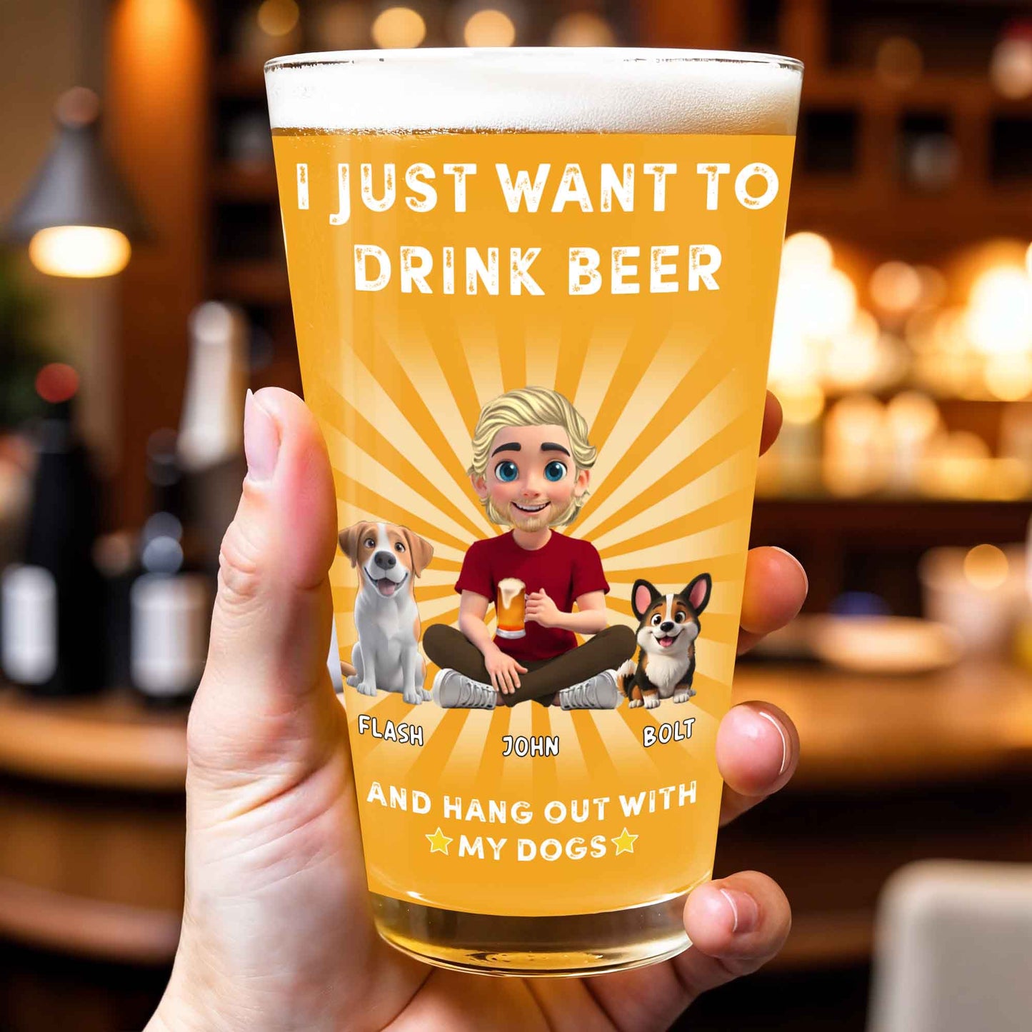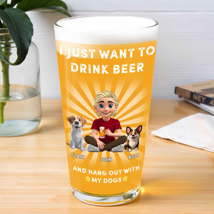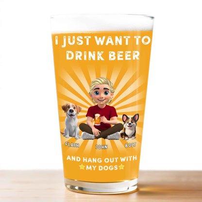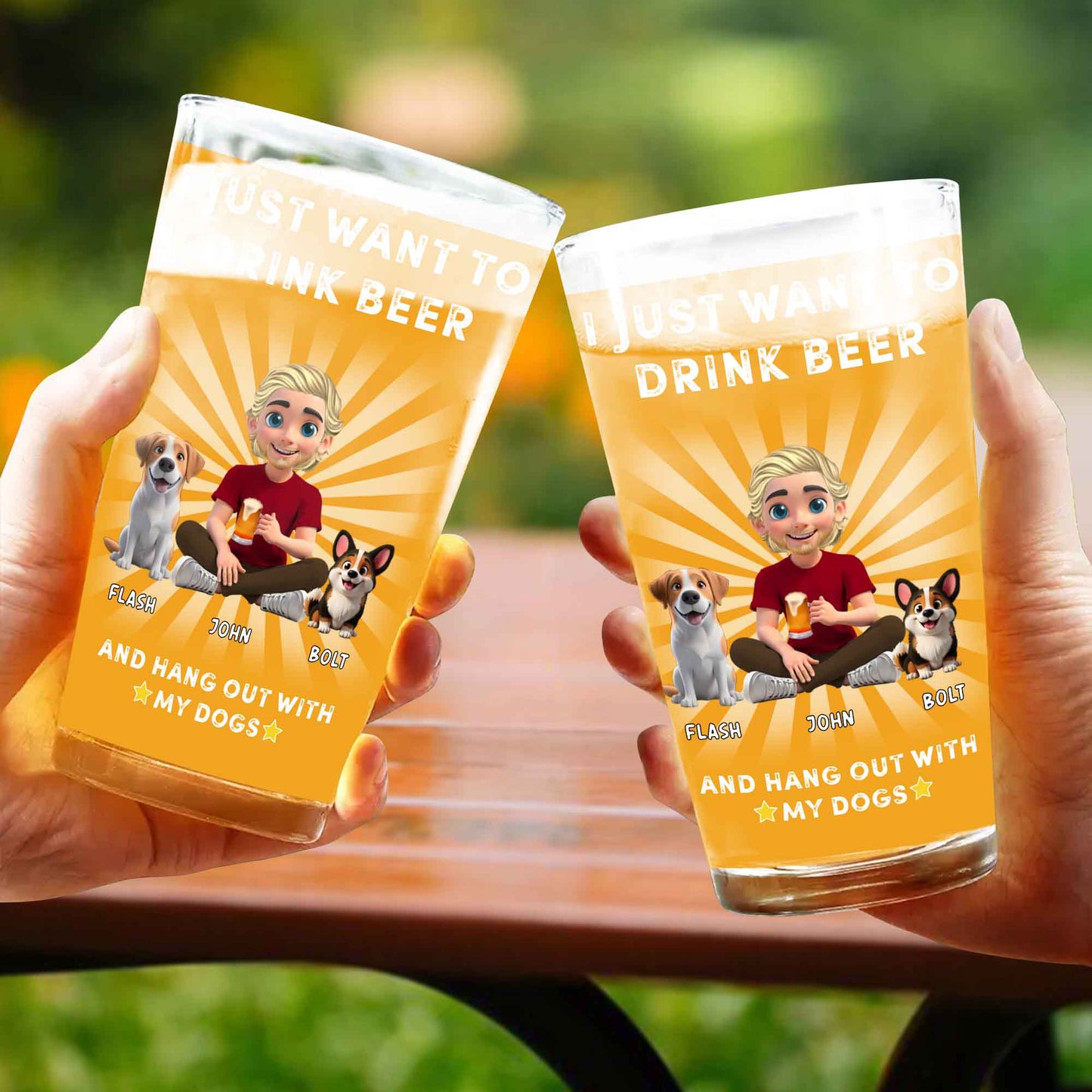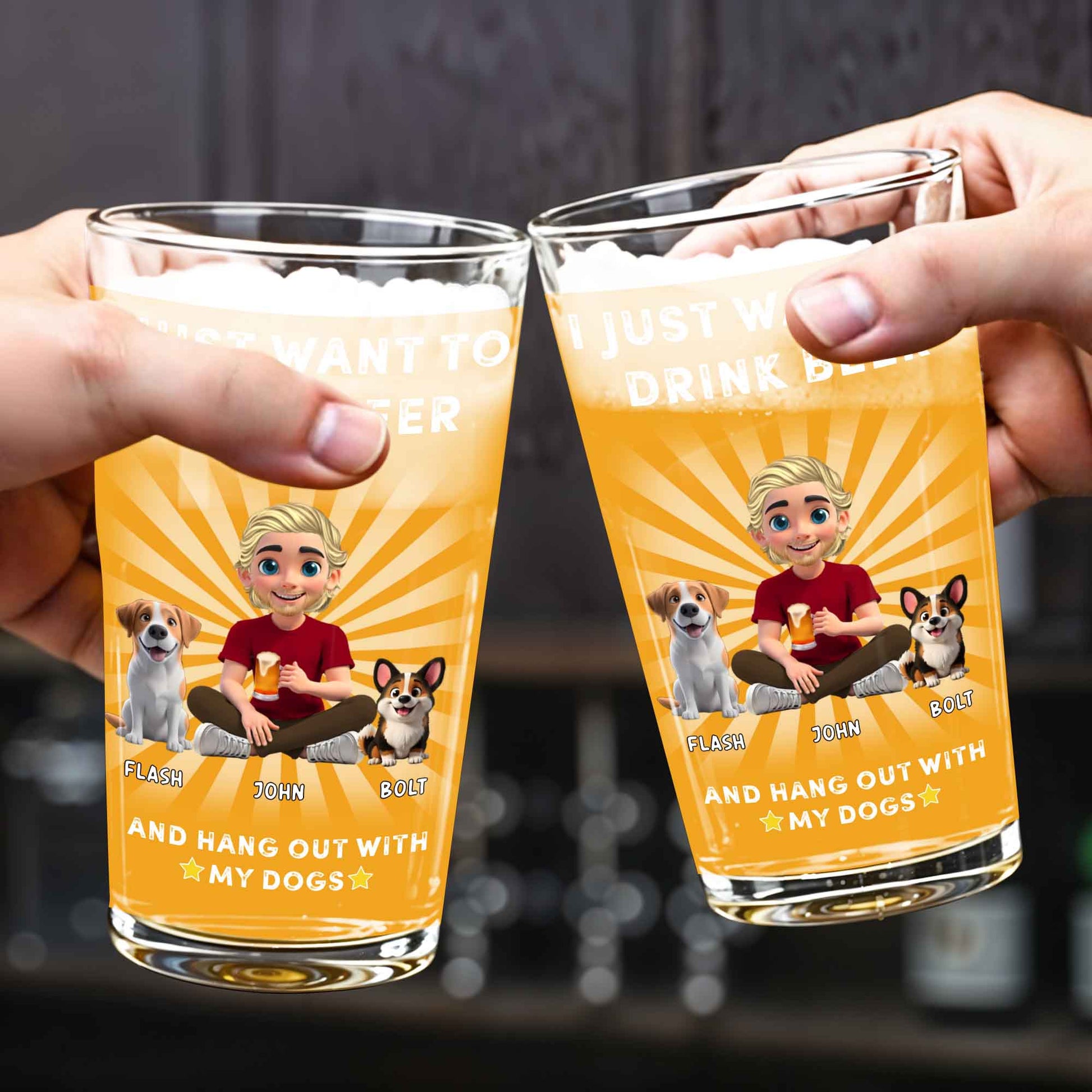 I Just Want To Drink Beer And Hang Out With My Dogs, Personalized Custom Beer Glass, Gift For Dog Lovers
