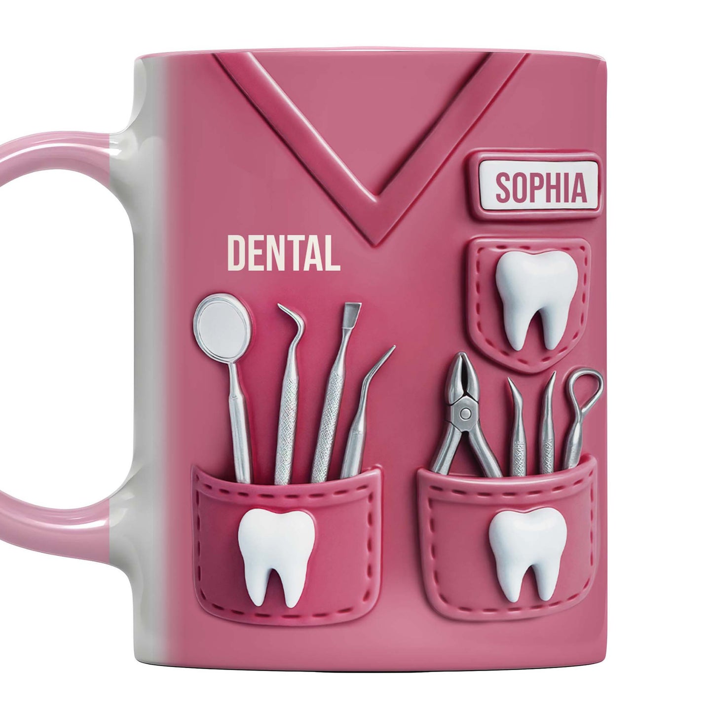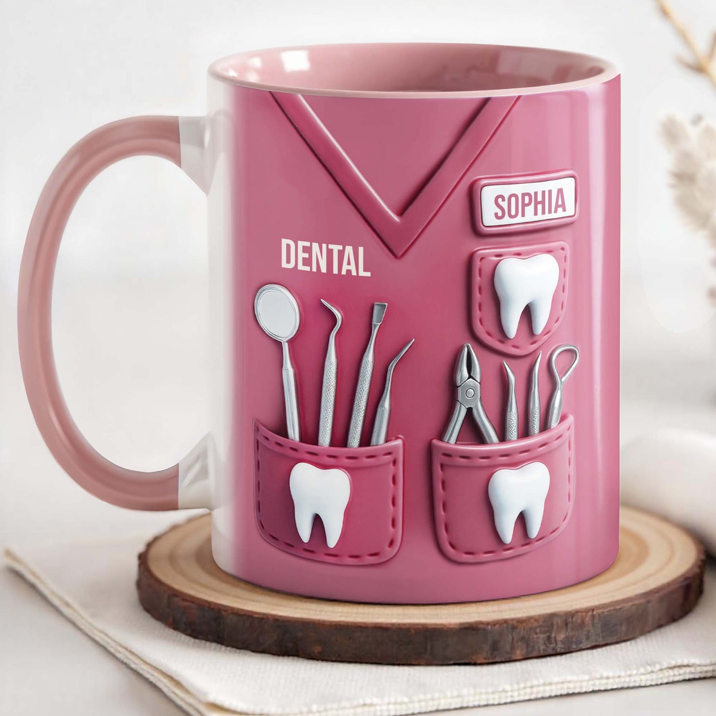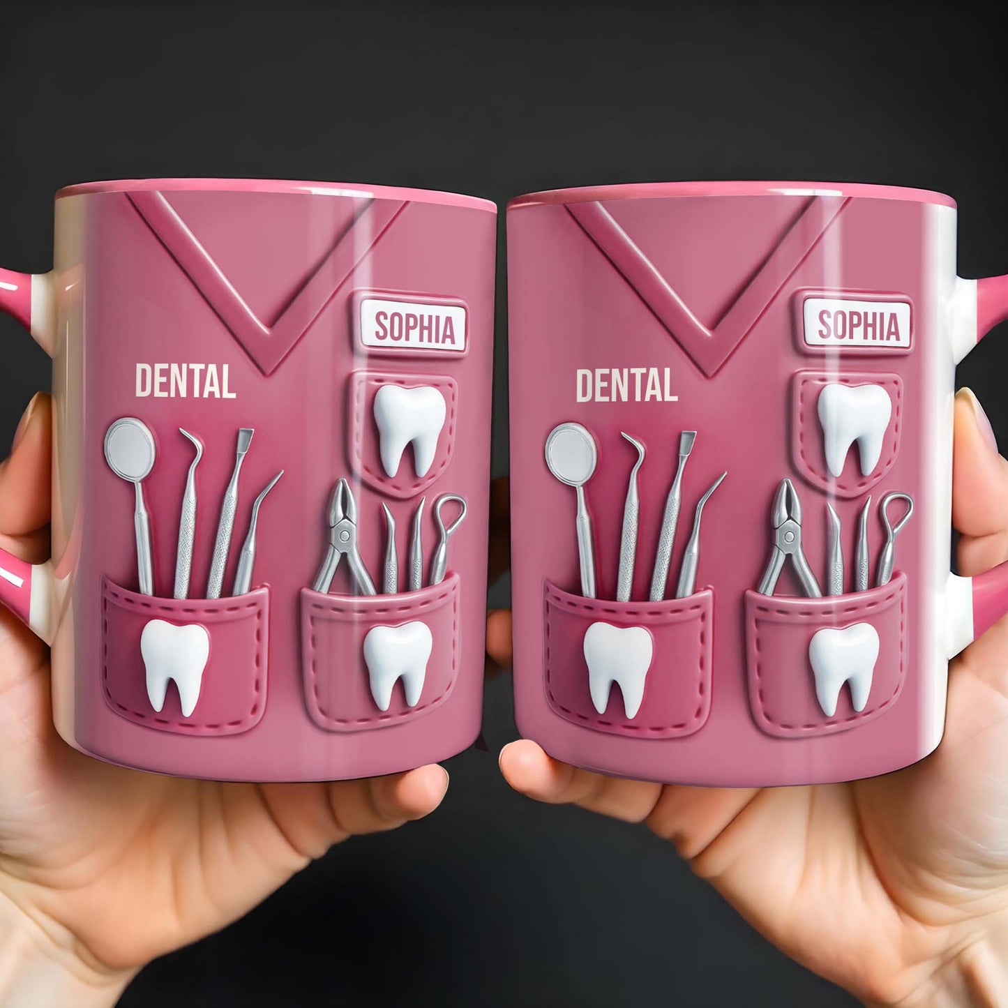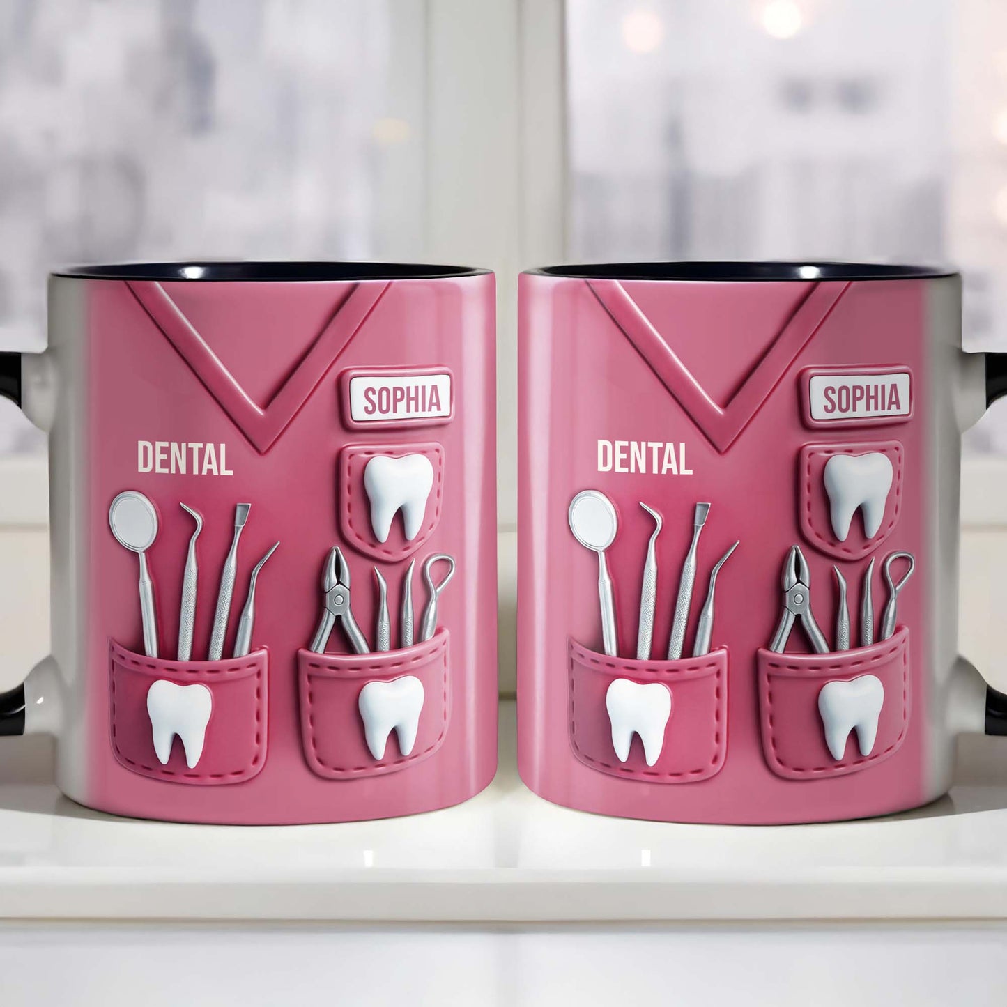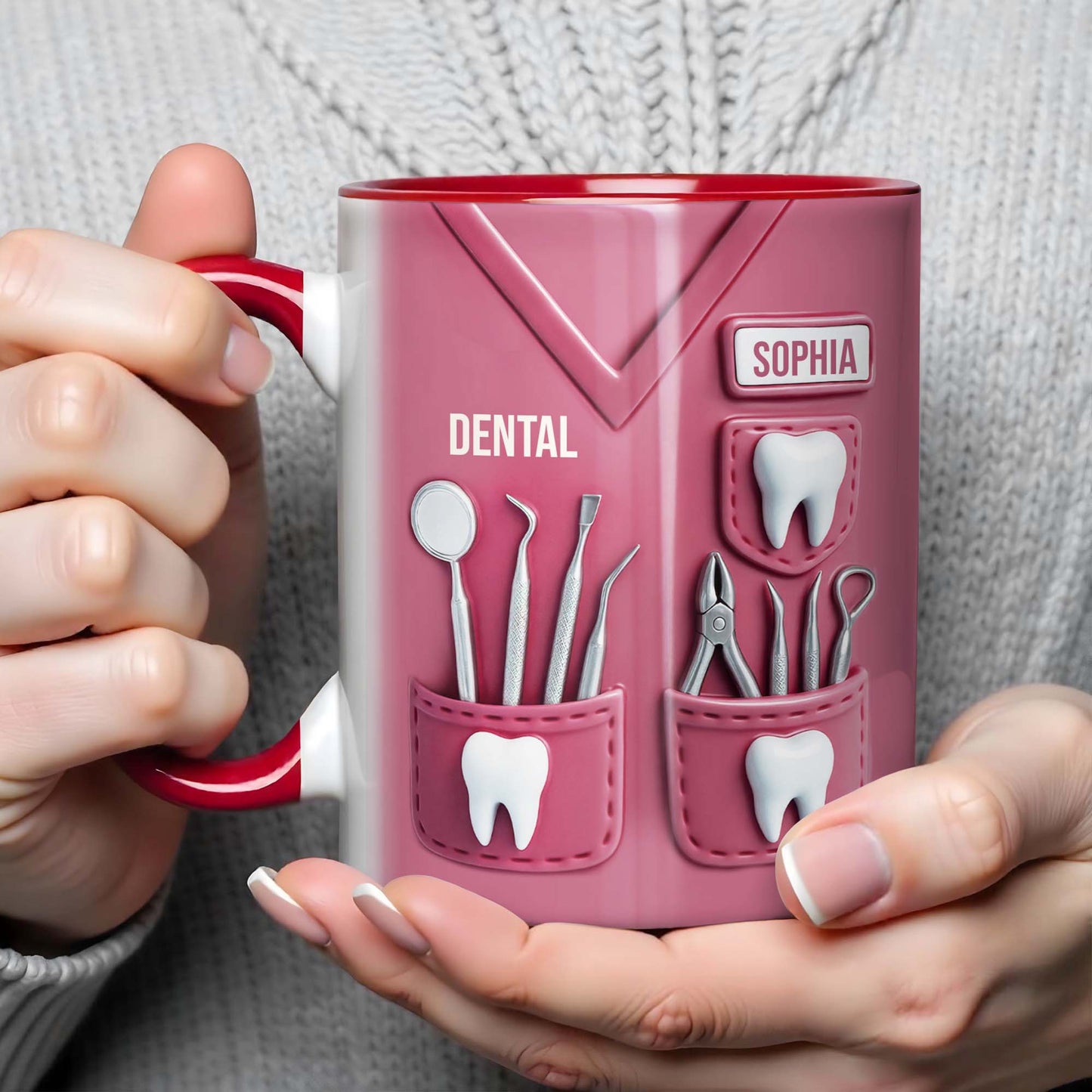 Ideal Gift for Dentists and Dental Nurses, Dental Tools and Teeth, Personalized Custom Accent Mug, Gift For Dental Professionals