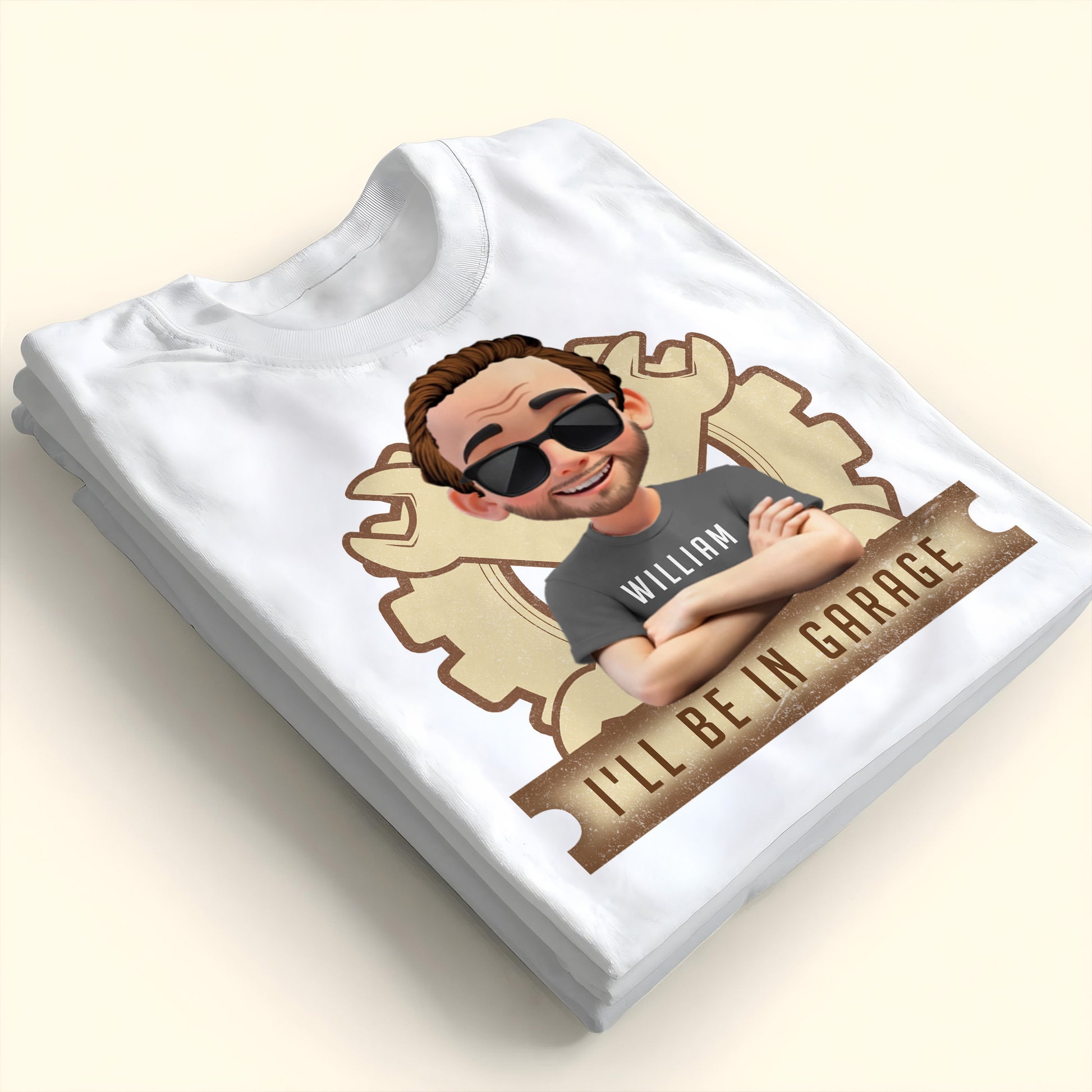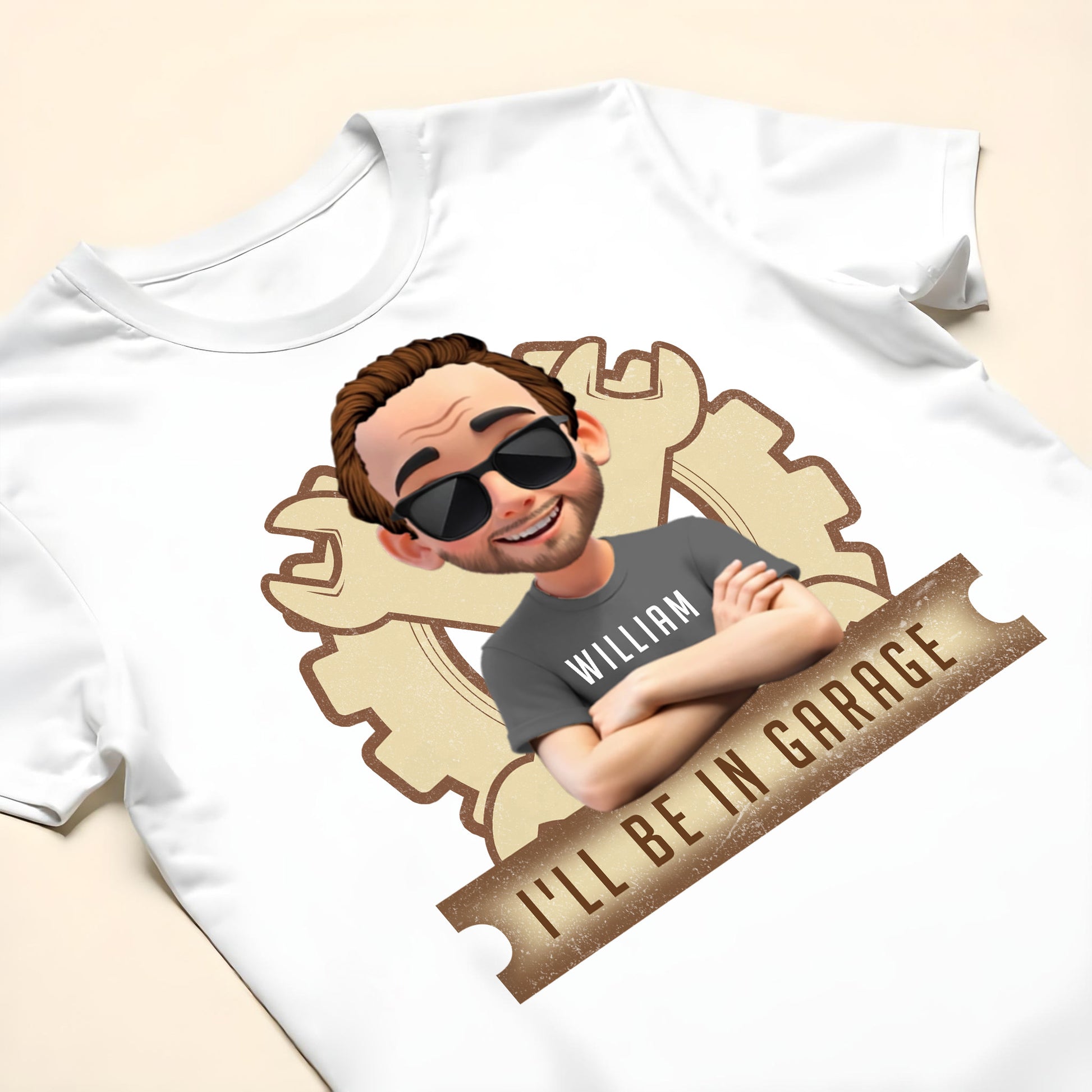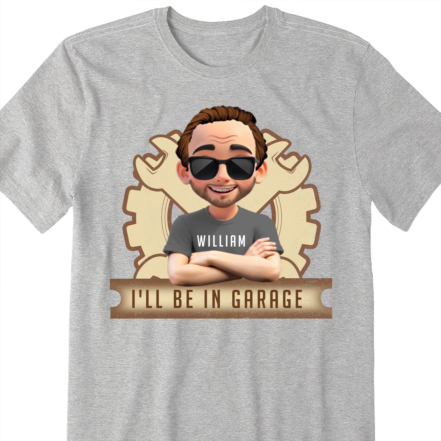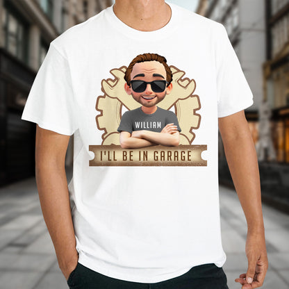 I'll Be In Garage, Gear and Sunglasses Design, Personalized Custom Unisex T-shirt, Gift For Men