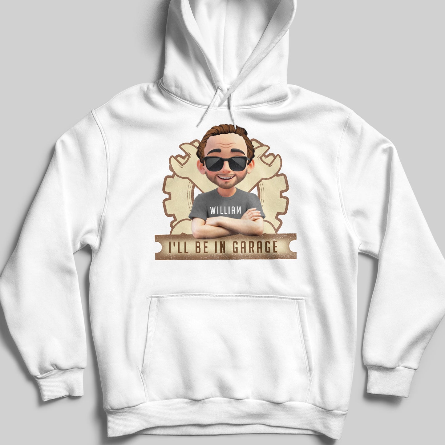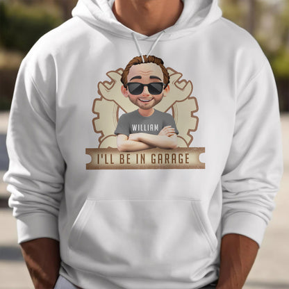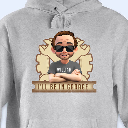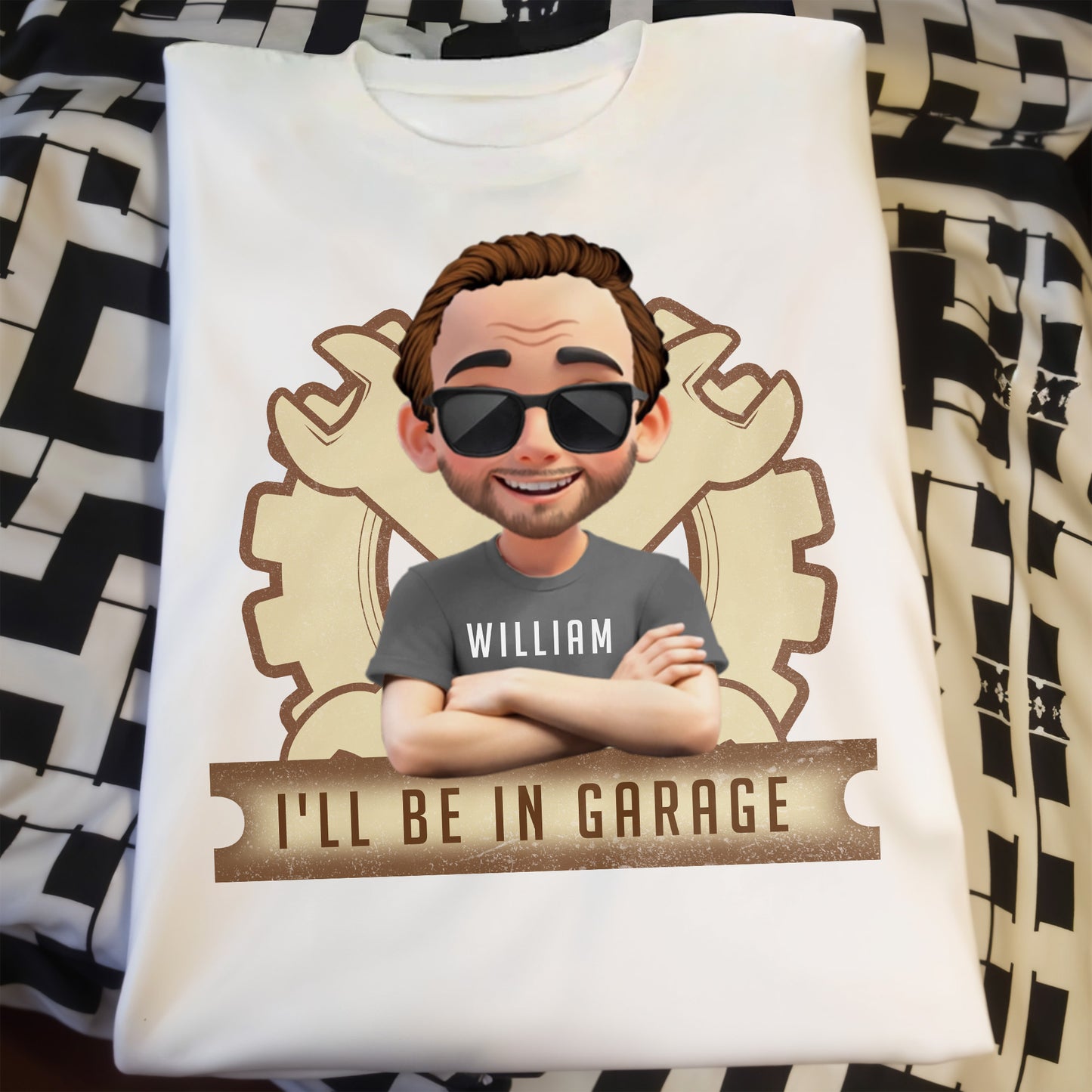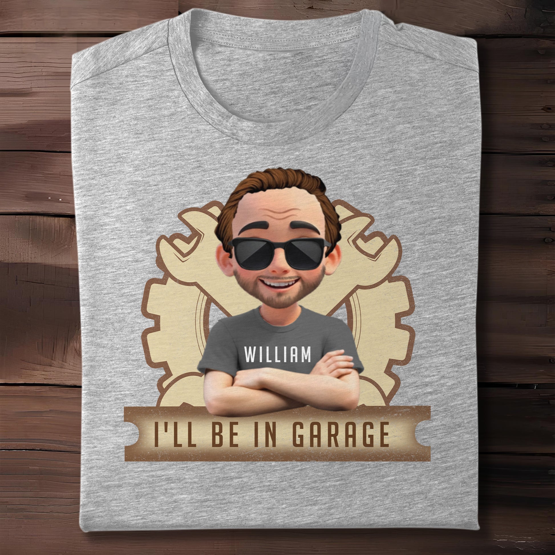 I'll Be In Garage, Gear and Sunglasses Design, Personalized Custom Unisex T-shirt, Gift For Men