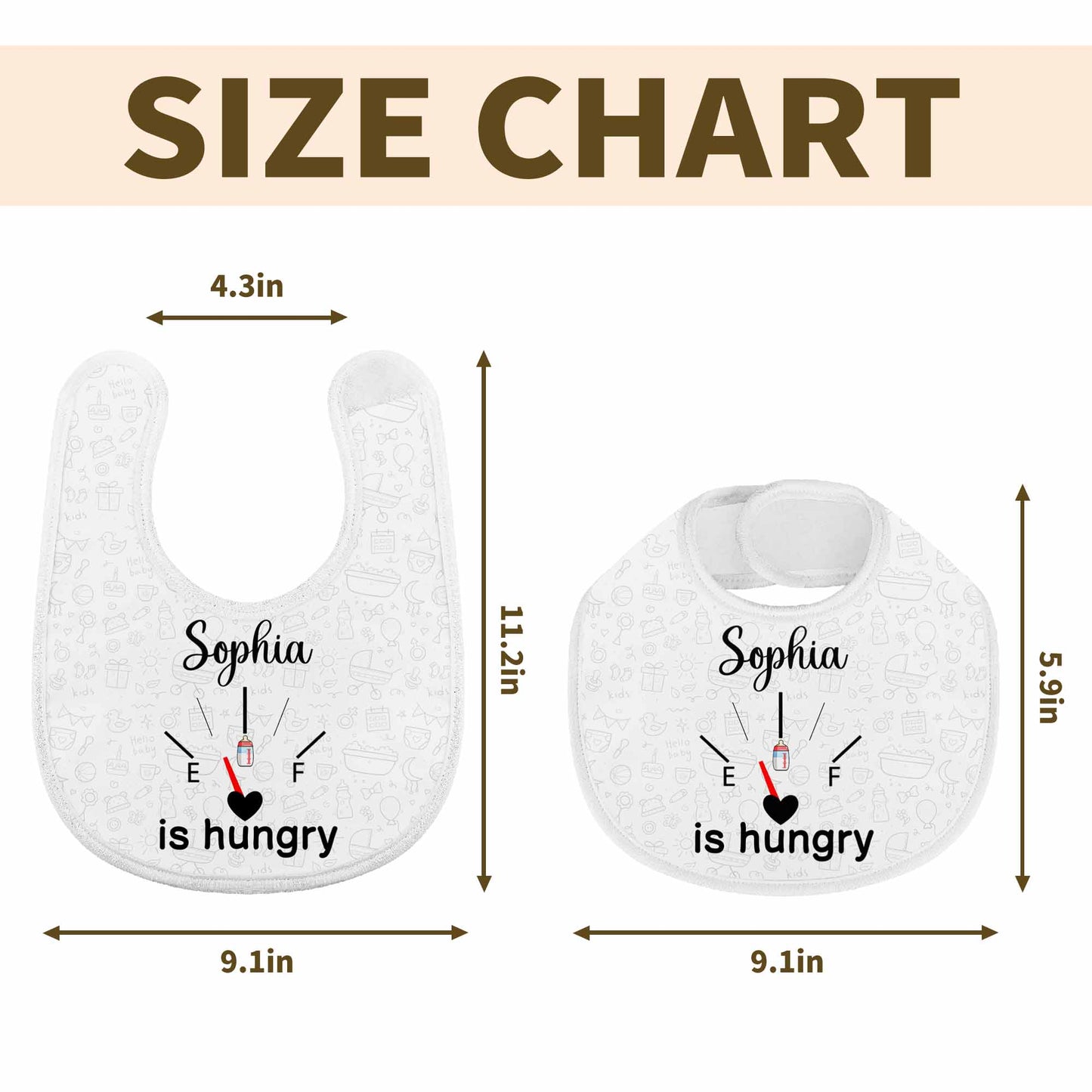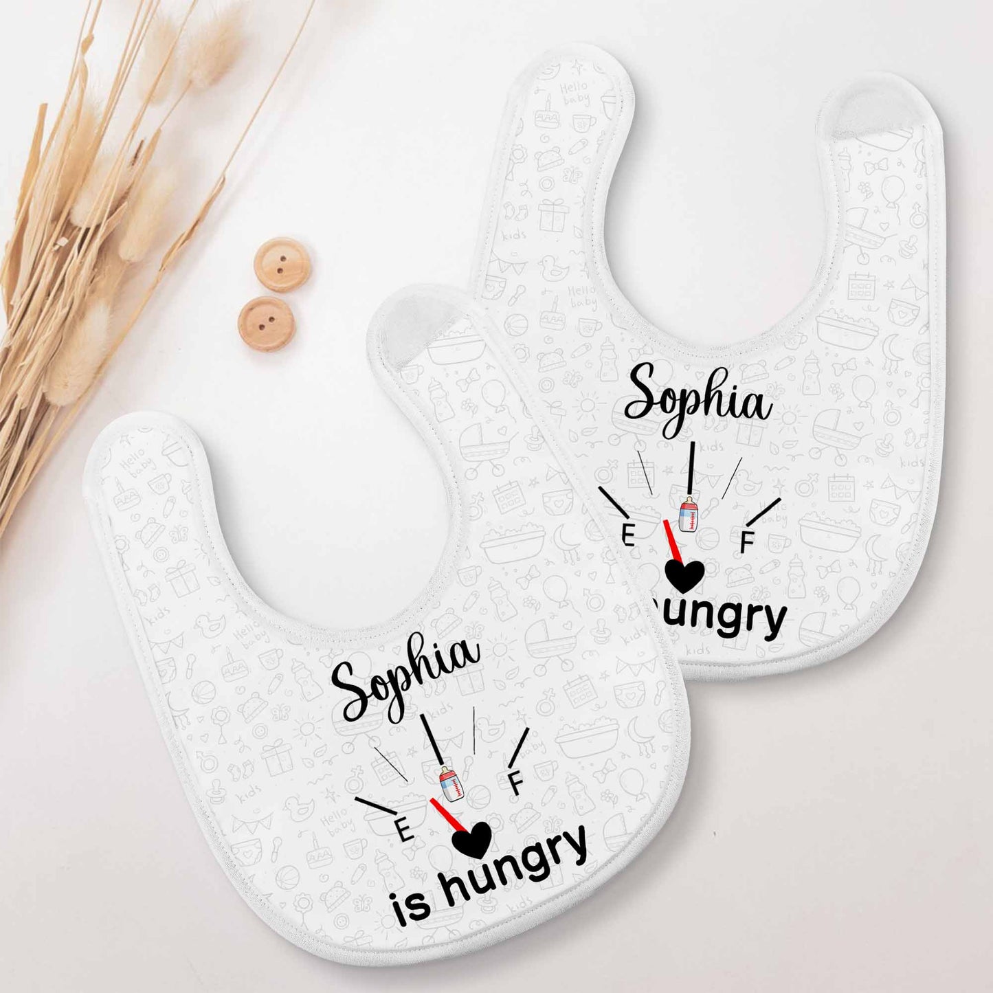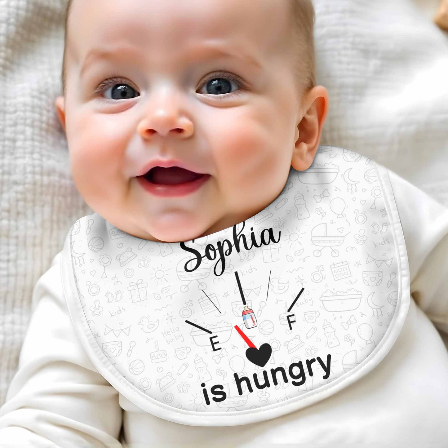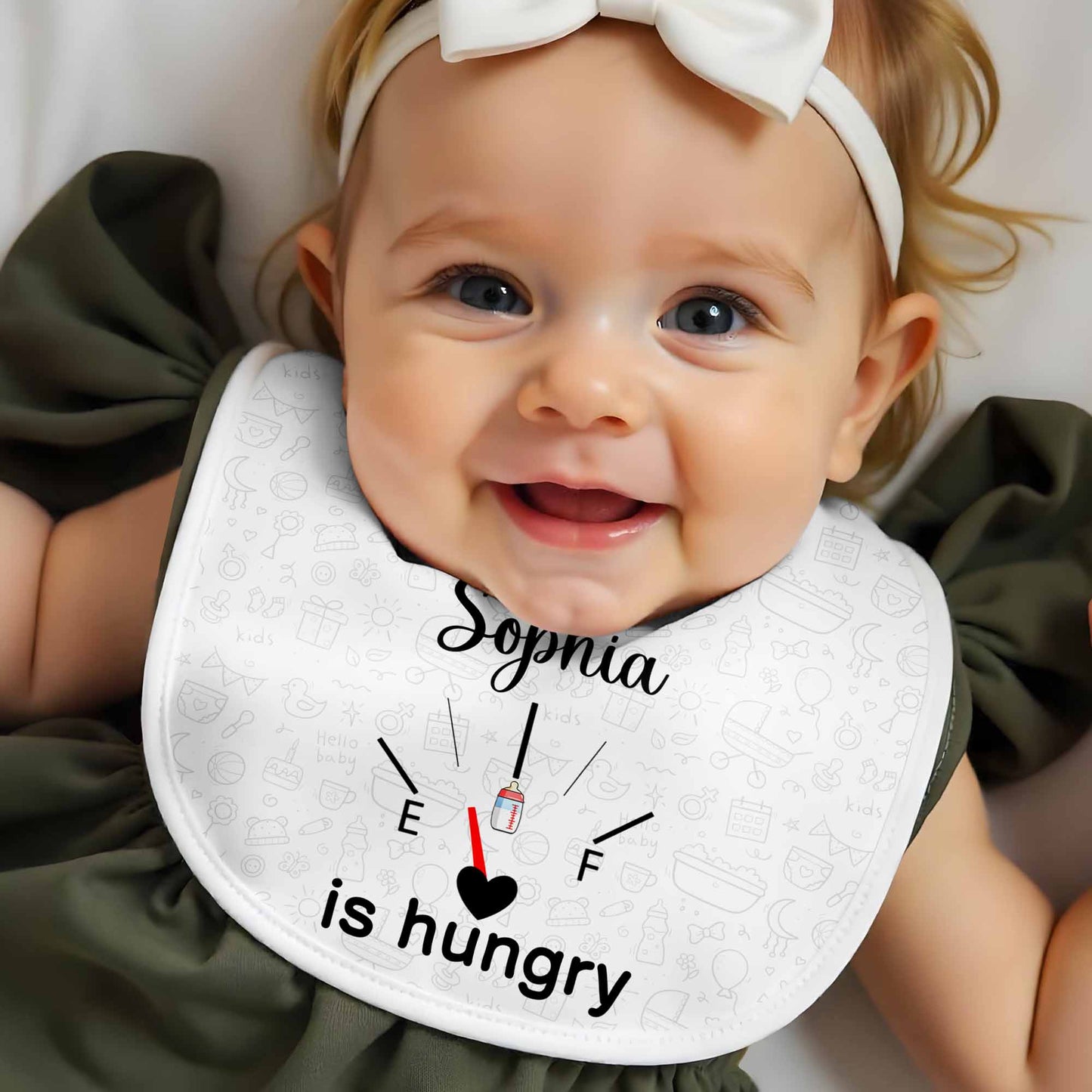 Tienes hambre, artículos para bebé y diseño de corazón - Babero personalizado - KID103_BBB