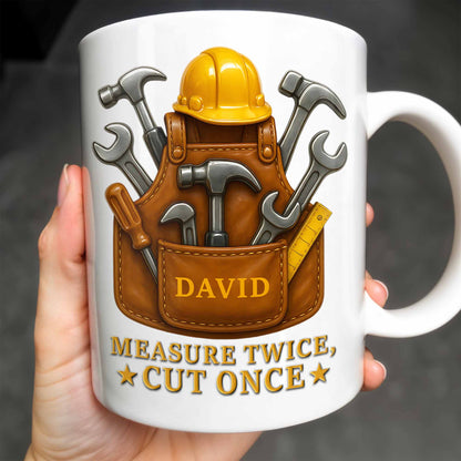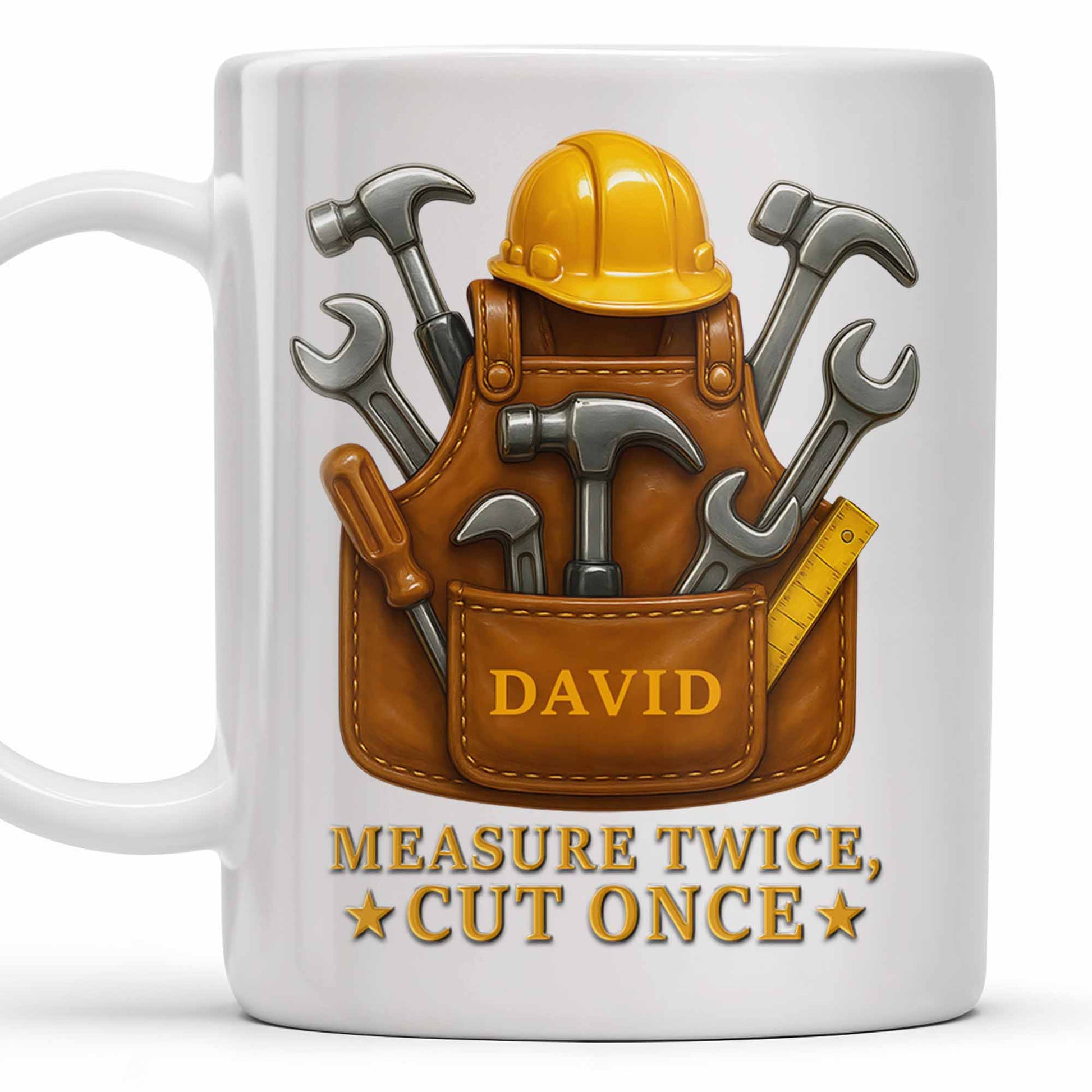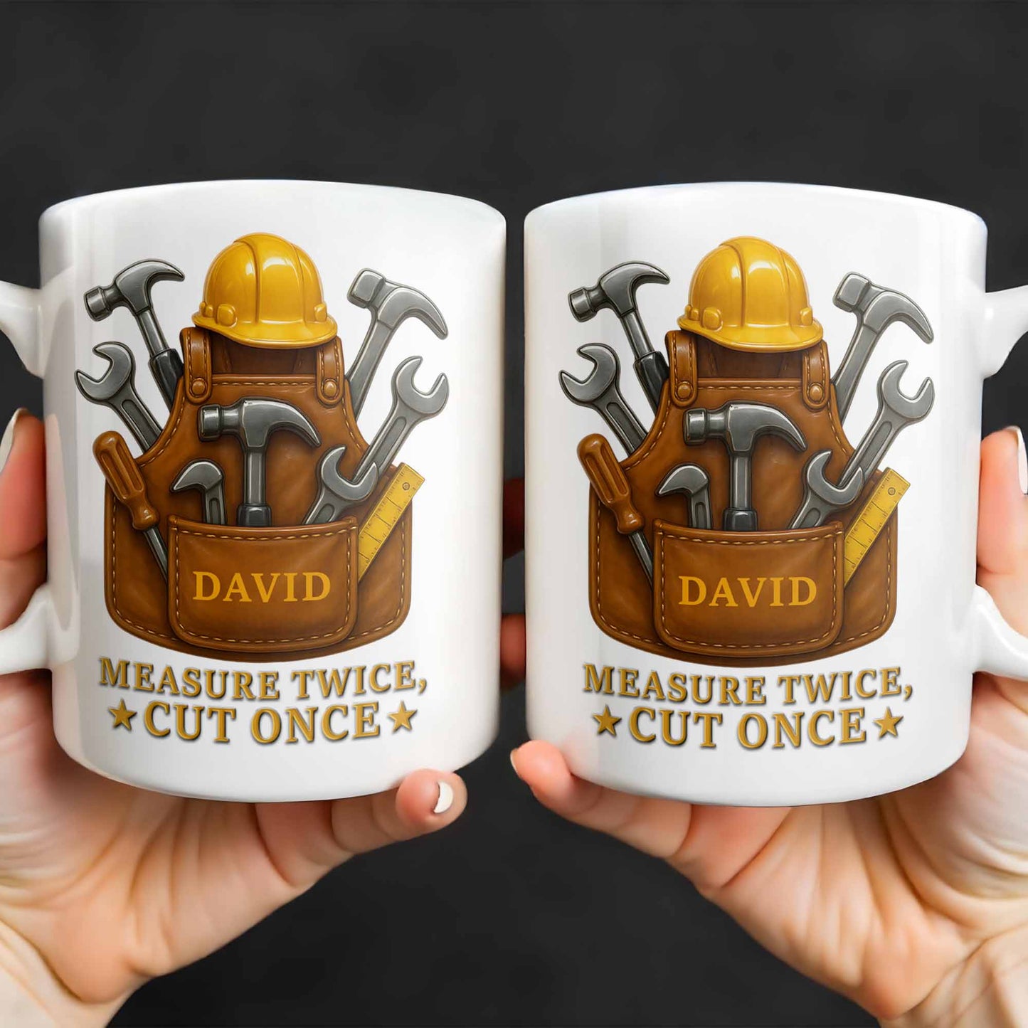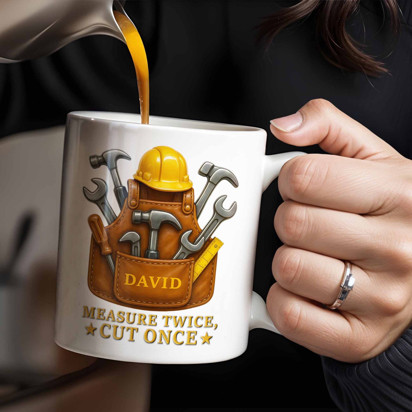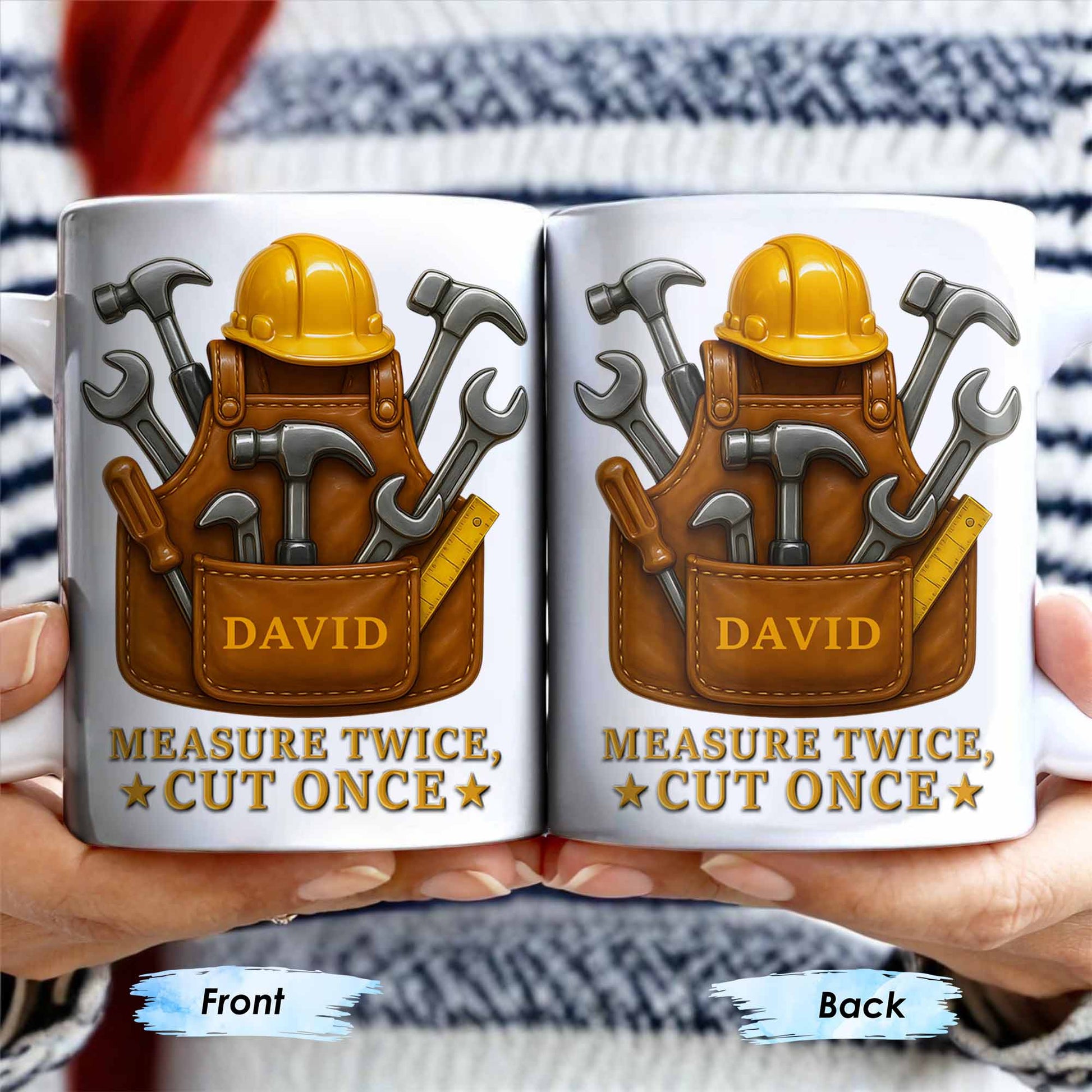 Measure Twice Cut Once Tools And Tool Belt Design, Personalized Custom Coffee Mug, Gift For Carpenters and Handymen