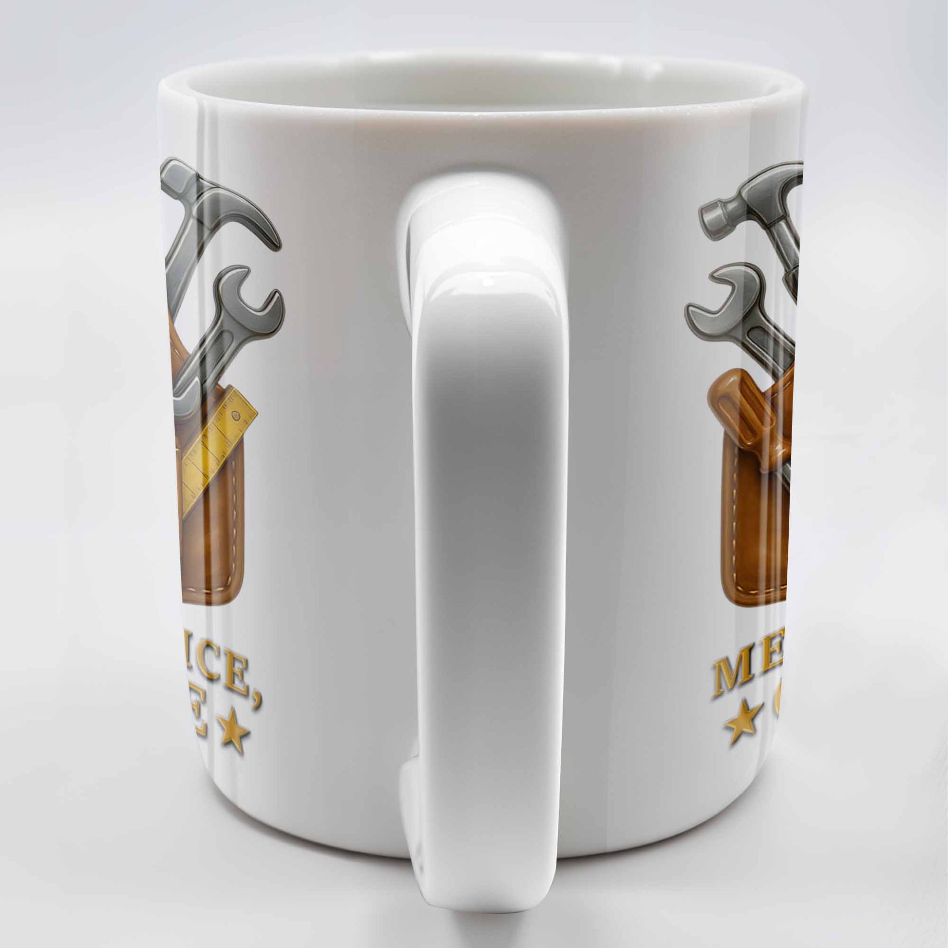 Diseño de herramientas y cinturón de herramientas "Mide dos veces, corta una vez" - Taza de café personalizada - FAM375_MG