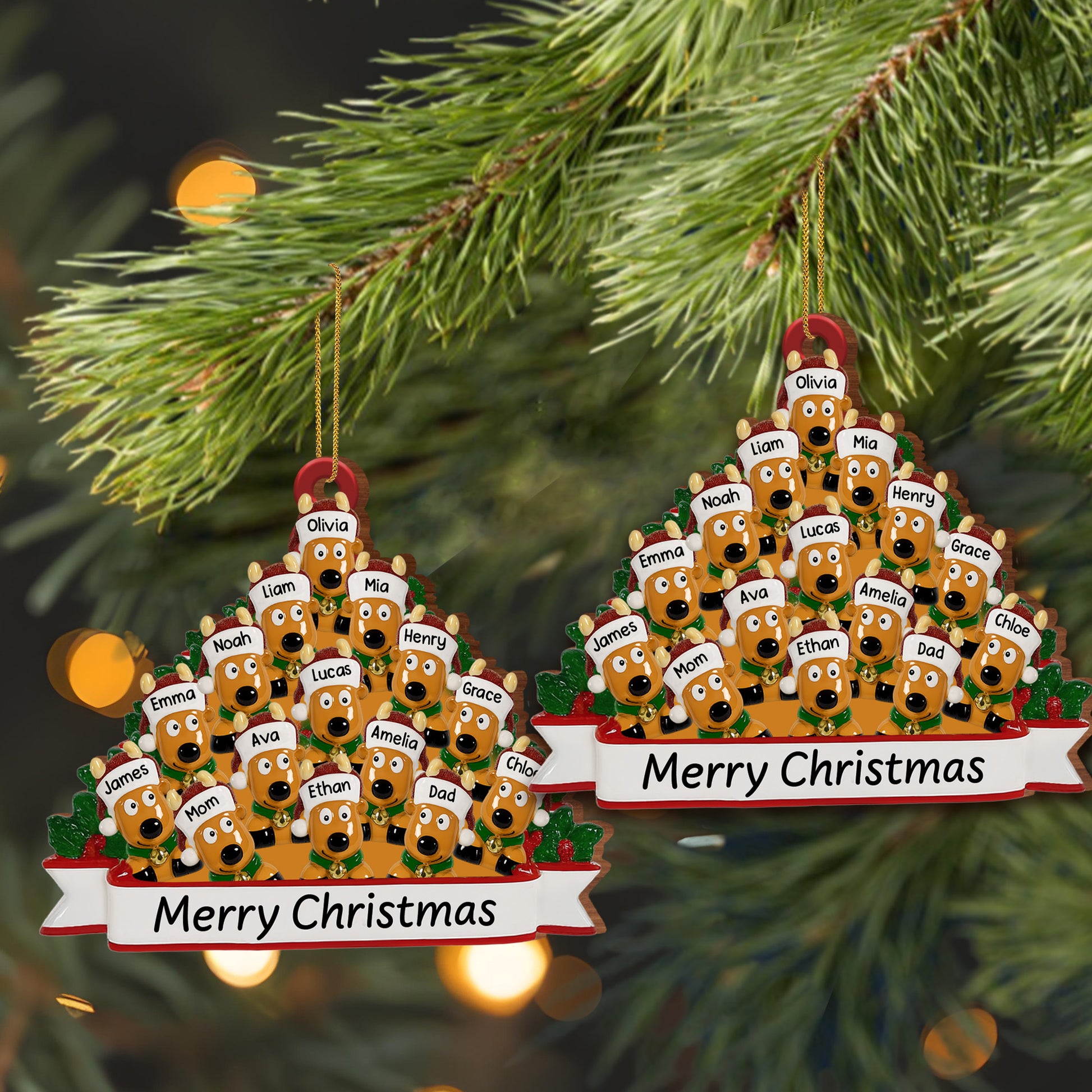 Merry Christmas With Family And Adorable Dogs, Personalized Custom Wood Ornament, Gift For Family and Dog Lovers