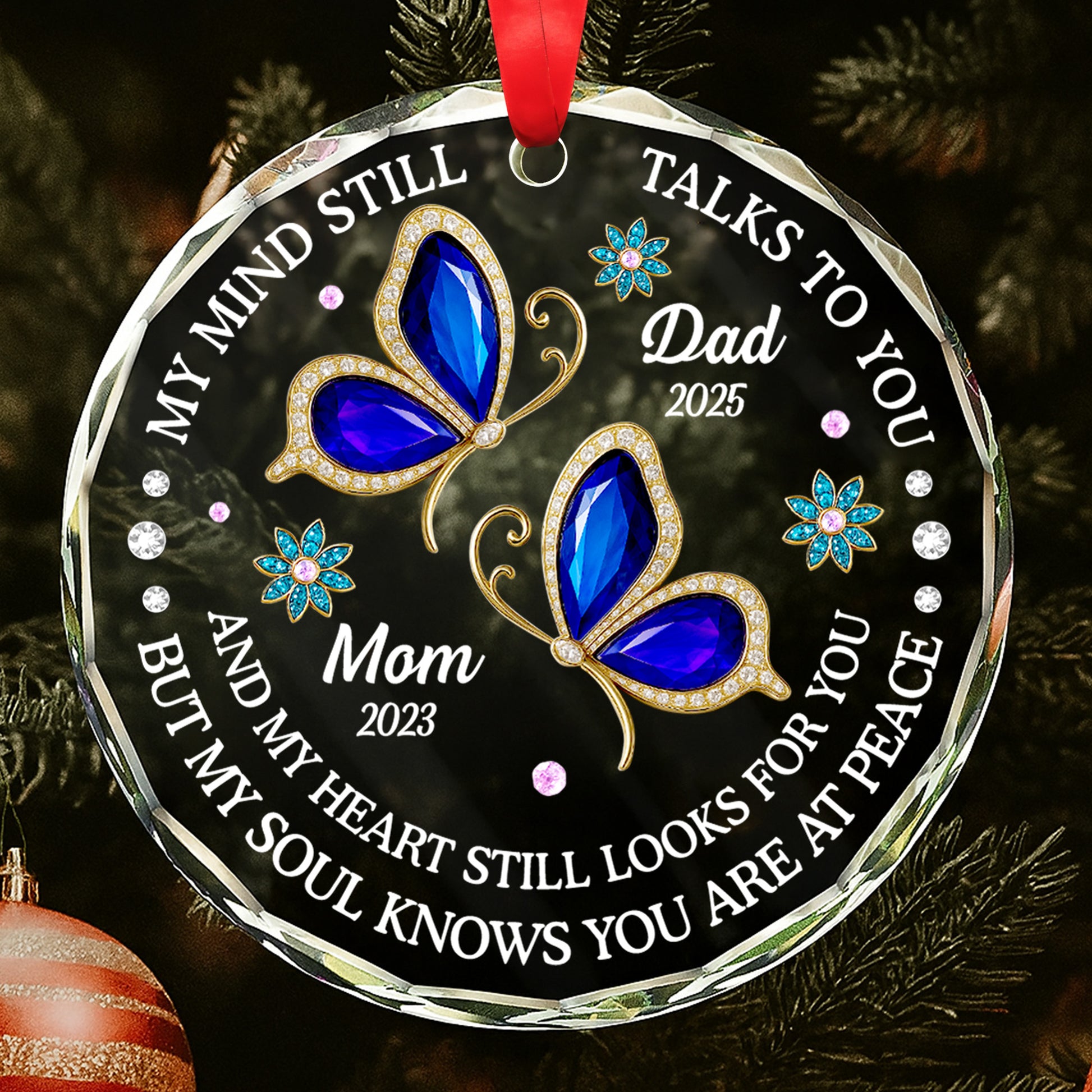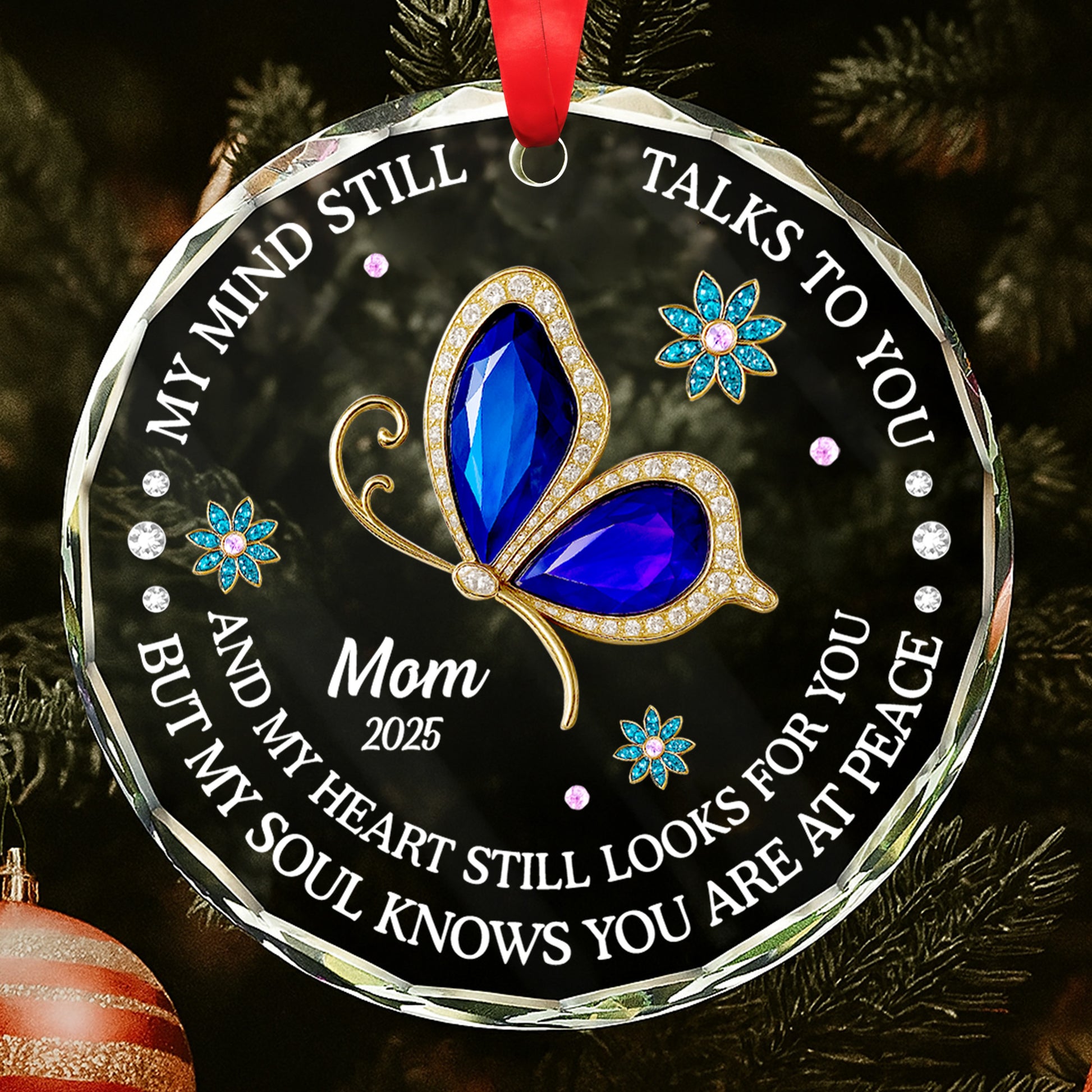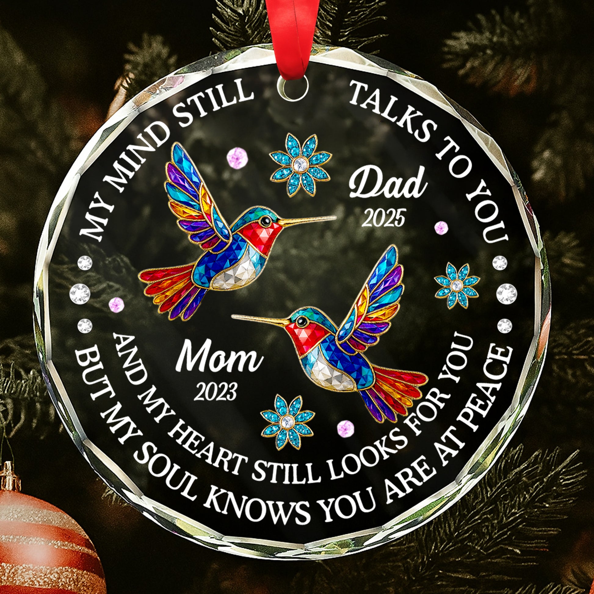 My Mind Still Talks To You, Cardinals And Flowers Design, Custom Circle Glass Ornament, Gift For Family