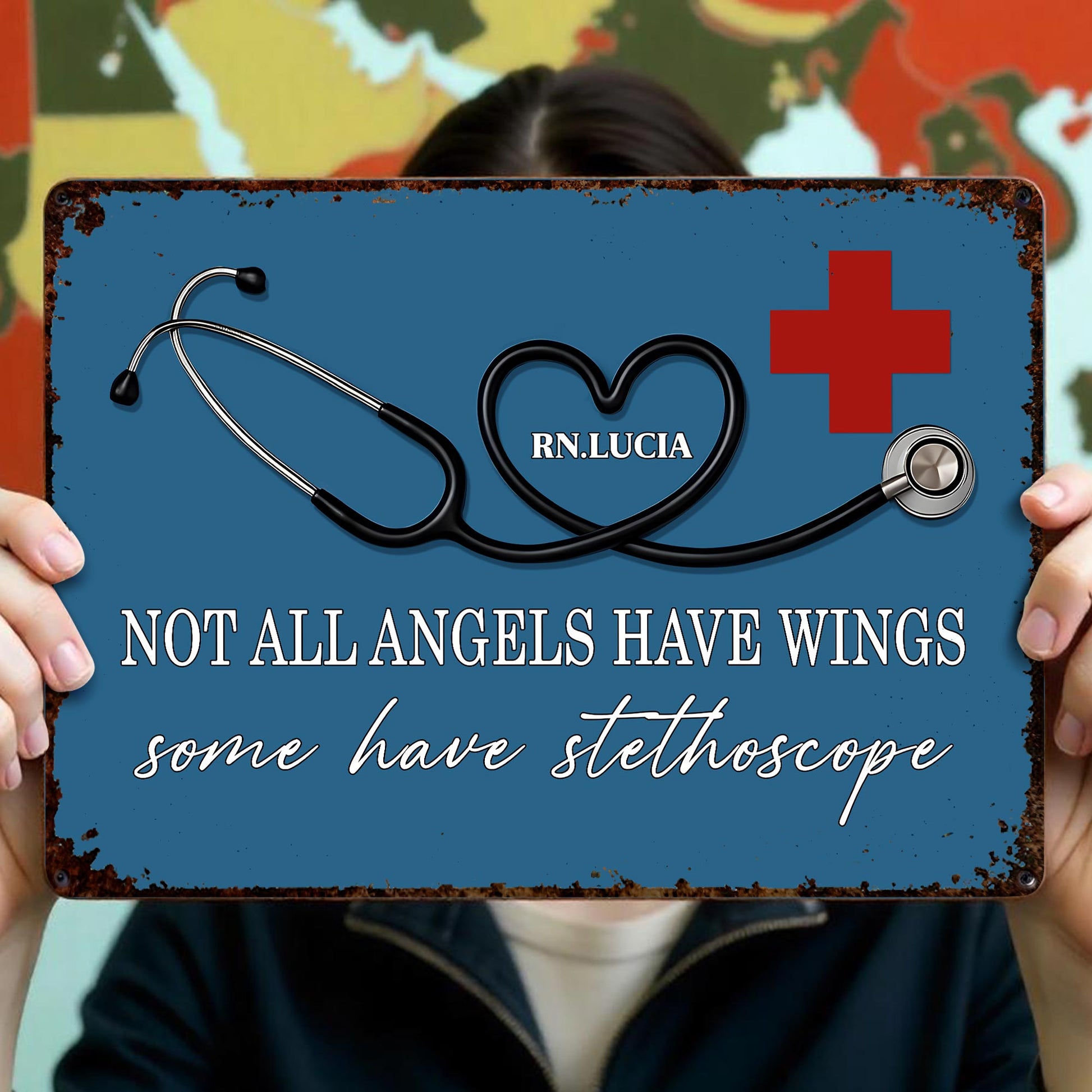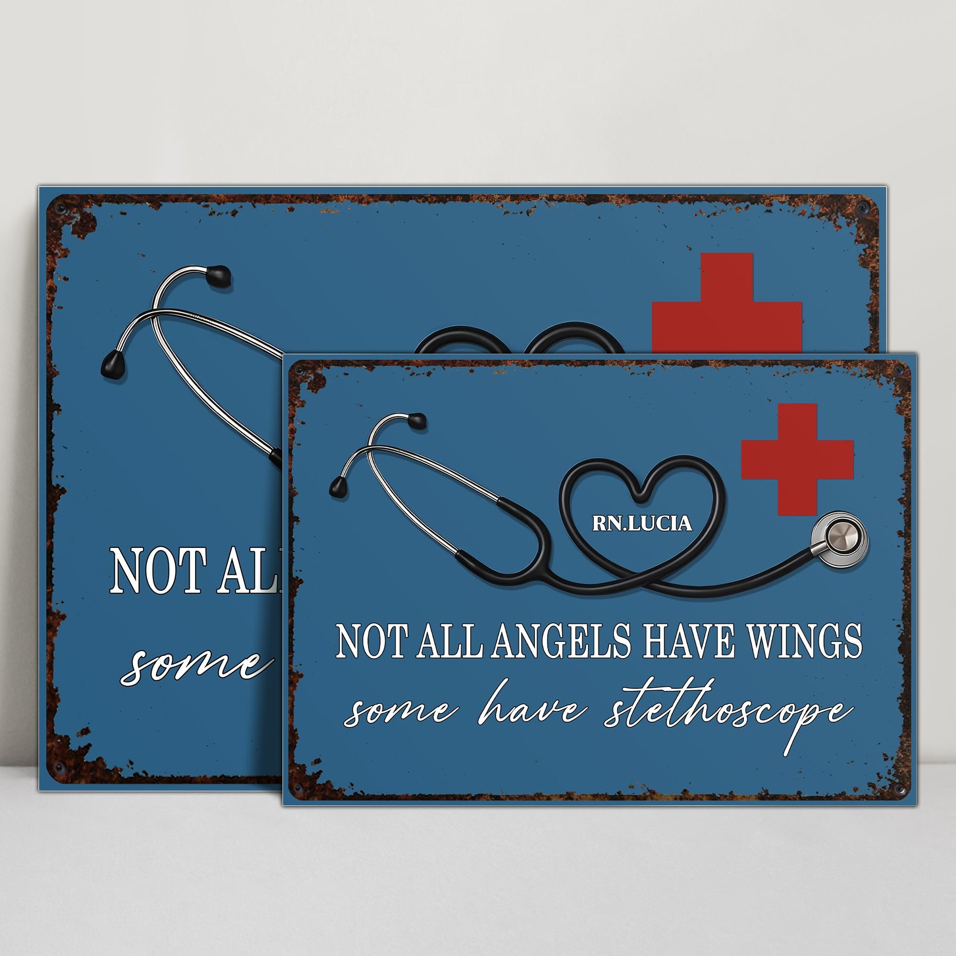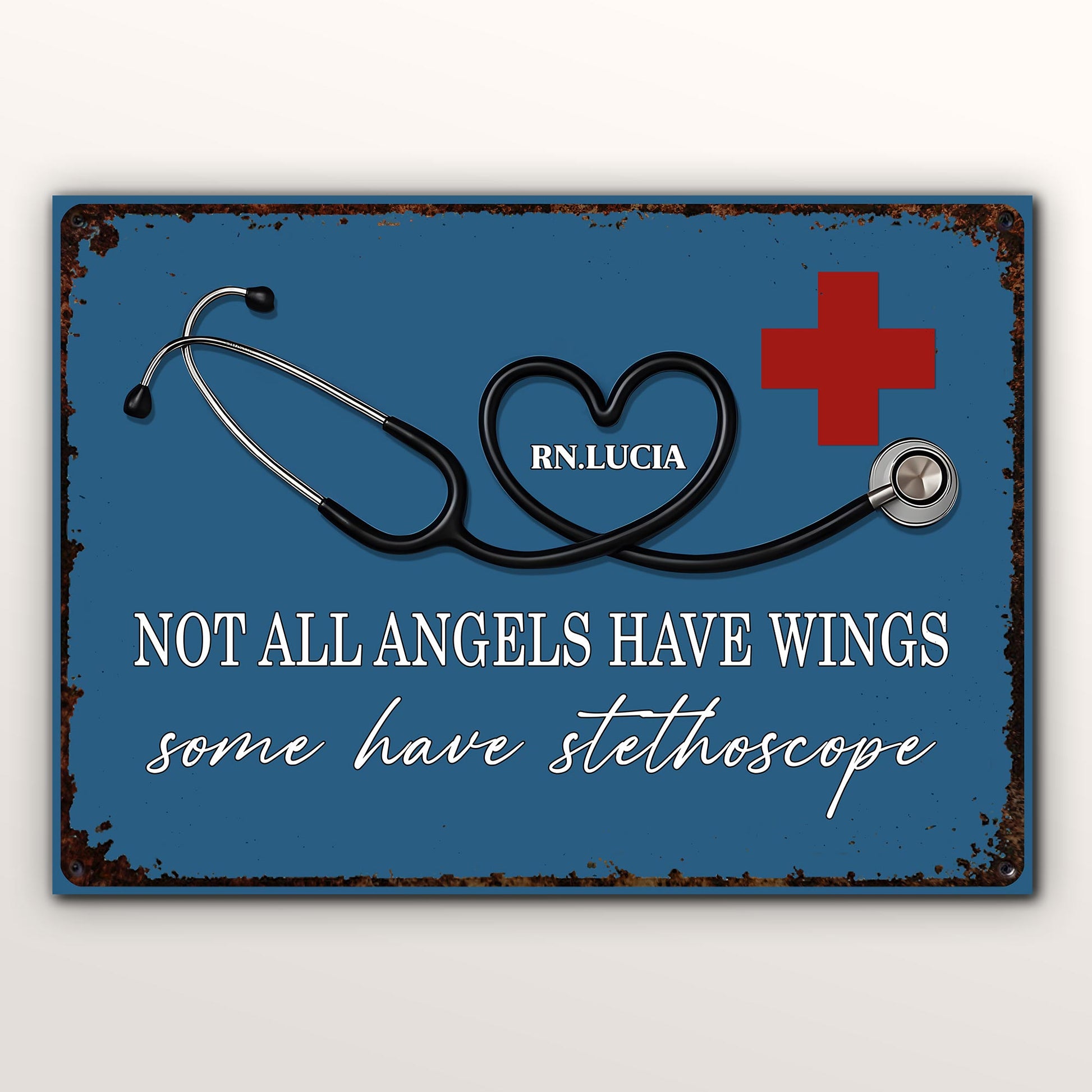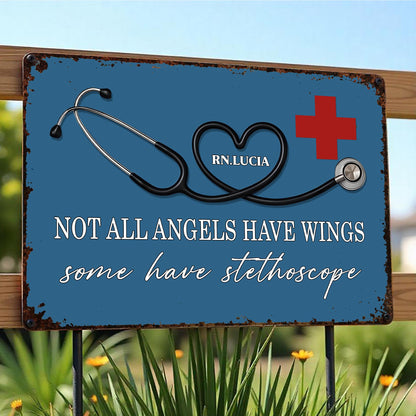 Not All Angels Have Wings Some Have Stethoscope, Personalized Metal Sign, Gift For Nurses