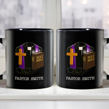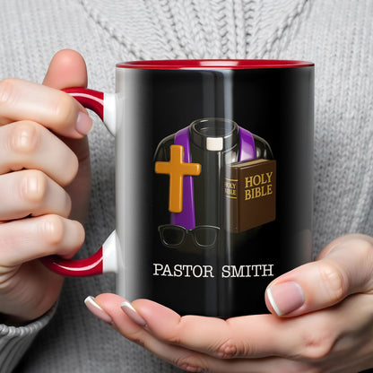 Pastor Smith, Cross, Holy Bible and Glasses, Personalized Custom Accent Mug, Gift For Clergy