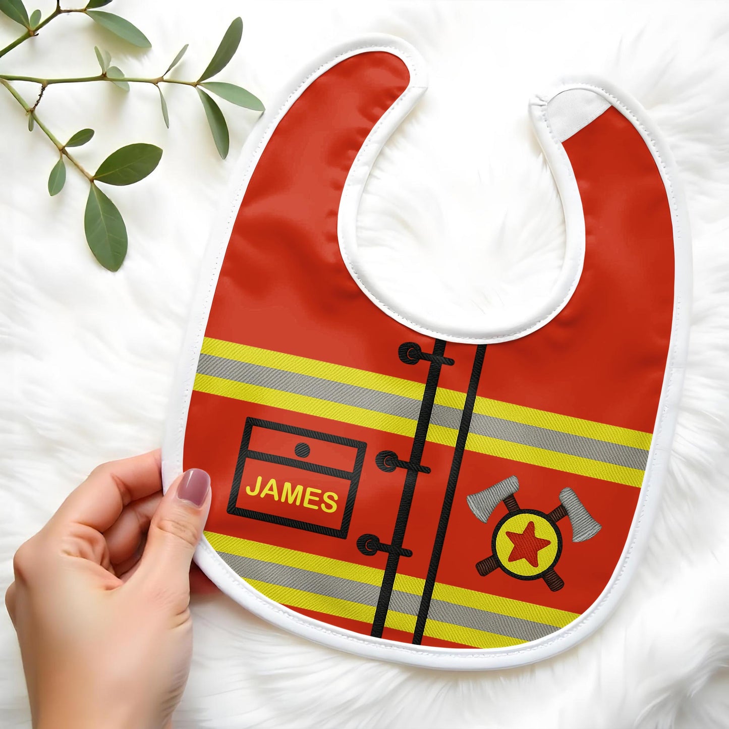 Personalized Firefighter-Themed Baby Bib, Gift For New Parents And Babies