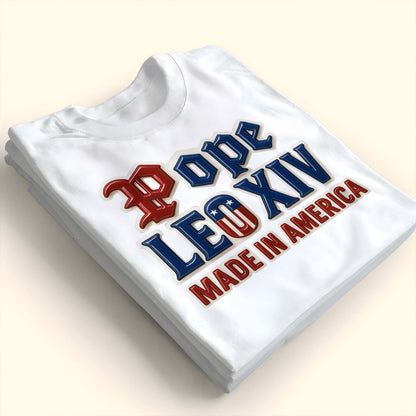 Papa León XIV, hecho en Estados Unidos, con letras en inglés antiguo y bandera estadounidense - Camiseta y sudadera unisex personalizada - FTH076_WBAS