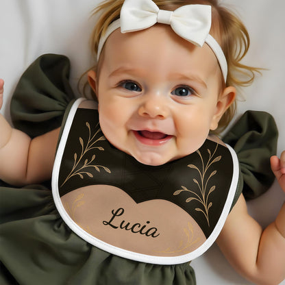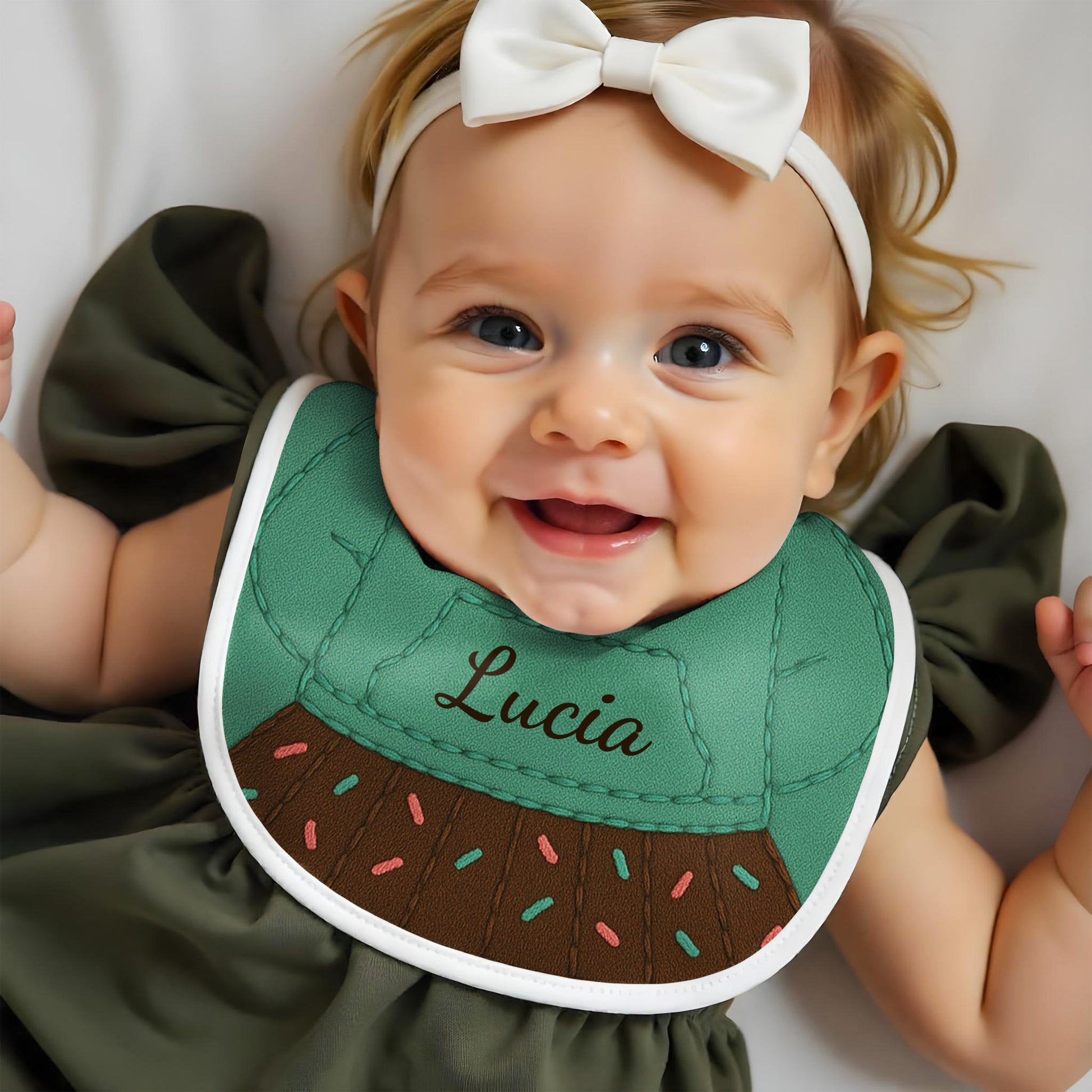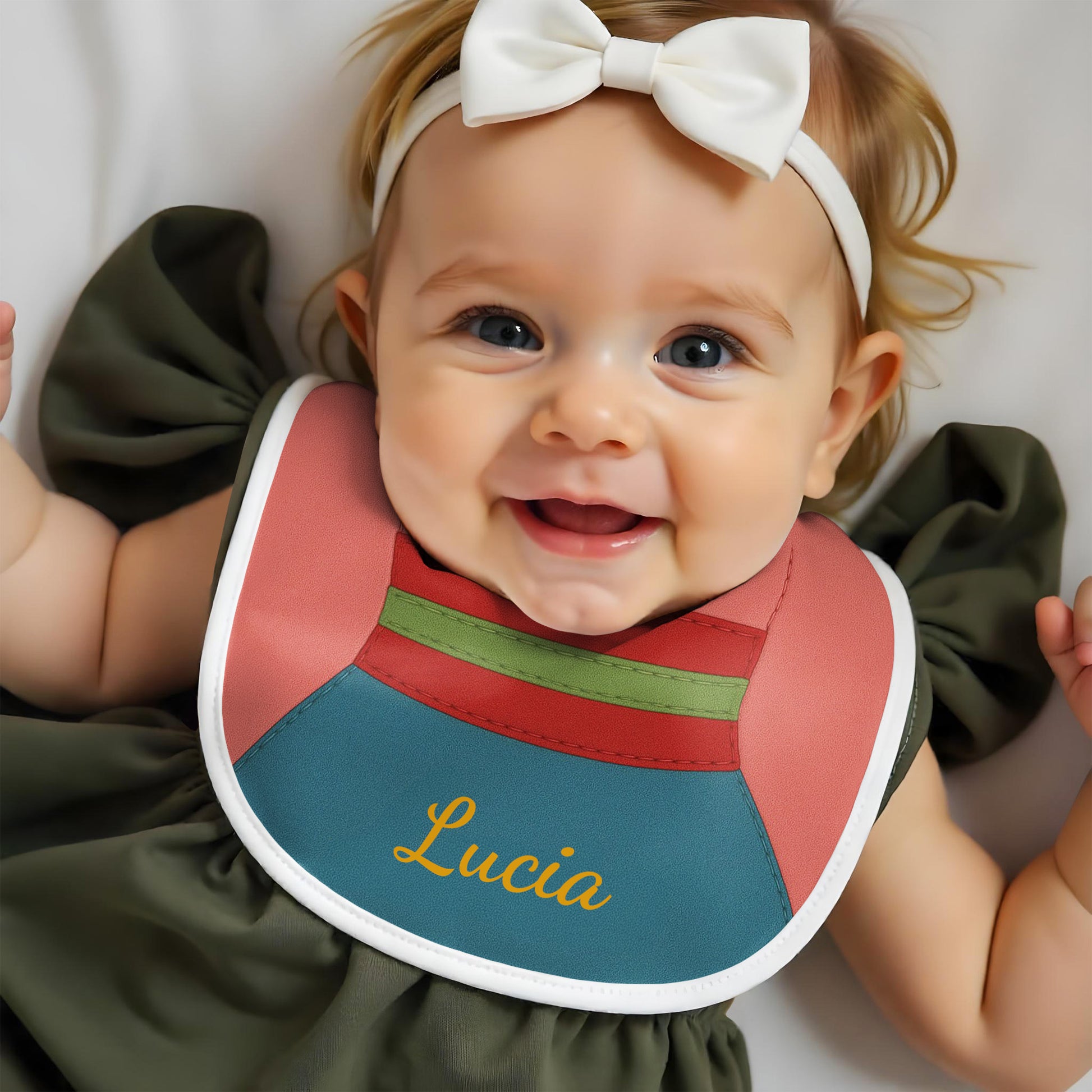 Haga que la hora de la comida sea un poco más especial con este babero de bebé personalizado, donde la comodidad se combina con la ternura personalizada.
