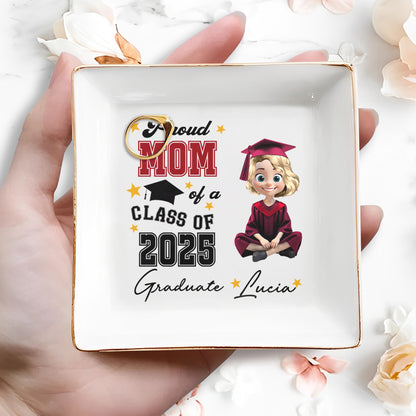 Proud Mom Of A Class Of 2025 Graduate, Graduation Cap and Stars, Personalized Custom Jewelry Dish, Gift For Moms and Graduation Celebrations