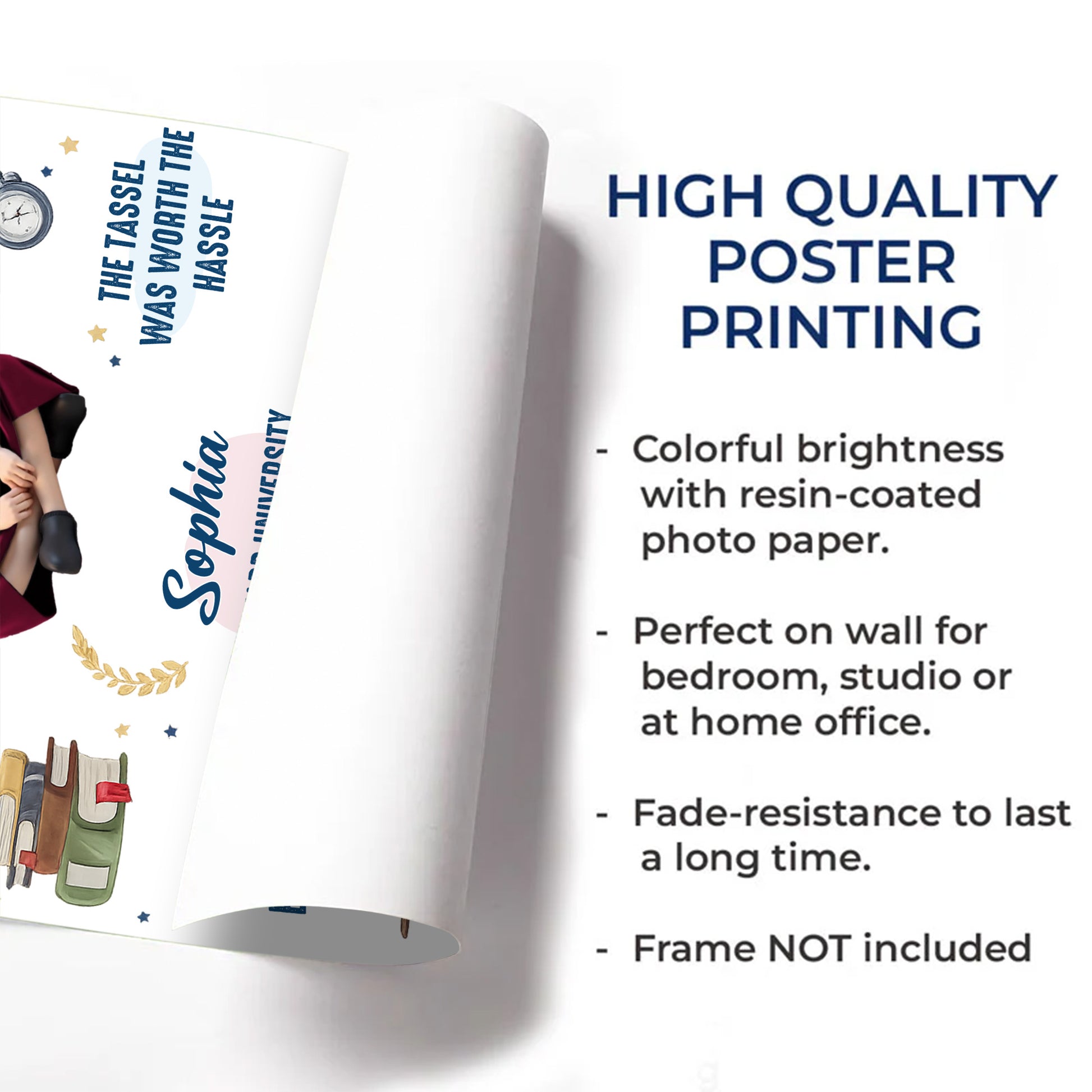 She Believed She Could, Graduation Cap And Books - Personalized Custom Vertical Poster - GRAD325_VPOS