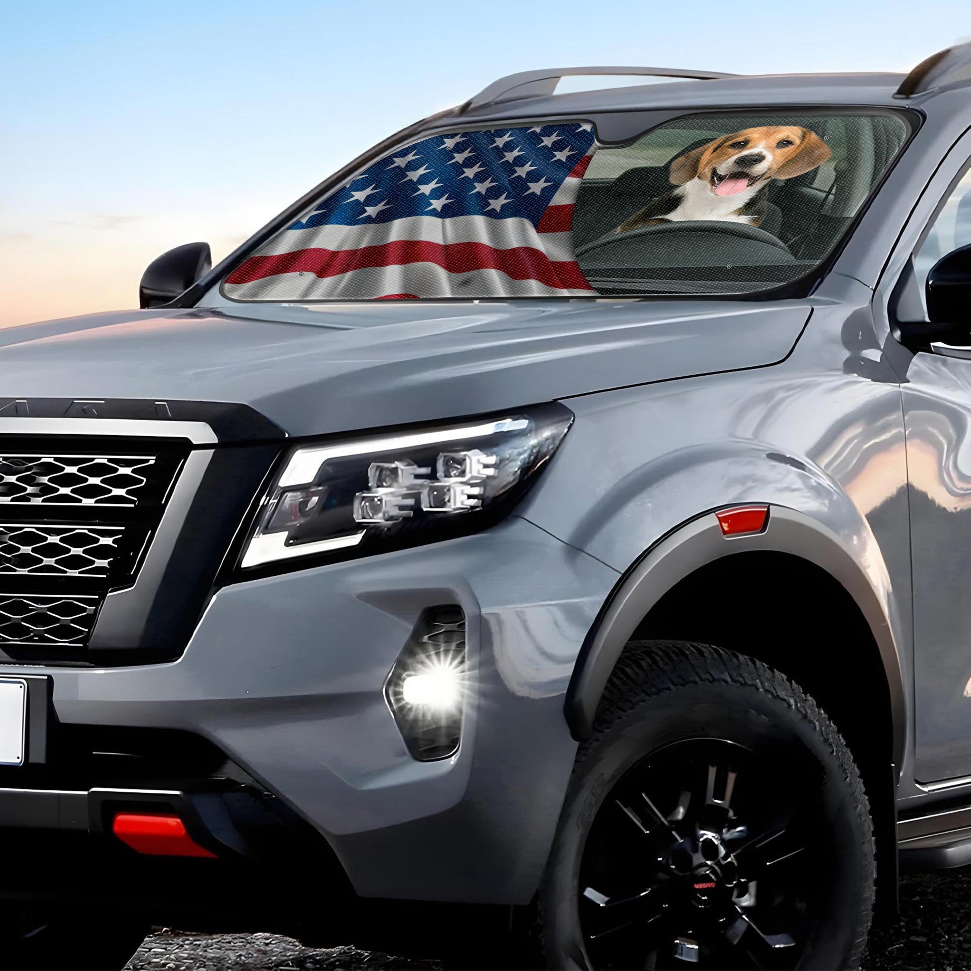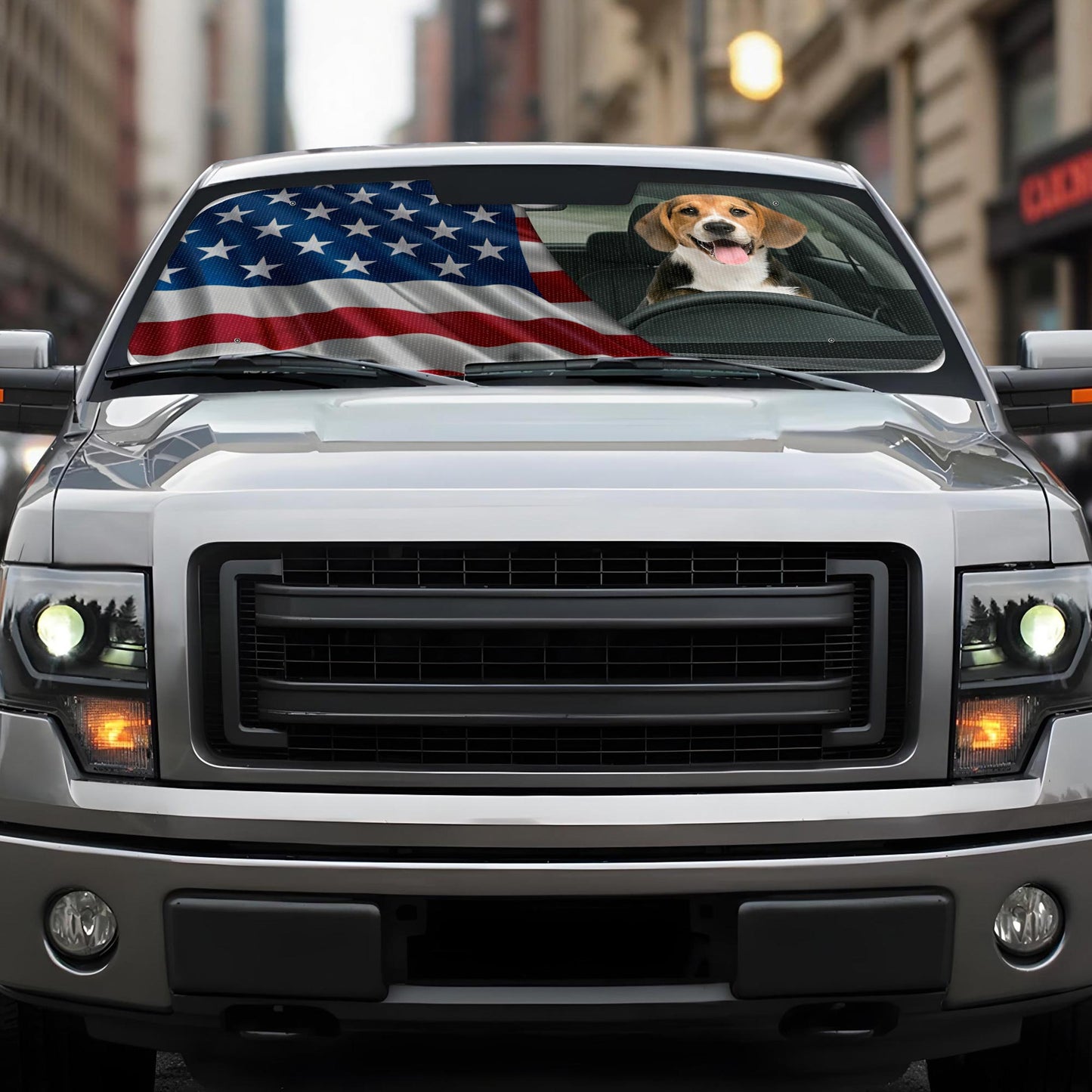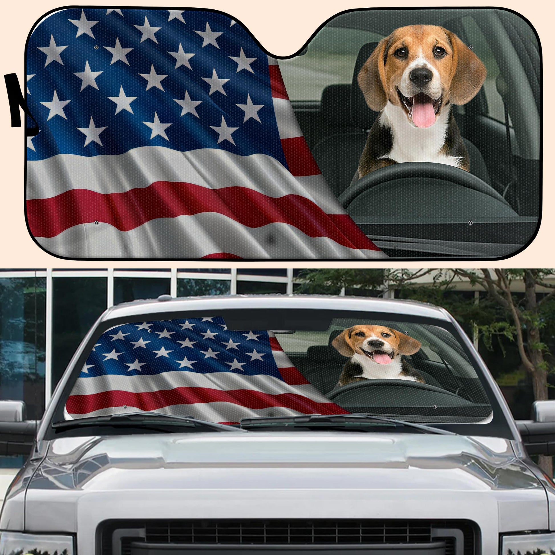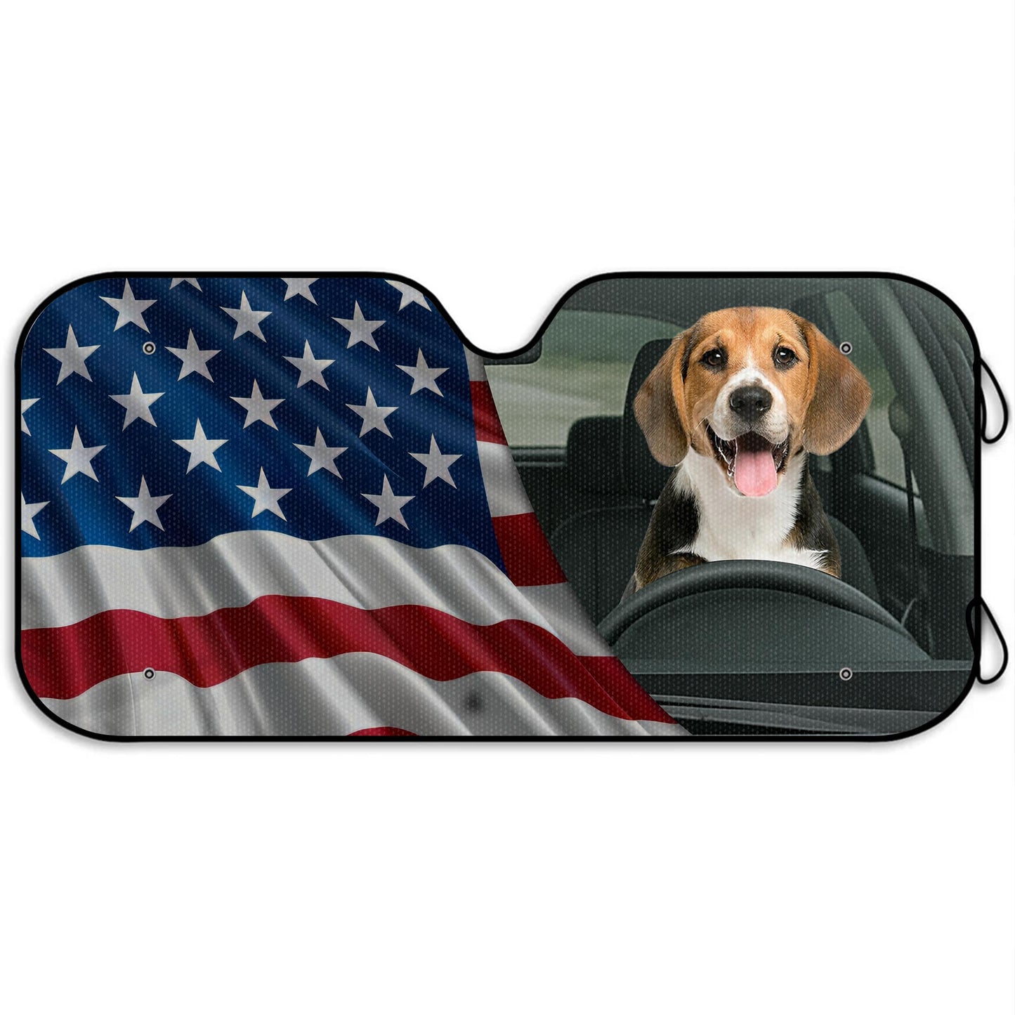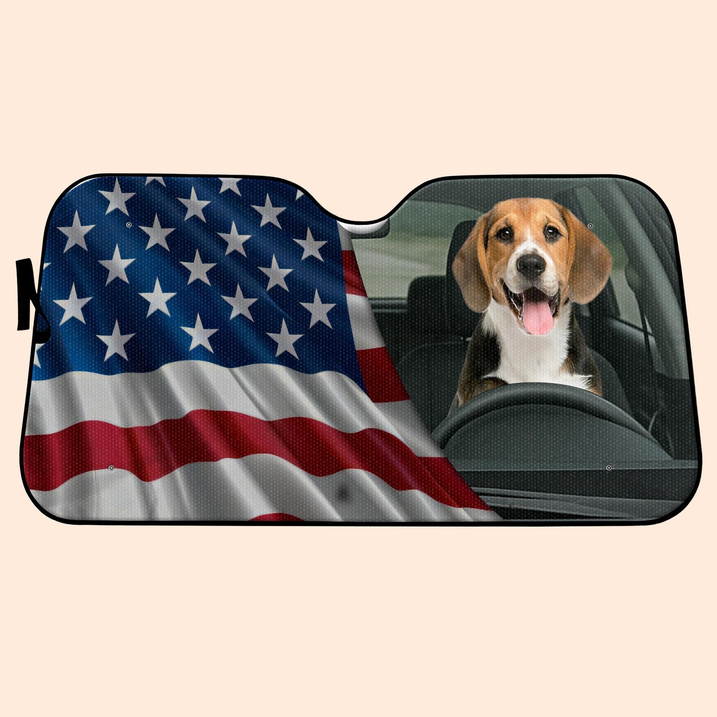 Show Your Patriotic Spirit With This Vibrant USA Flag Design, Personalized Auto Sunshade, Gift For Dog Lovers And Patriots
