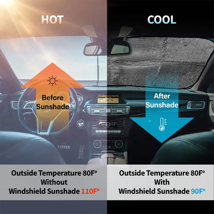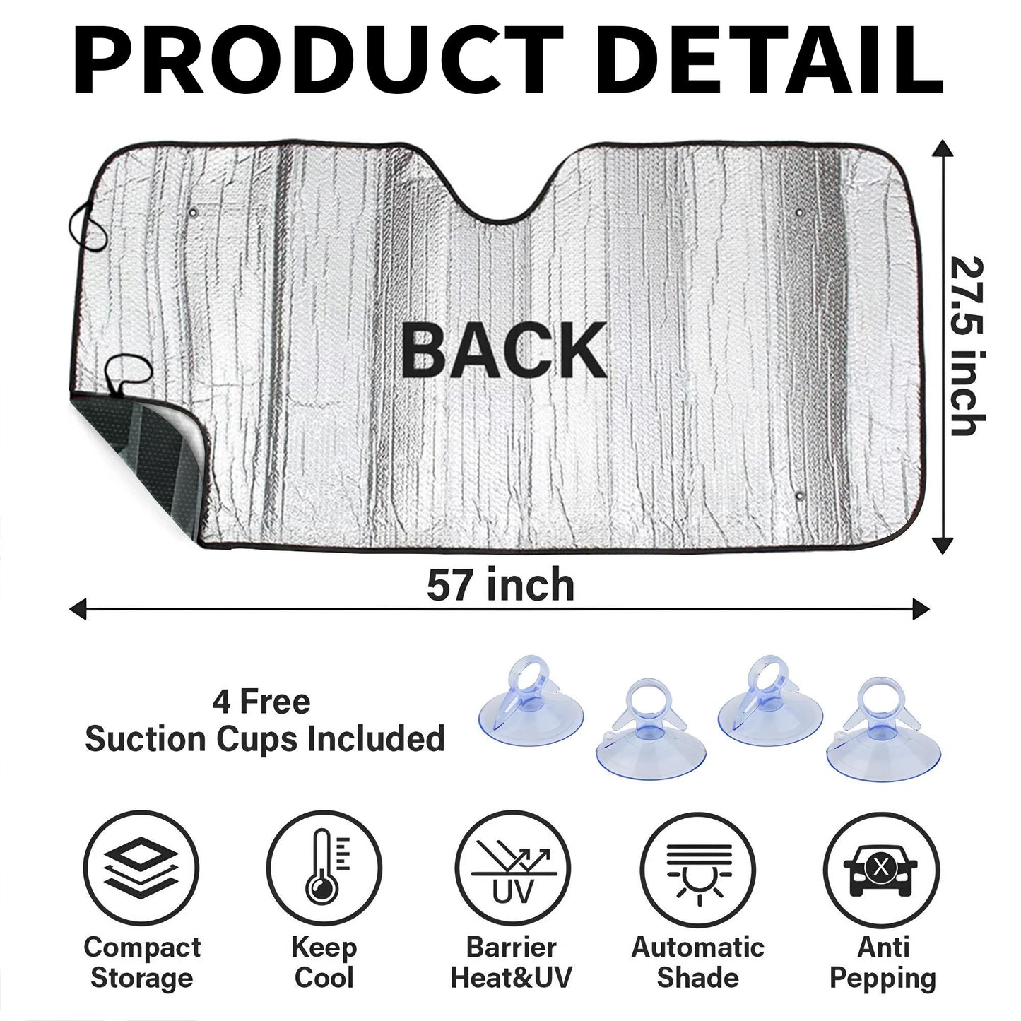 - Protección eficiente contra el sol y el calor: refleja los rayos UV y bloquea la luz solar directa, lo que ayuda a mantener el interior de su automóvil fresco y protegido contra grietas y decoloración.