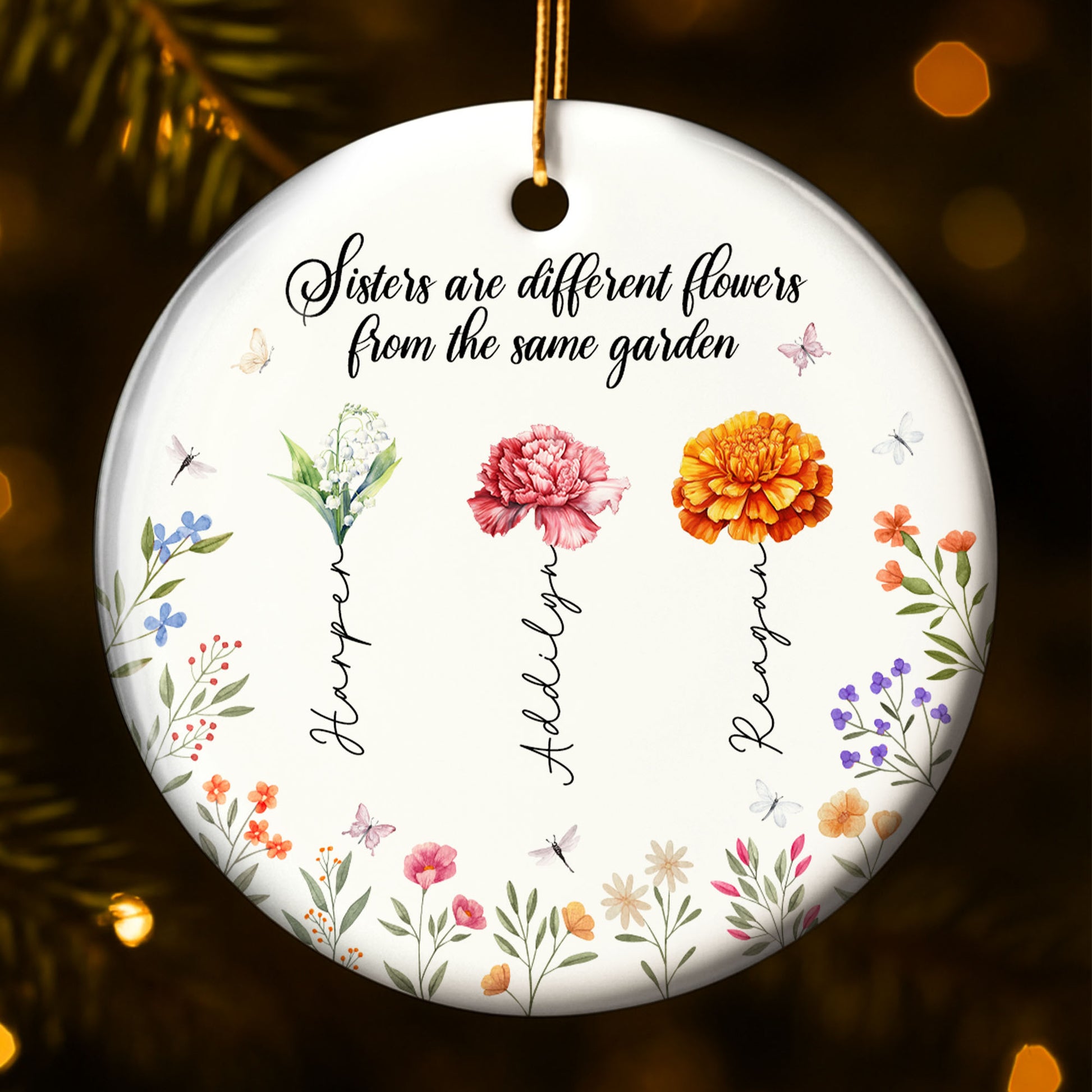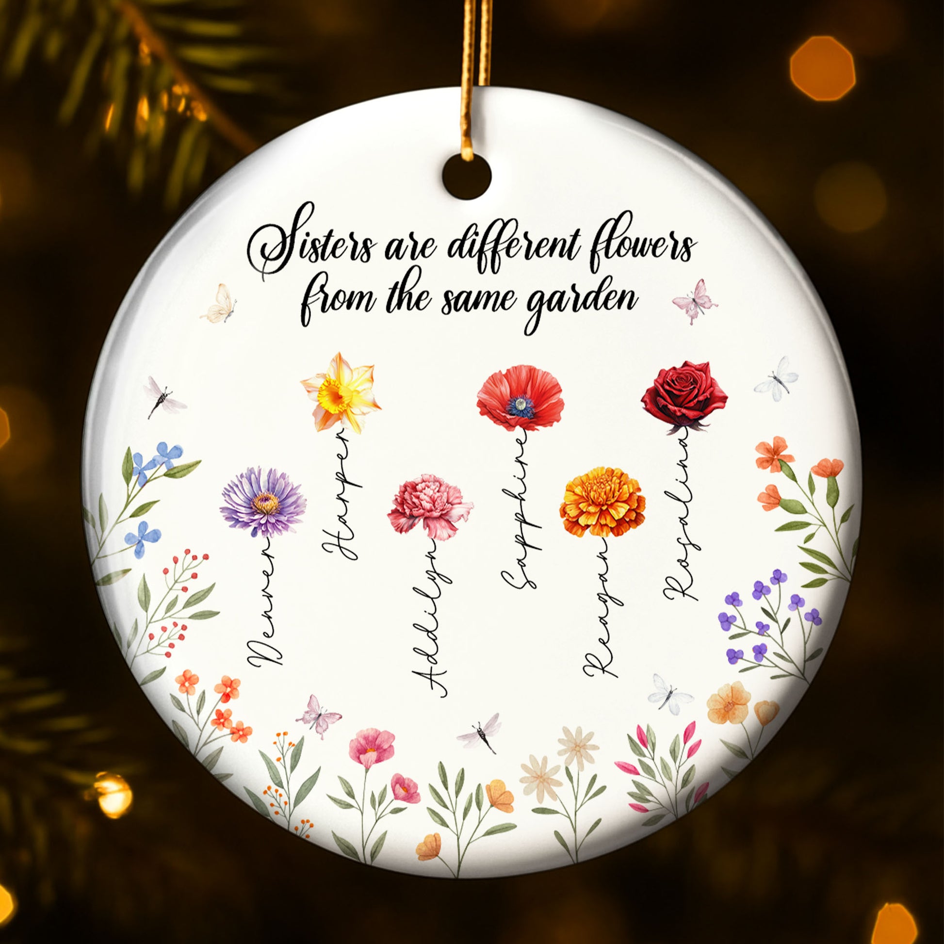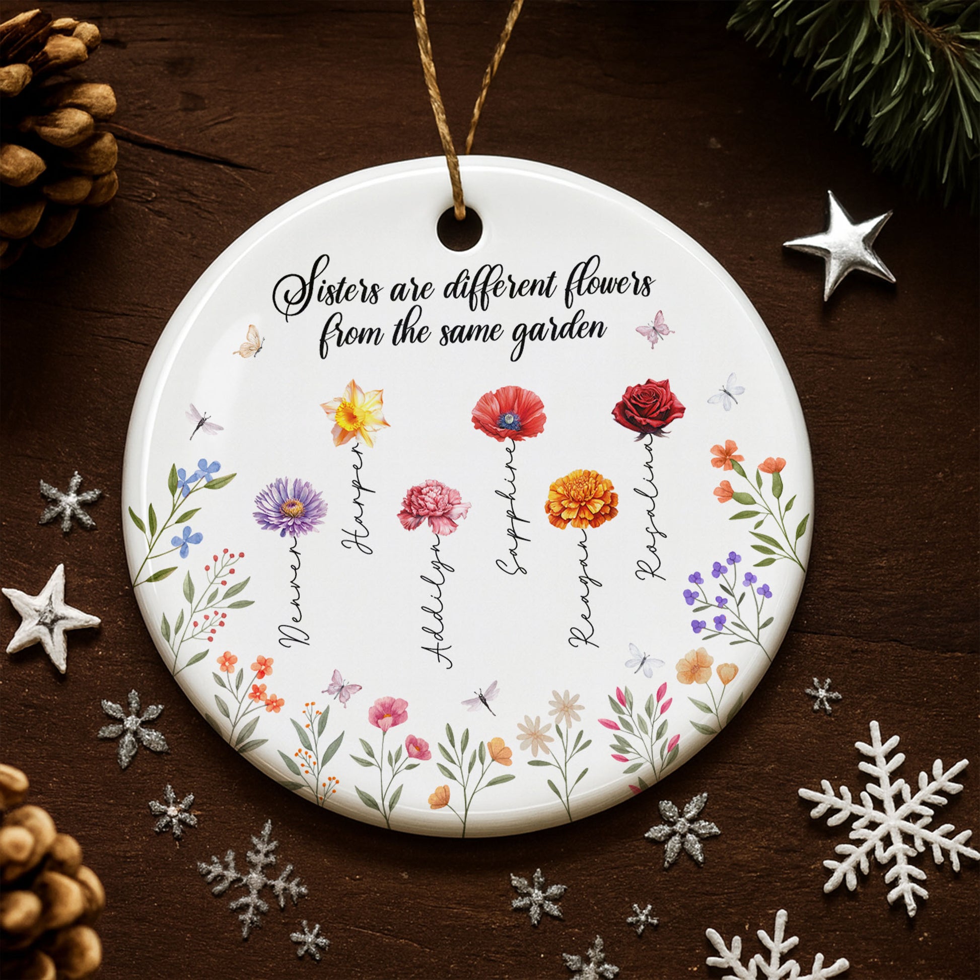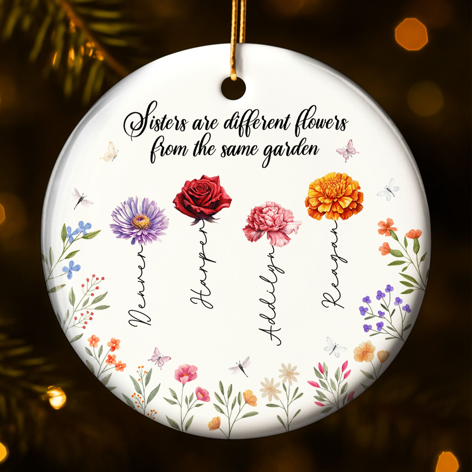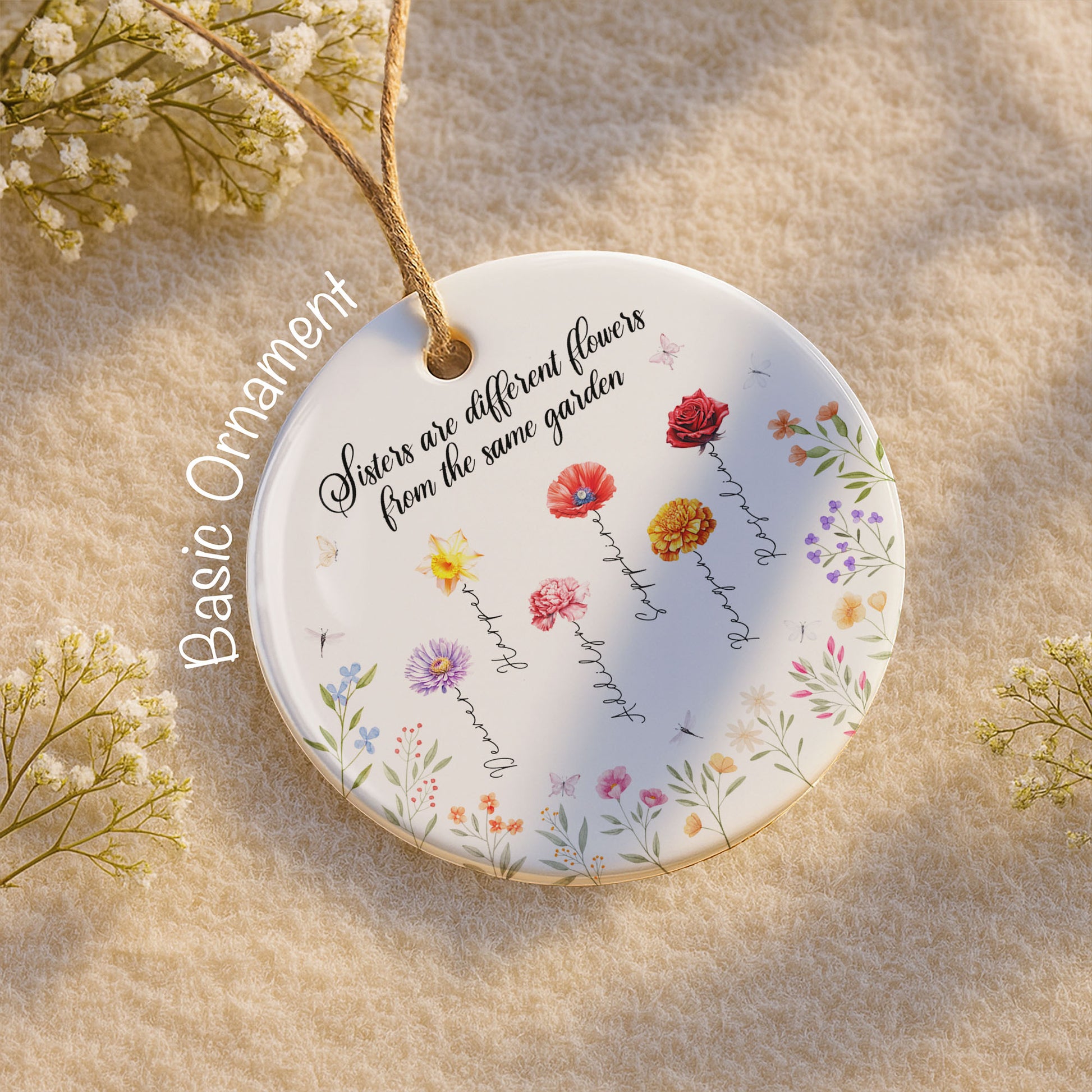 Sisters Are Different Flowers From The Same Garden - Family Personalized Custom Ceramic Ornament - Gift For Sisters