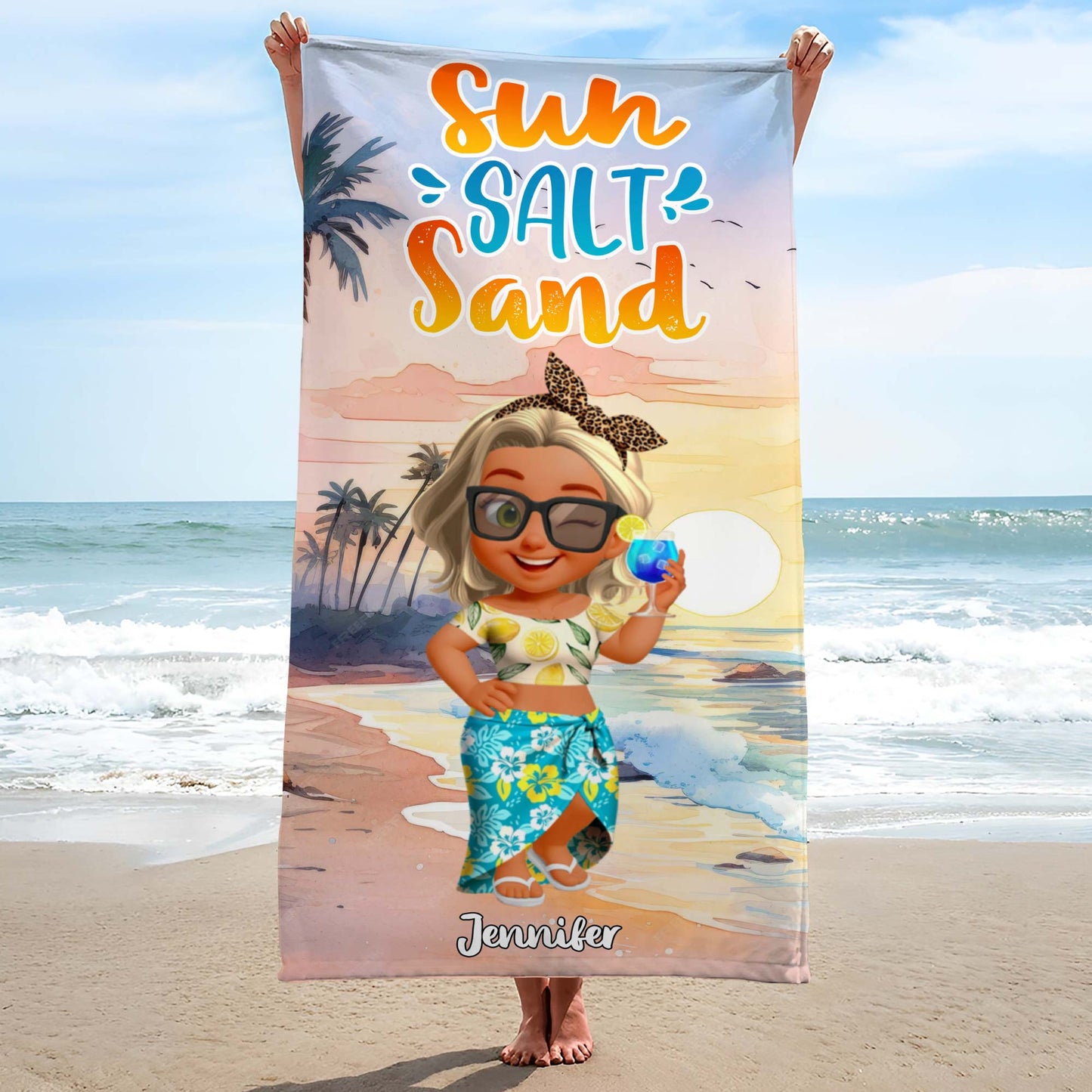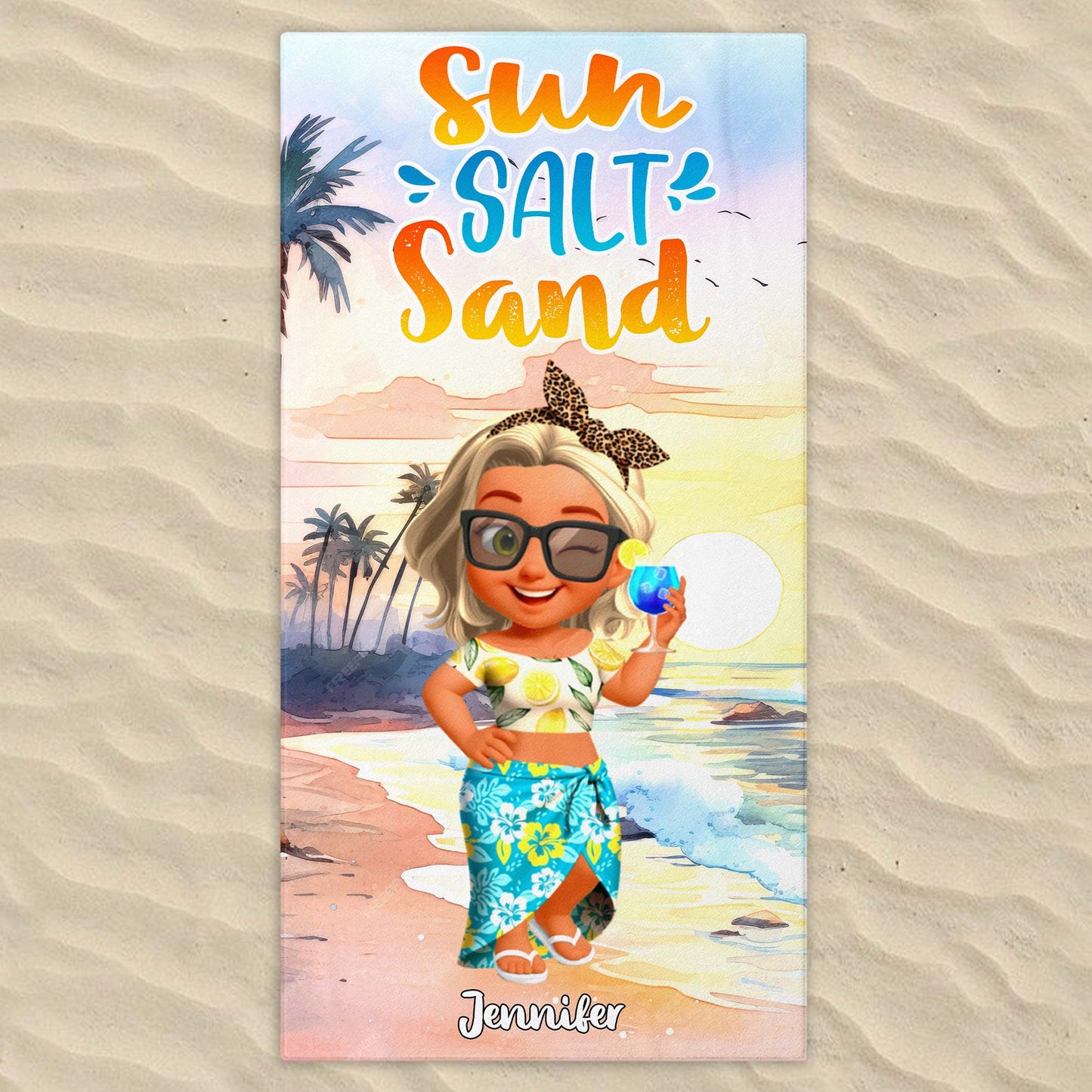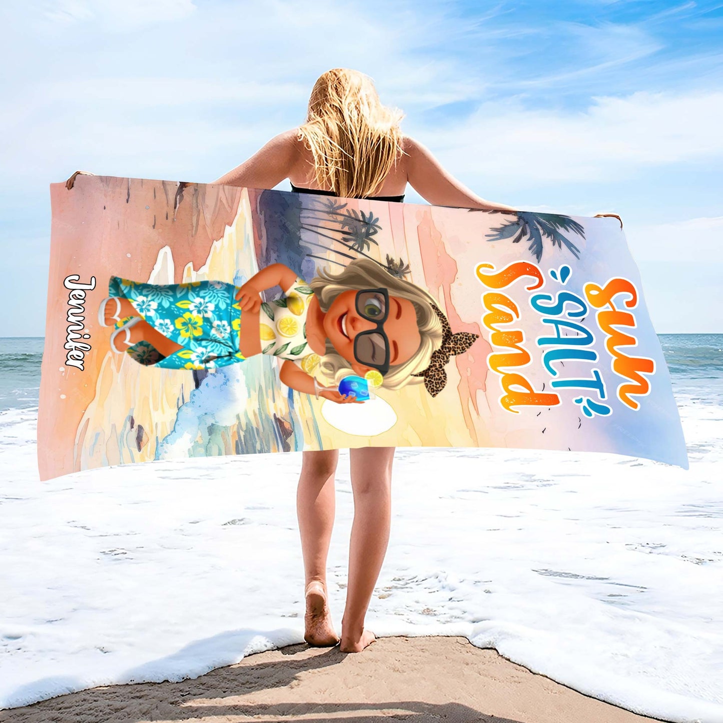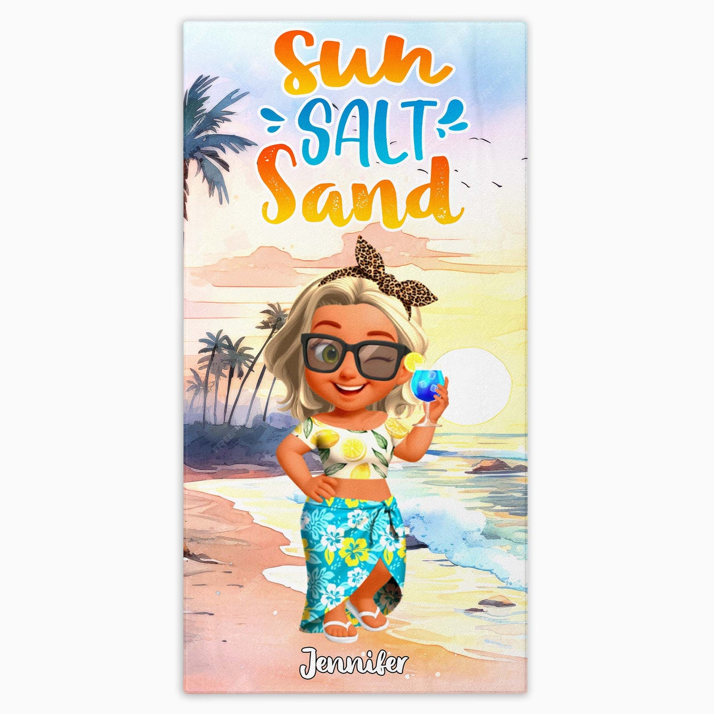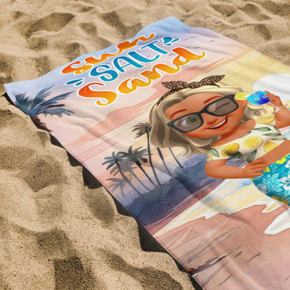 Sun, Salt, Sand With Beach and Palm Trees, Personalized Beach Towel, Gift For Beach Lovers