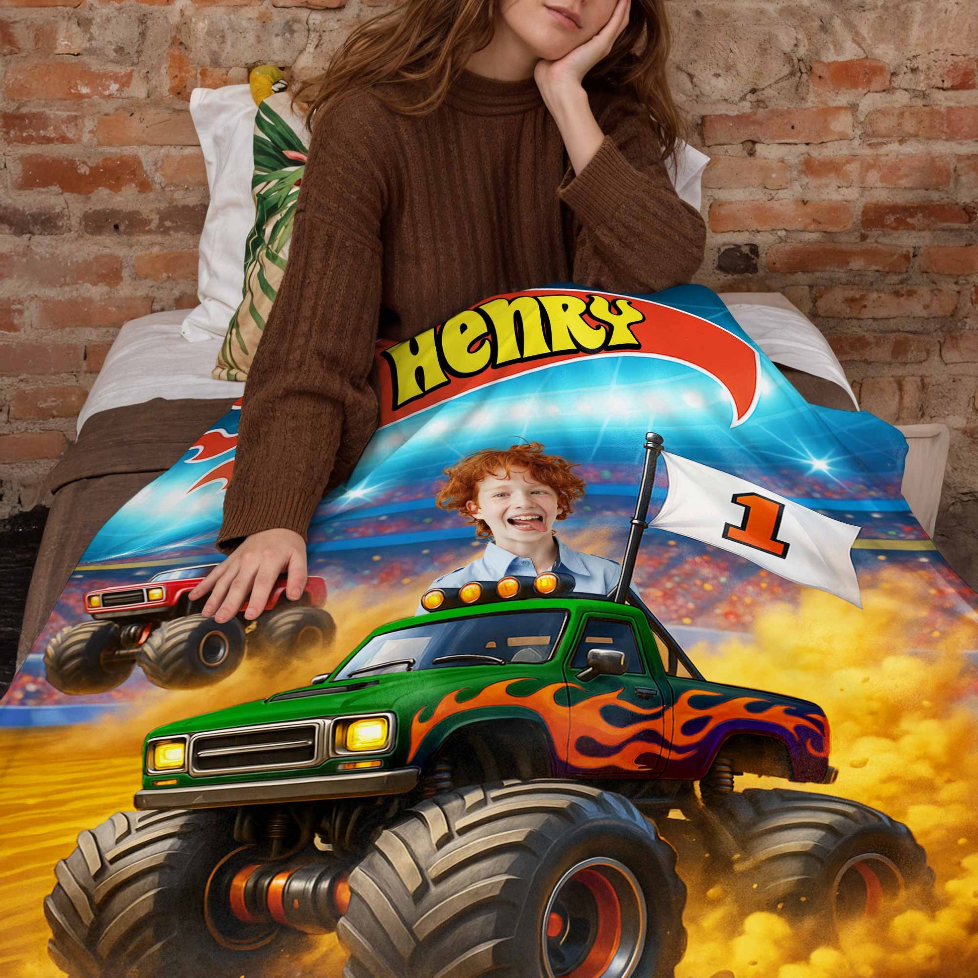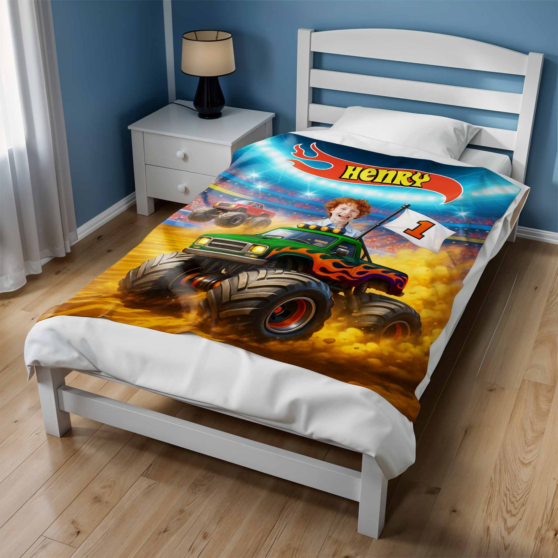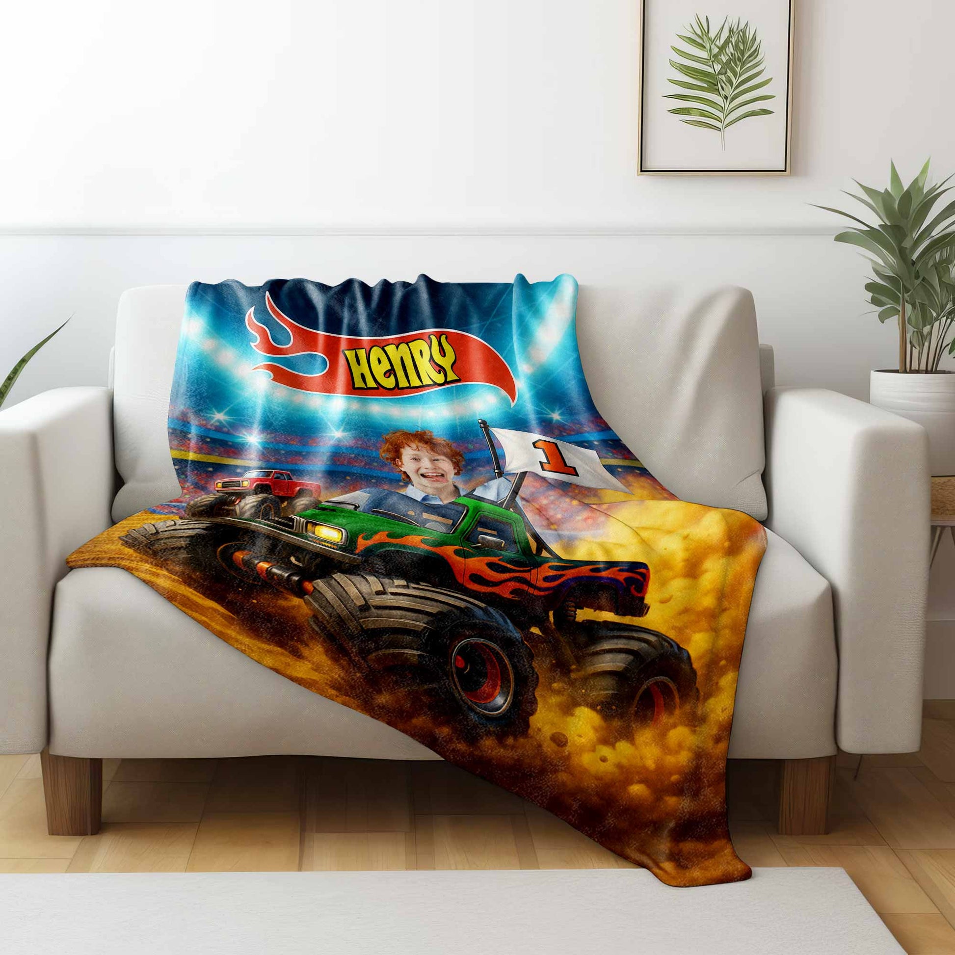 Thrilling Adventure With Monster Trucks,Custom Blanket,Gift For Boys And Kids