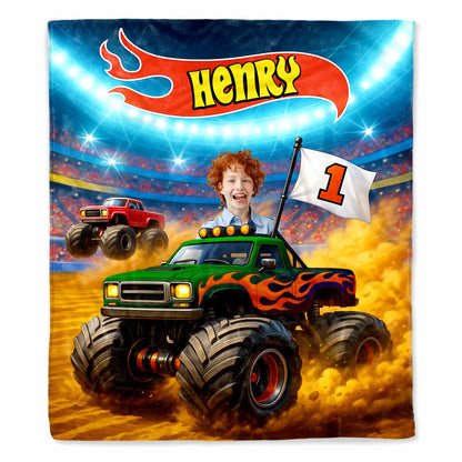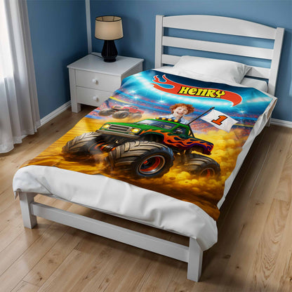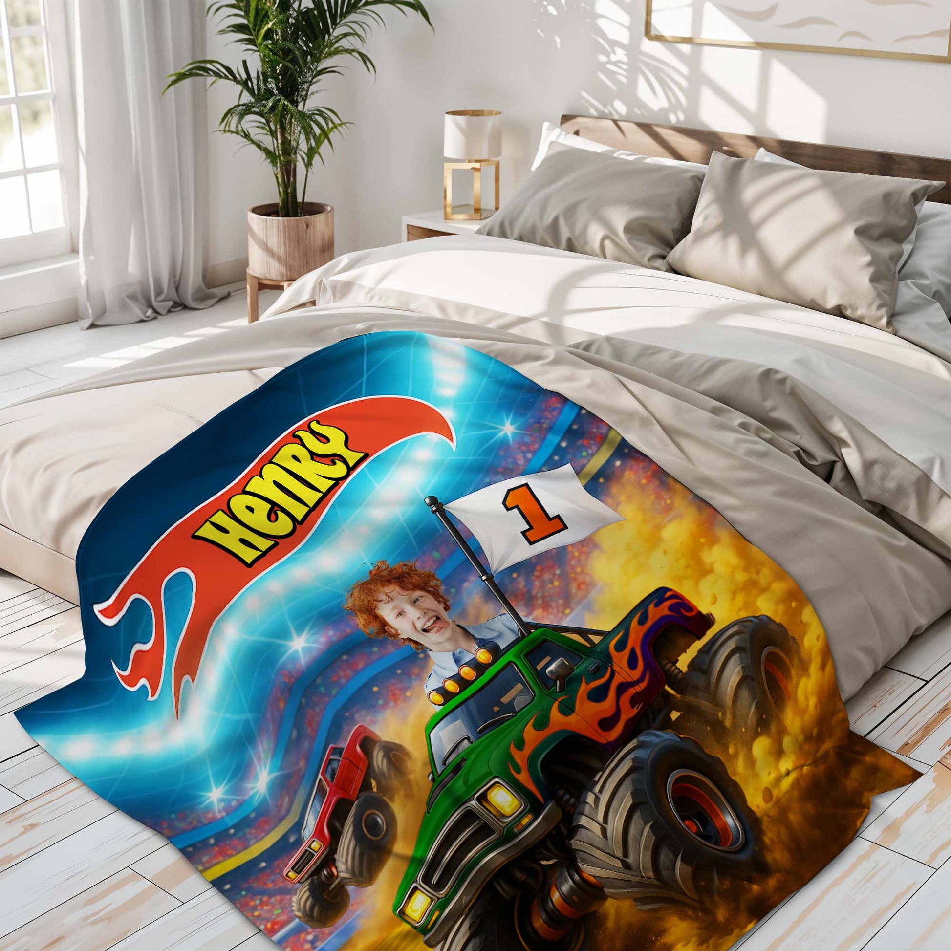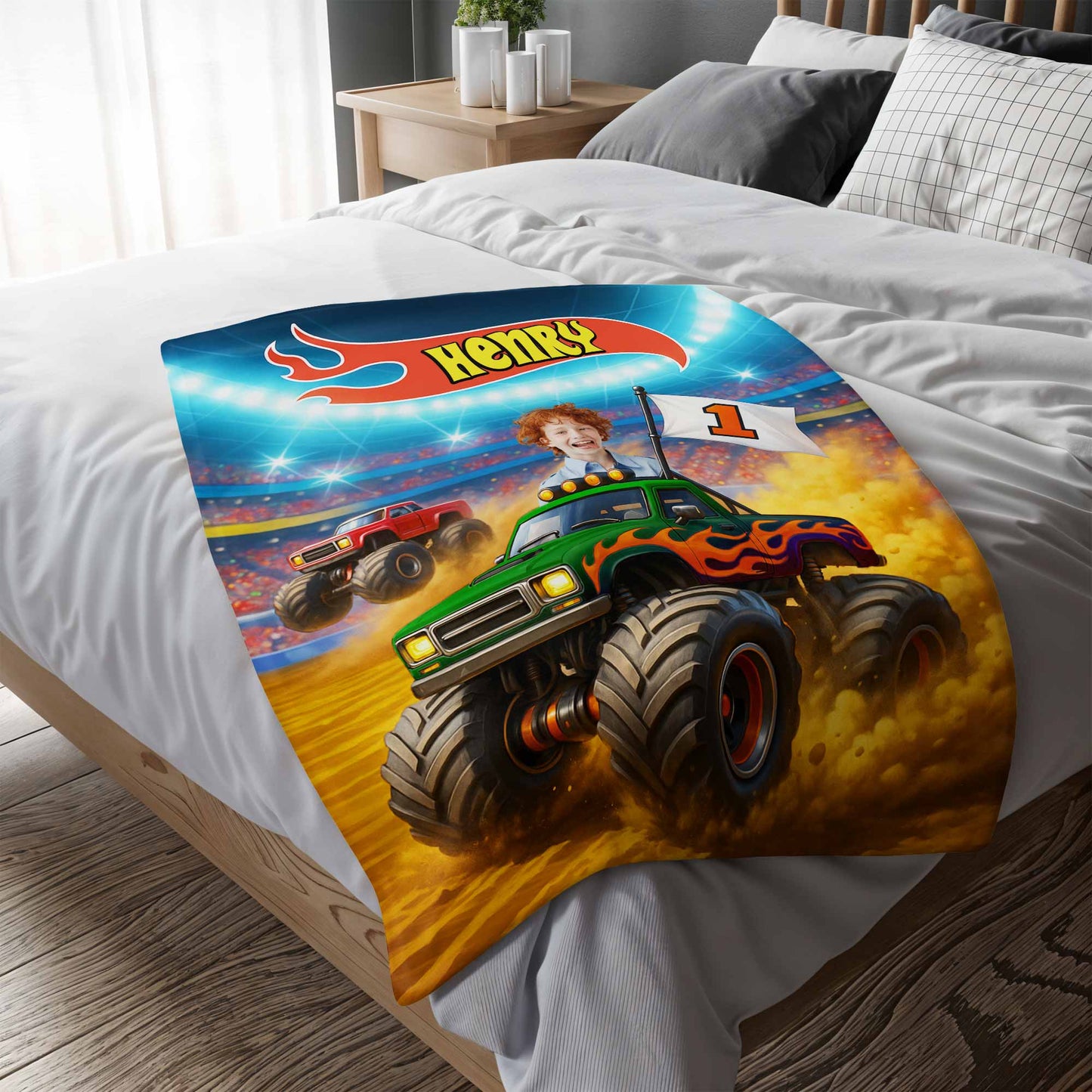 Thrilling Adventure With Monster Trucks,Custom Blanket,Gift For Boys And Kids