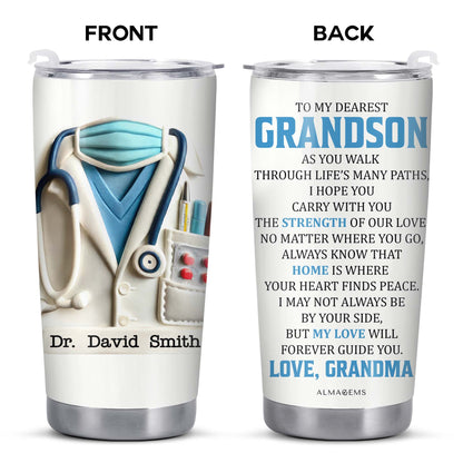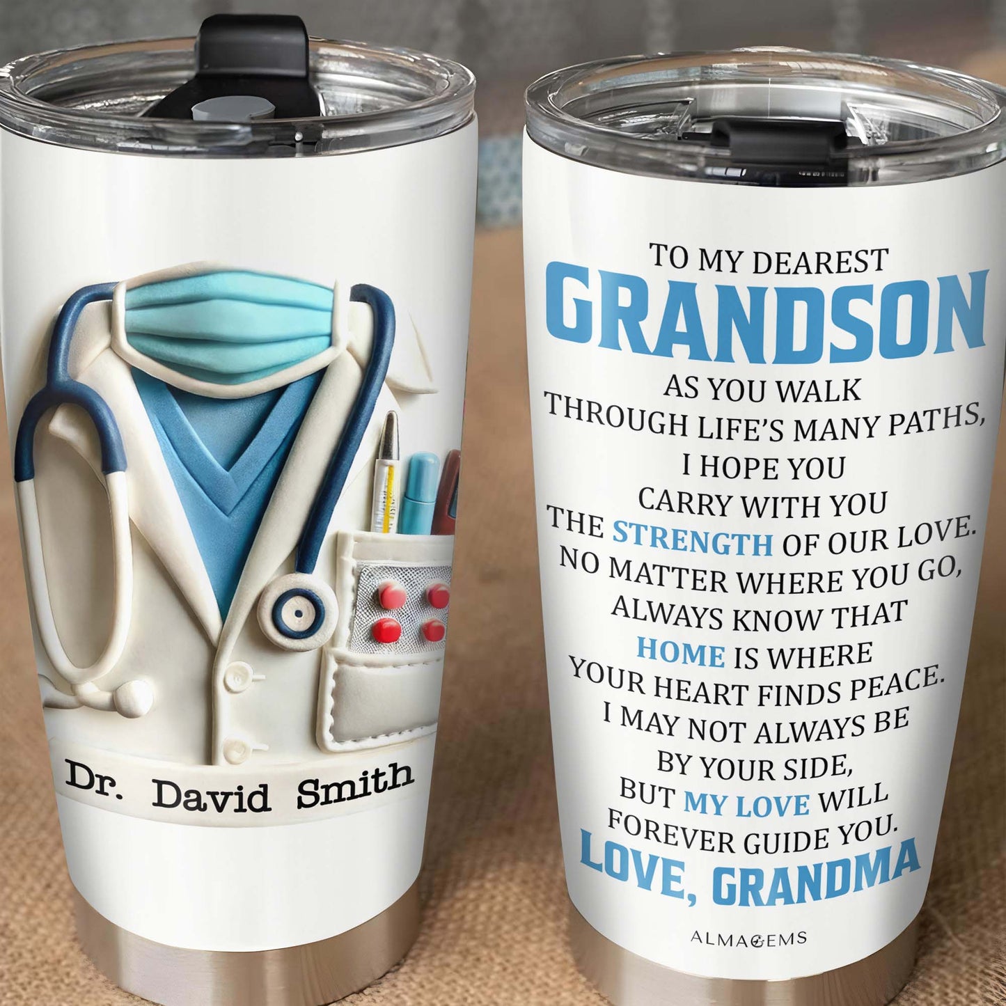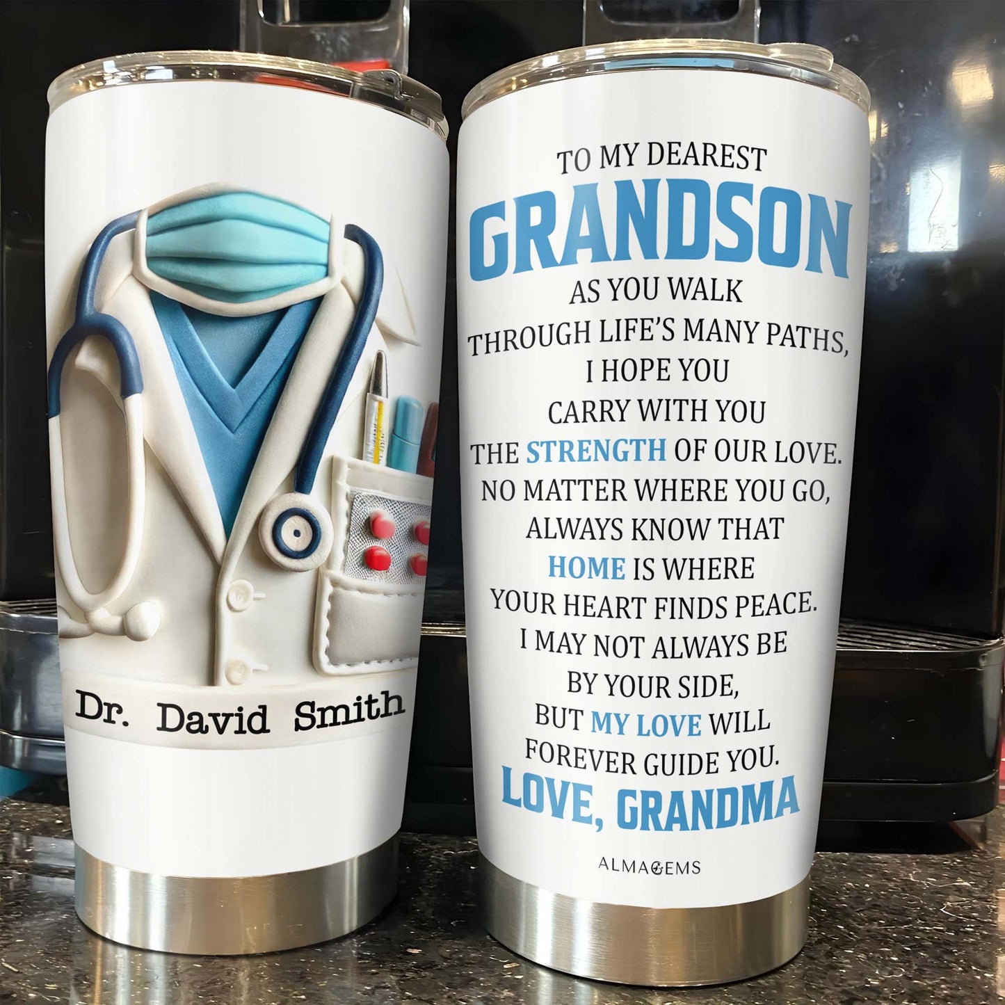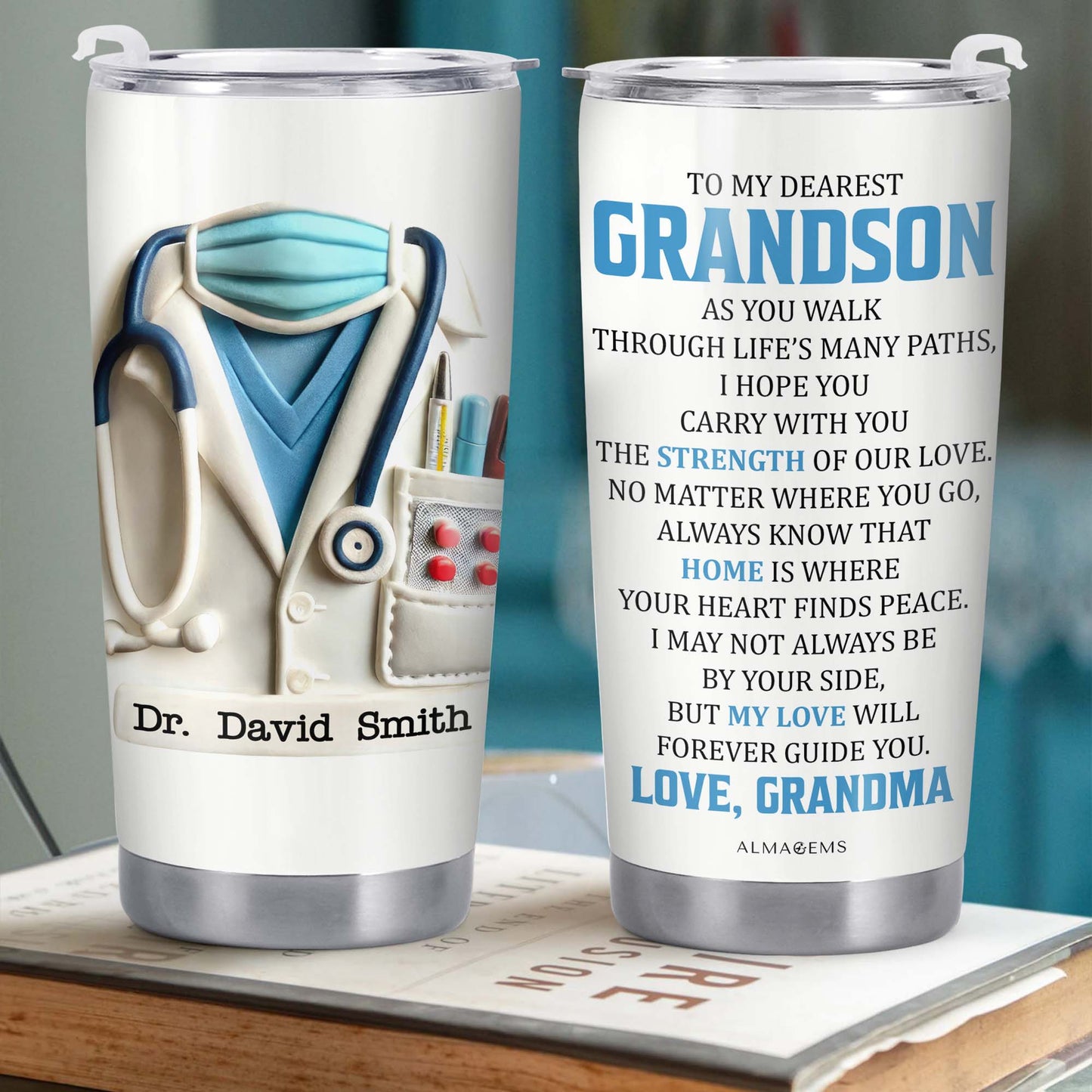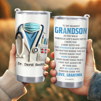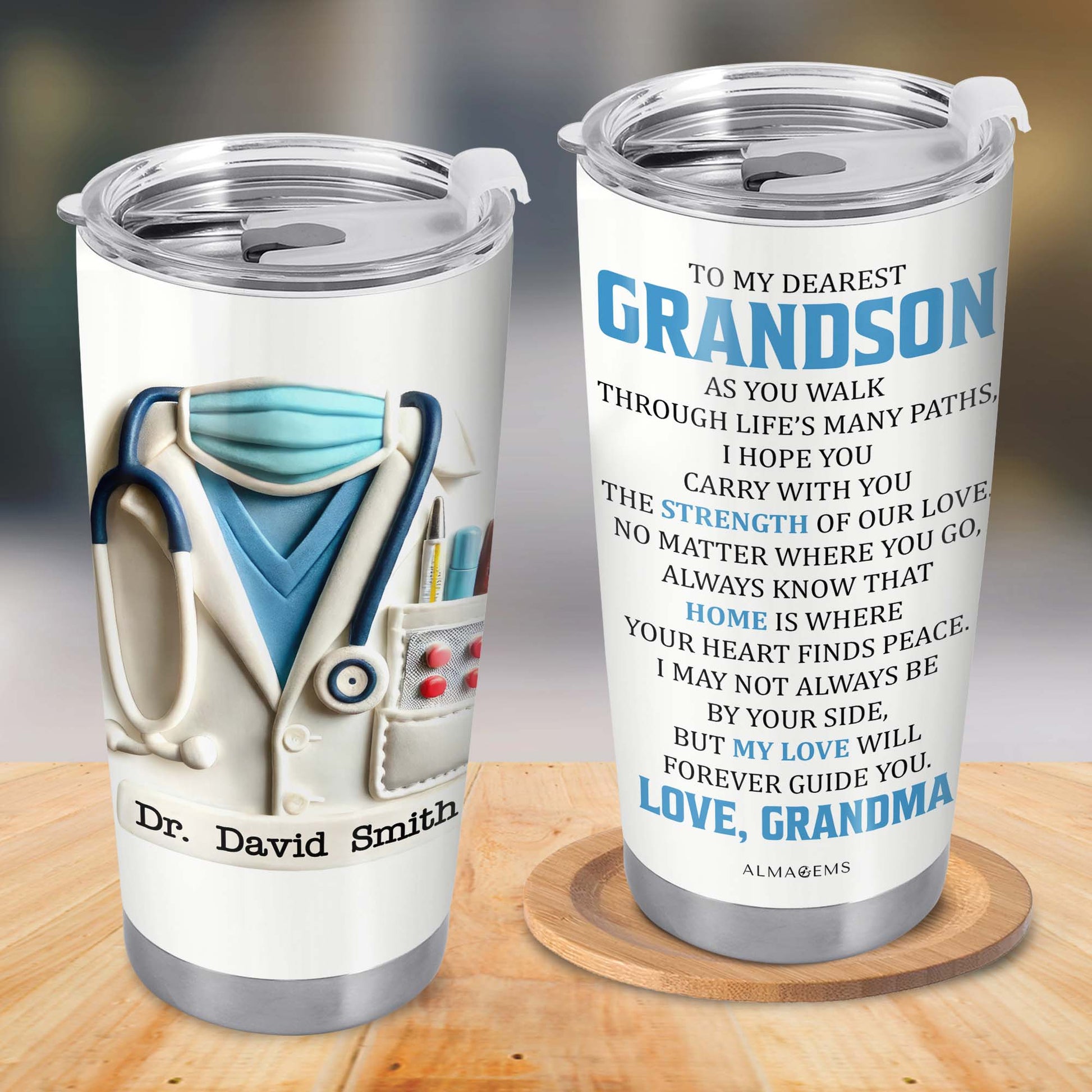 Para mi querido nieto, en tu camino por la vida, instrumentos médicos y uniformes médicos - Vaso de acero inoxidable personalizado de 20 oz y 30 oz - GSN049_TB