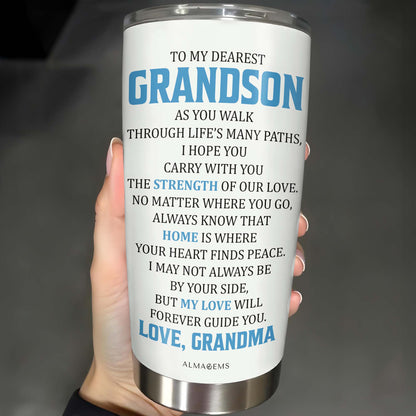 To My Dearest Grandson, As You Walk Through Life's Many Paths, Personalized Custom Stainless Steel Tumbler 20oz 30oz, Gift For Grandsons