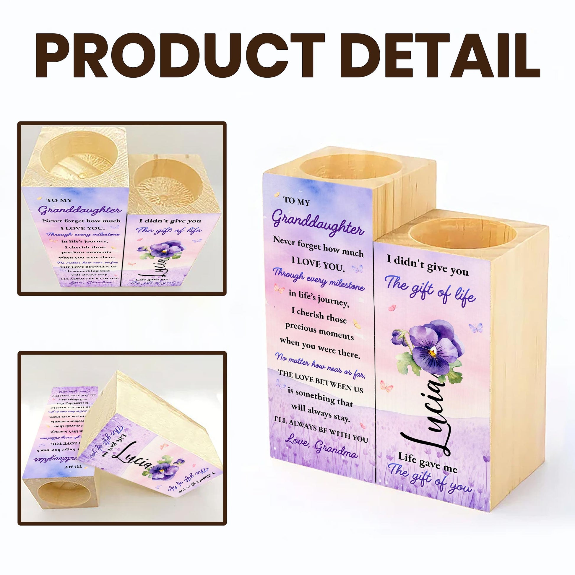 To My Granddaughter,Love Always Stays,Pansy Flowers,Custom Candle Holder,Gift For Granddaughters