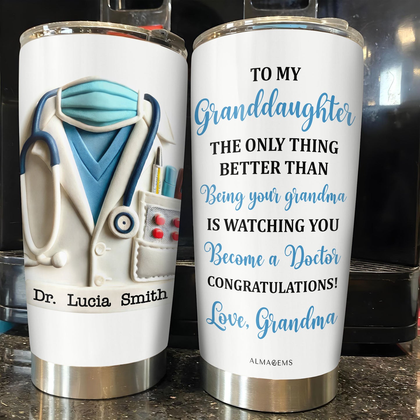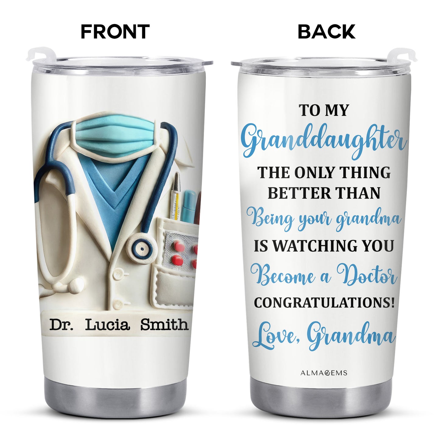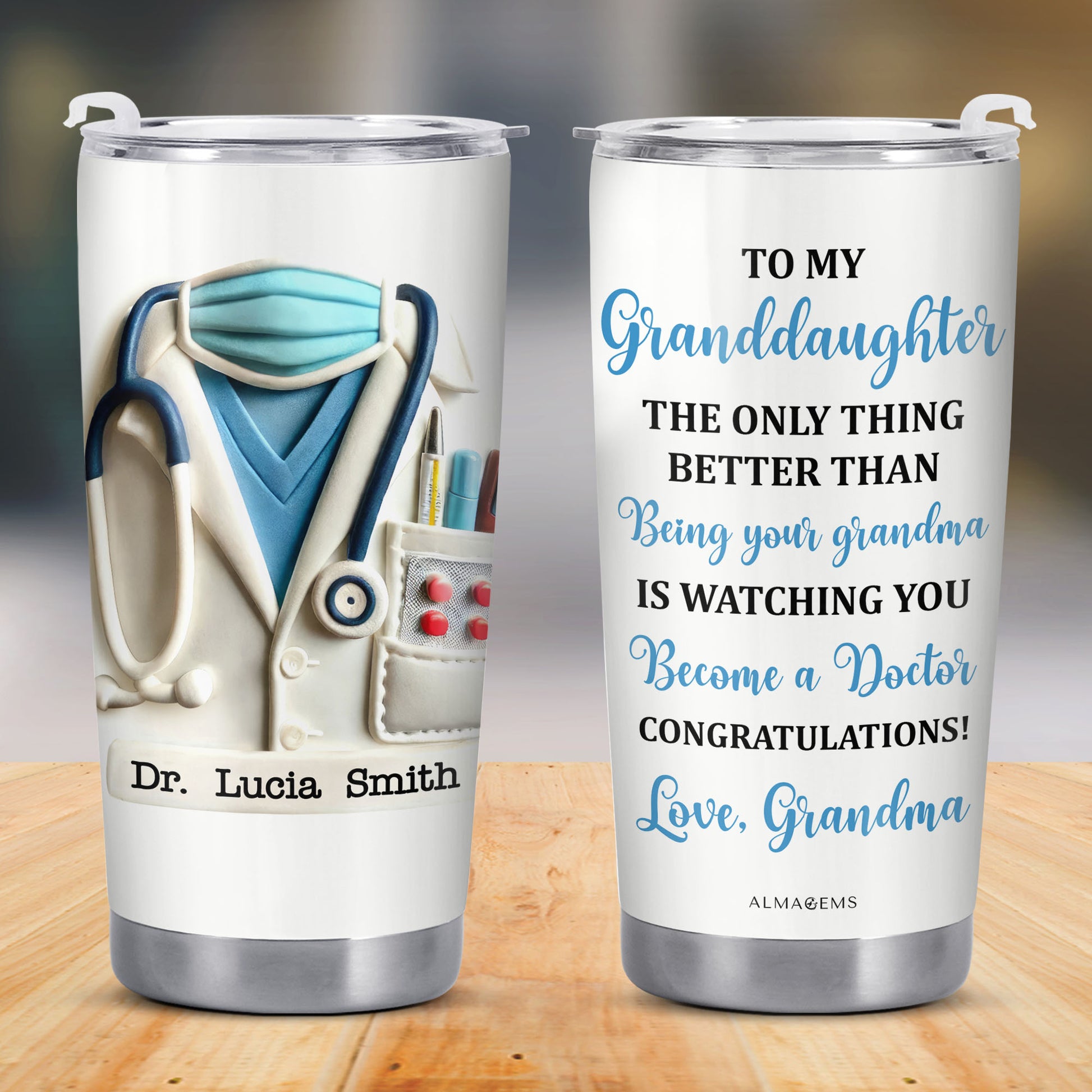 Para mi nieta, lo único mejor que una bata médica y un estetoscopio - Vaso de acero inoxidable personalizado de 20 oz y 30 oz - GDT300_TB