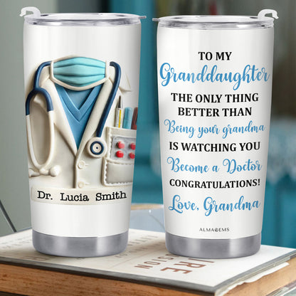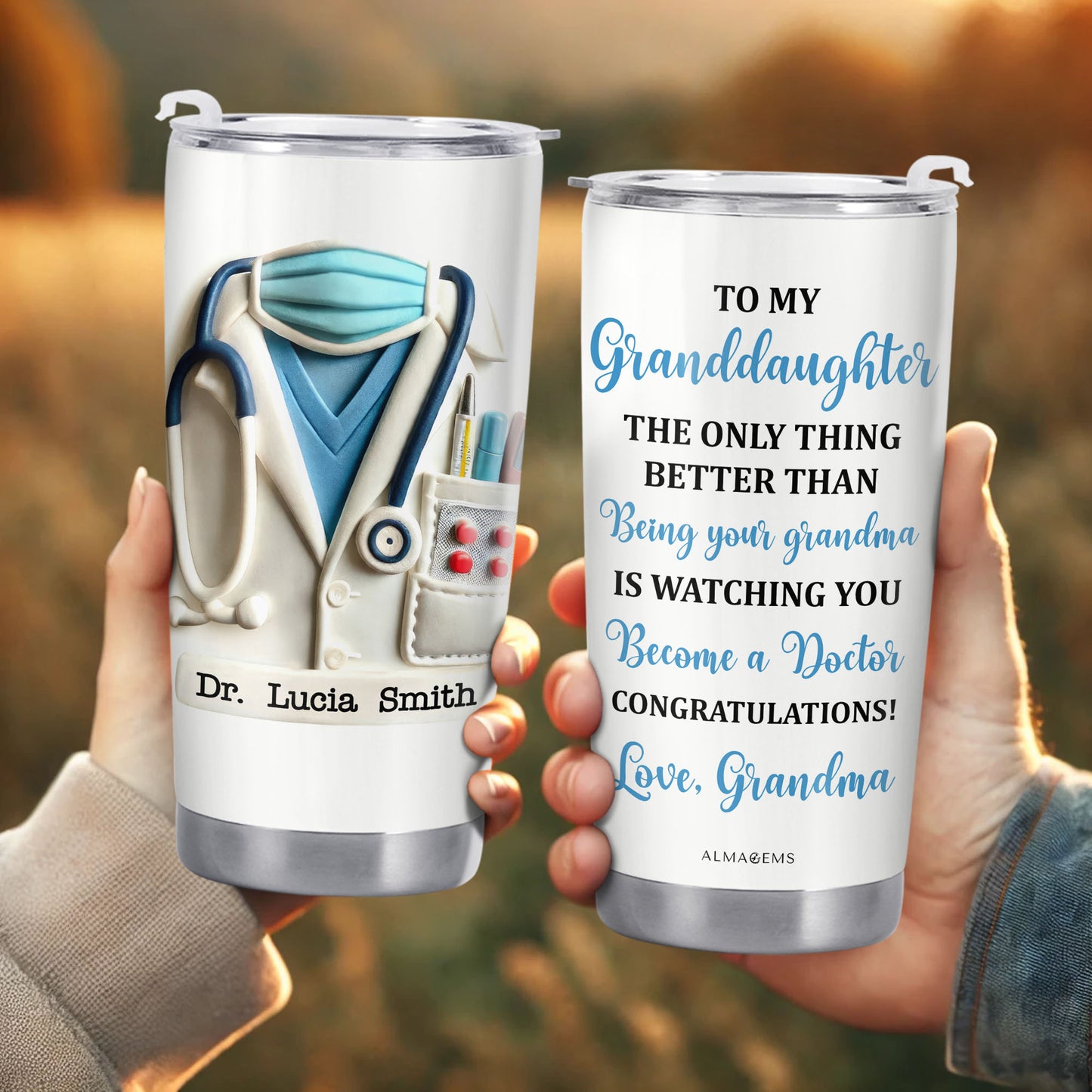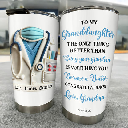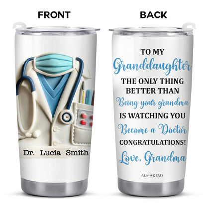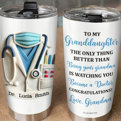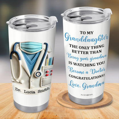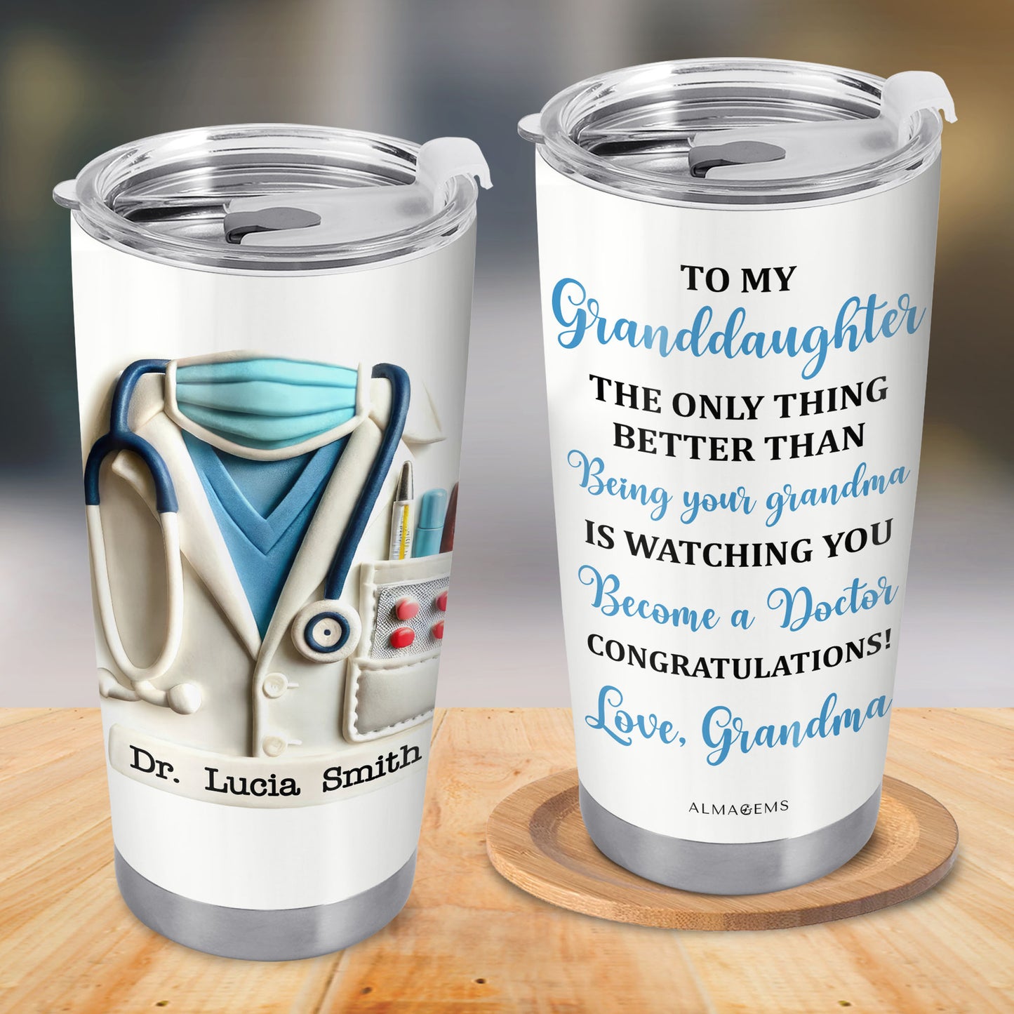 Para mi nieta, lo único mejor que una bata médica y un estetoscopio - Vaso de acero inoxidable personalizado de 20 oz y 30 oz - GDT300_TB