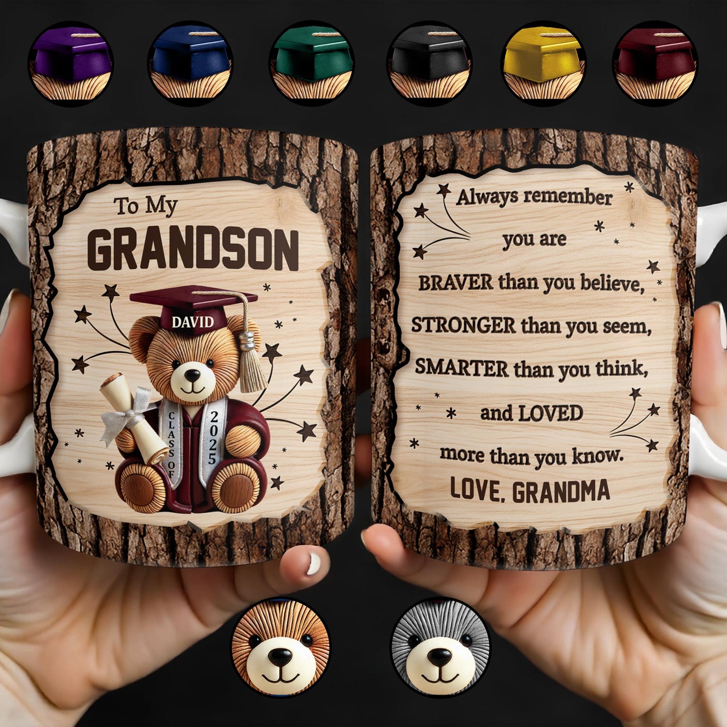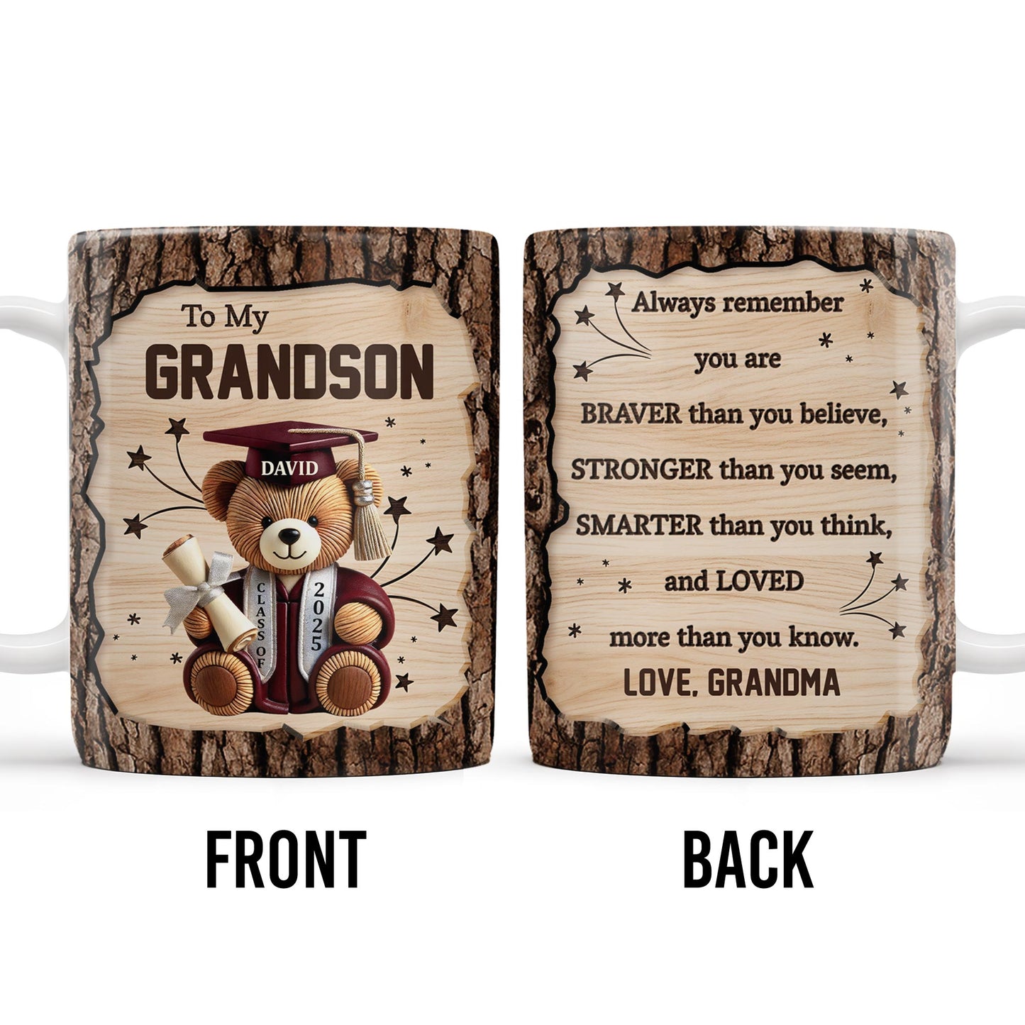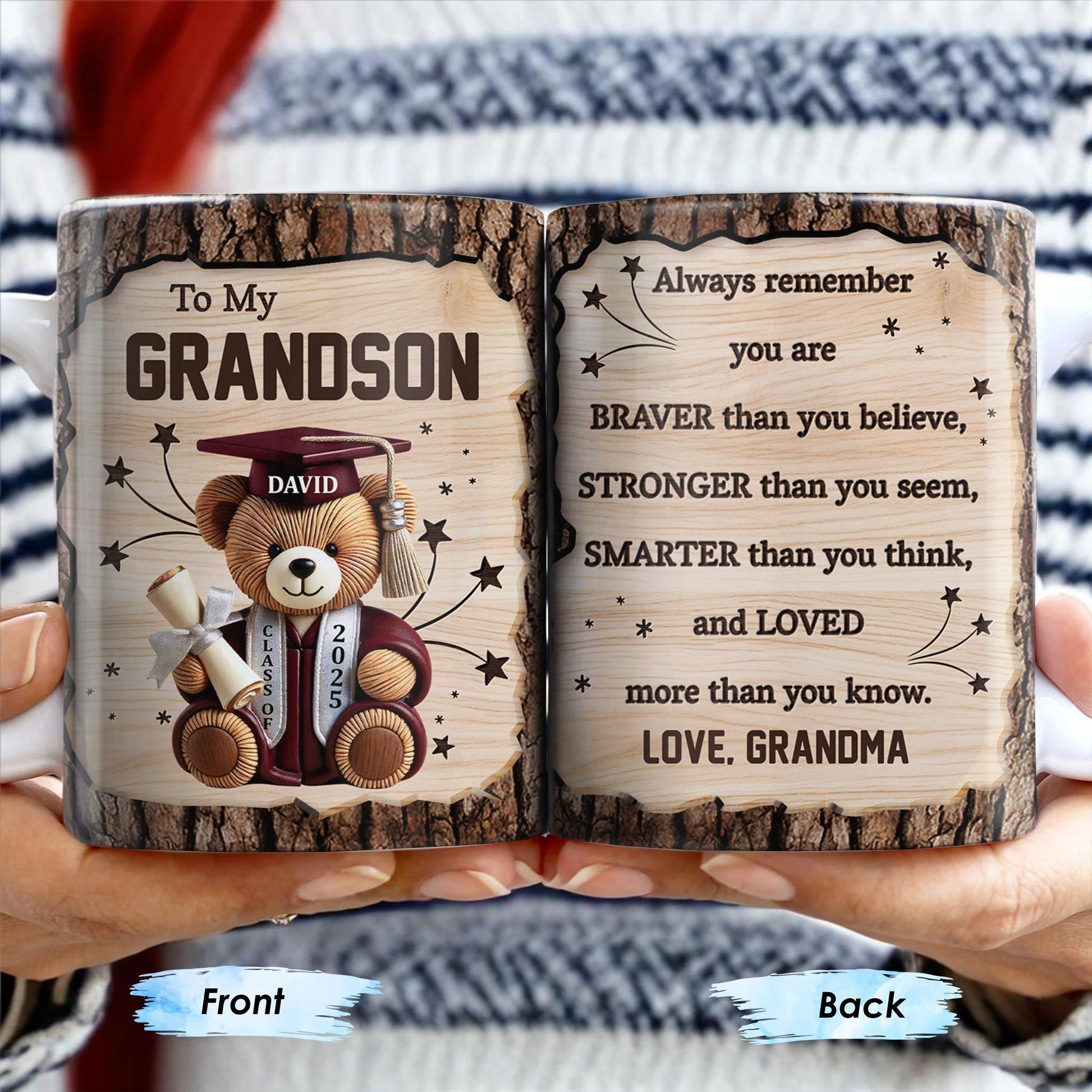 To My Grandson, Always Remember You Are Braver, Graduation Cap and Diploma, Personalized Custom Coffee Mug, Gift for Grandsons