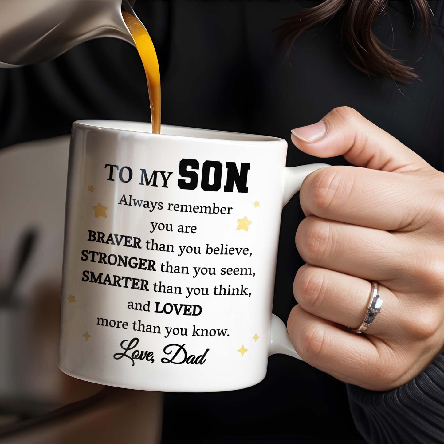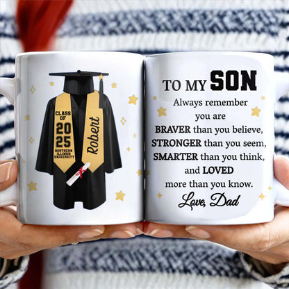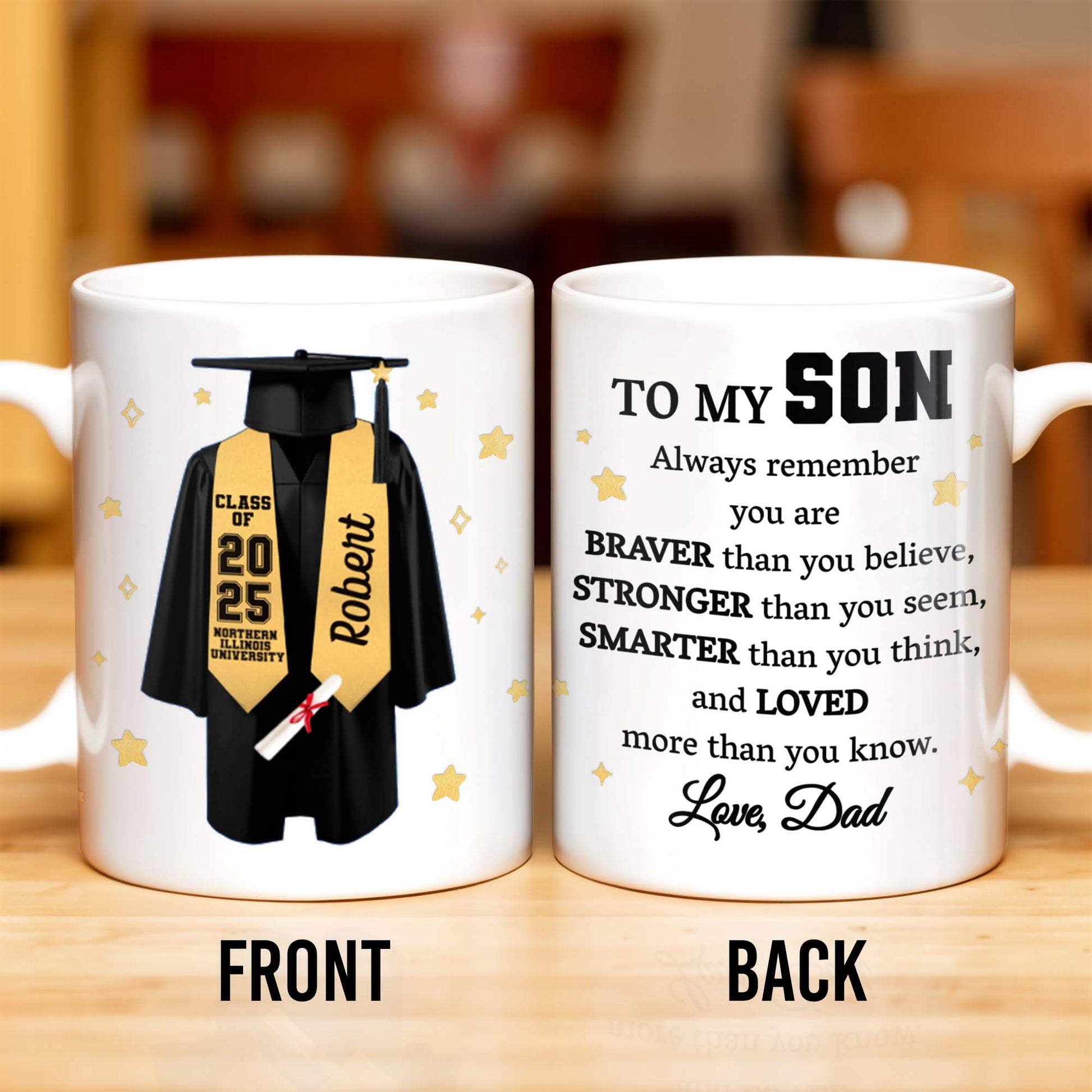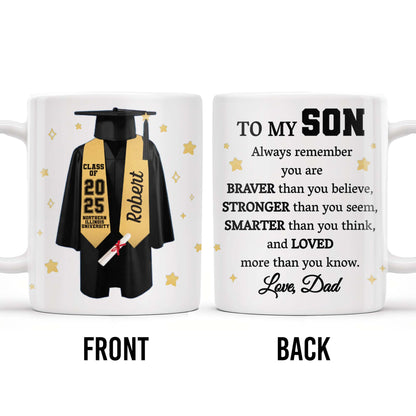 To My Son, Always Remember You Are Braver, Graduation Robe and Stars, Personalized Custom Coffee Mug, Gift For Sons