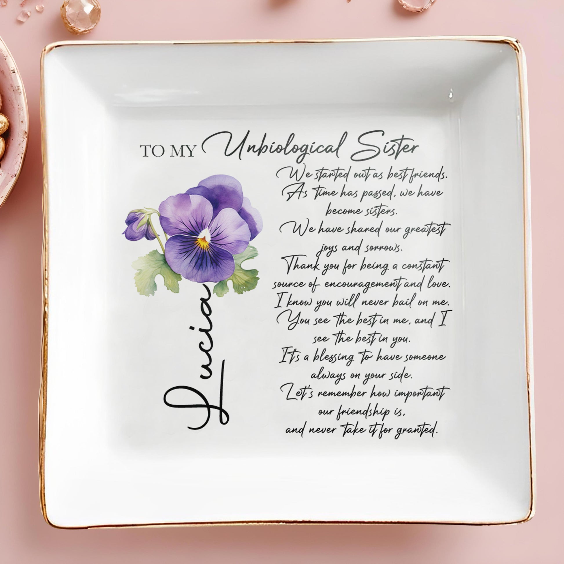 To My Unbiological Sister - Best Friends Personalized Custom Jewelry Dish - Gift For Sisters