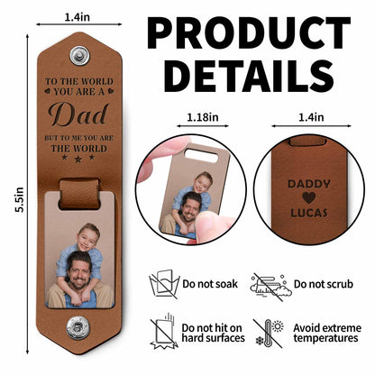 To The World You Are A Dad But To Me You Are The World, Personalized Leather Keychain, Gift For Dads