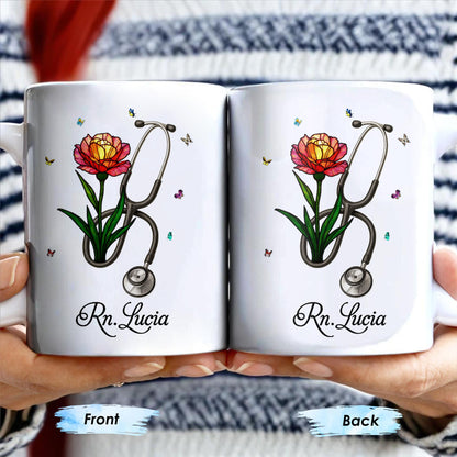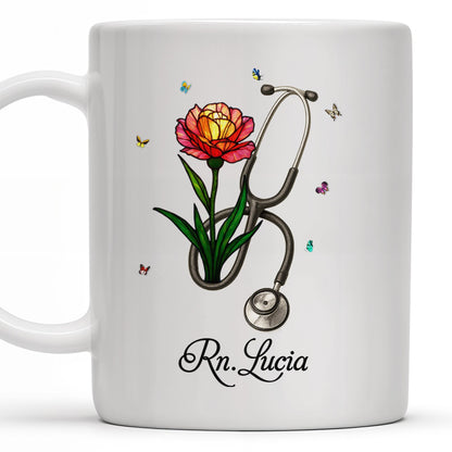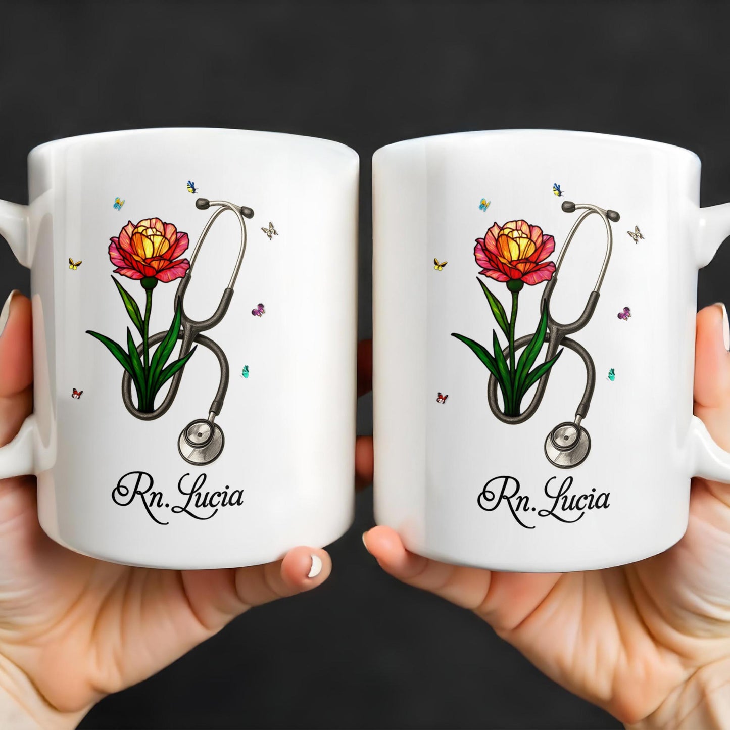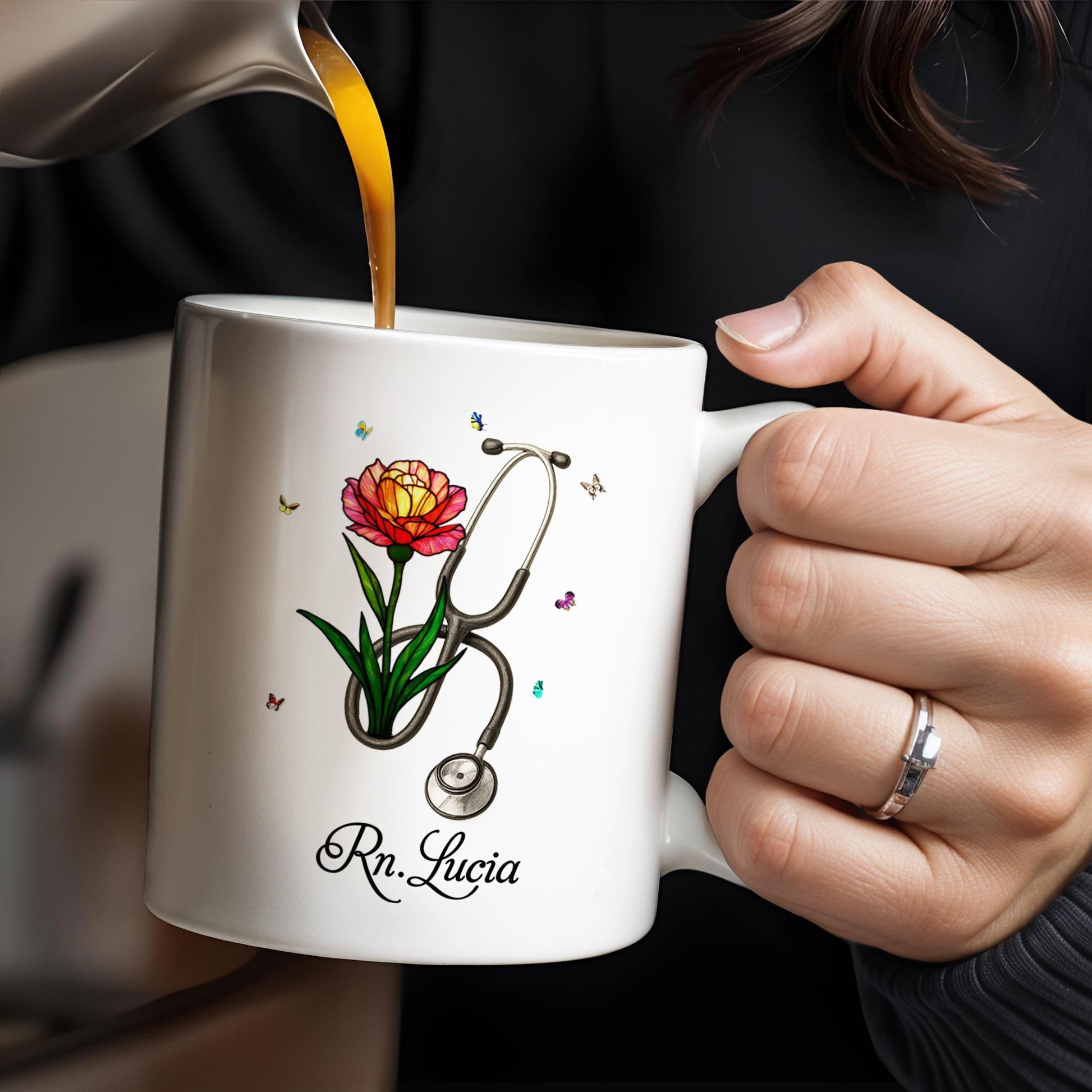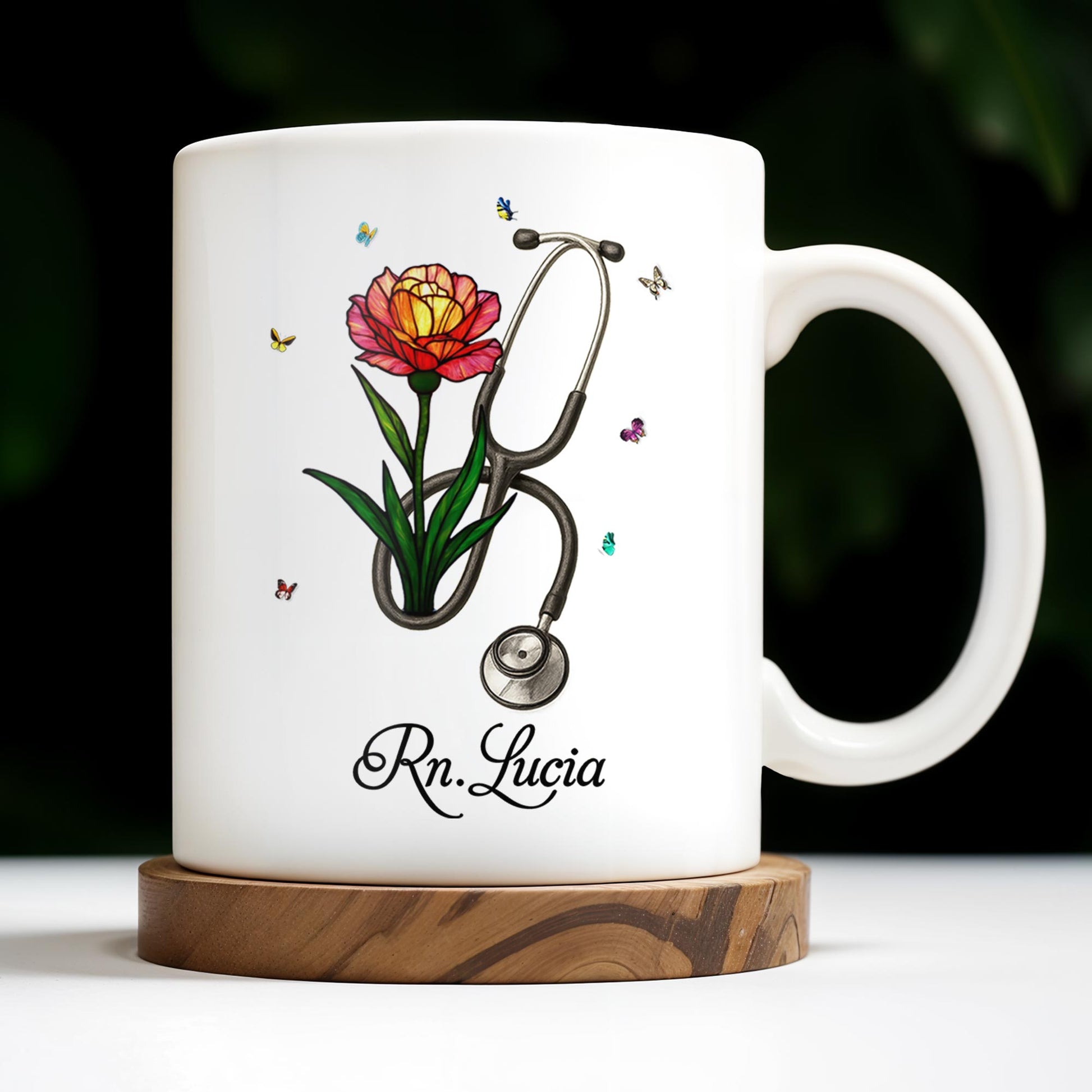 Vibrant Tulip And Stethoscope Design, Personalized Custom Coffee Mug, Gift For Nurses