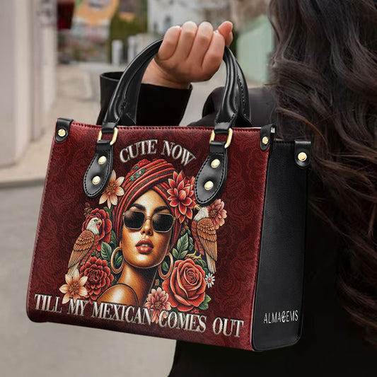 Mignon maintenant... Jusqu'à ce que mon mexicain sorte - Sac à main en cuir personnalisé - ME058_HB