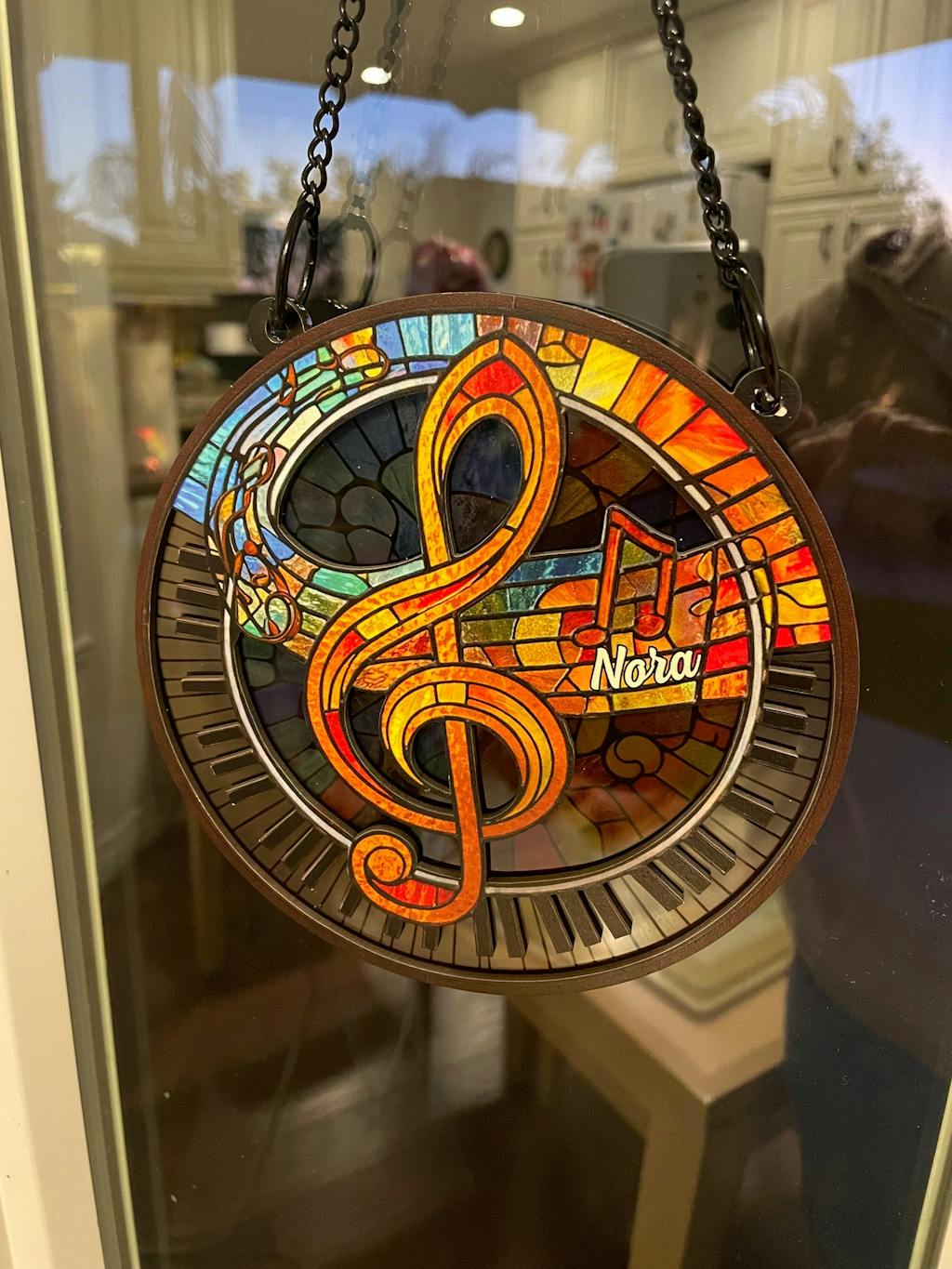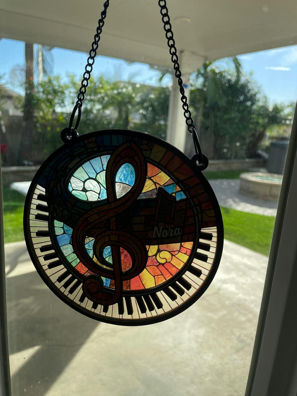 I am glad I bought this reminder of my musical mother. However, the top arc and the G clef are not translucent, so during the day, they are silhouetted rather than illuminated. At night, however, when the suncatcher is not backlit, those are the parts that most stand out. I would have given it a 5 if the whole thing had been translucent.