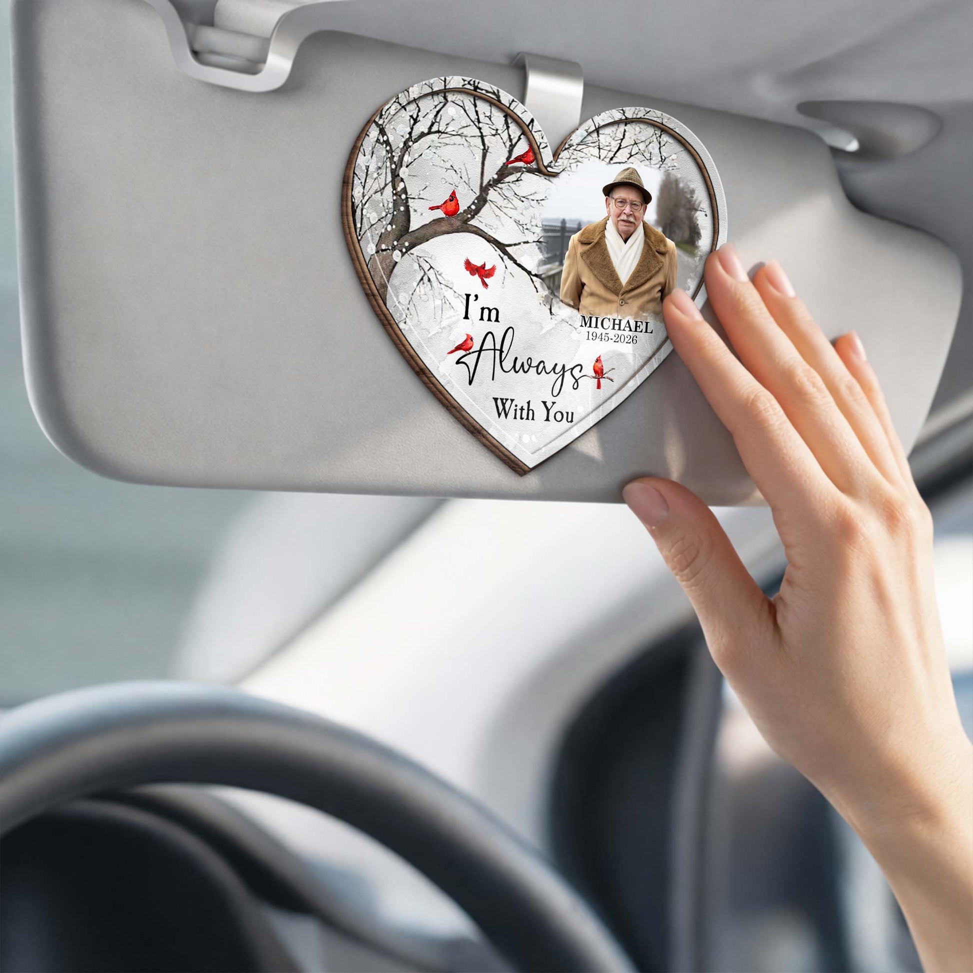 I'm Always With You, Cardinal Birds, Winter Trees - Personalized Custom Shaped Car Visor Clip - HME496_VIS