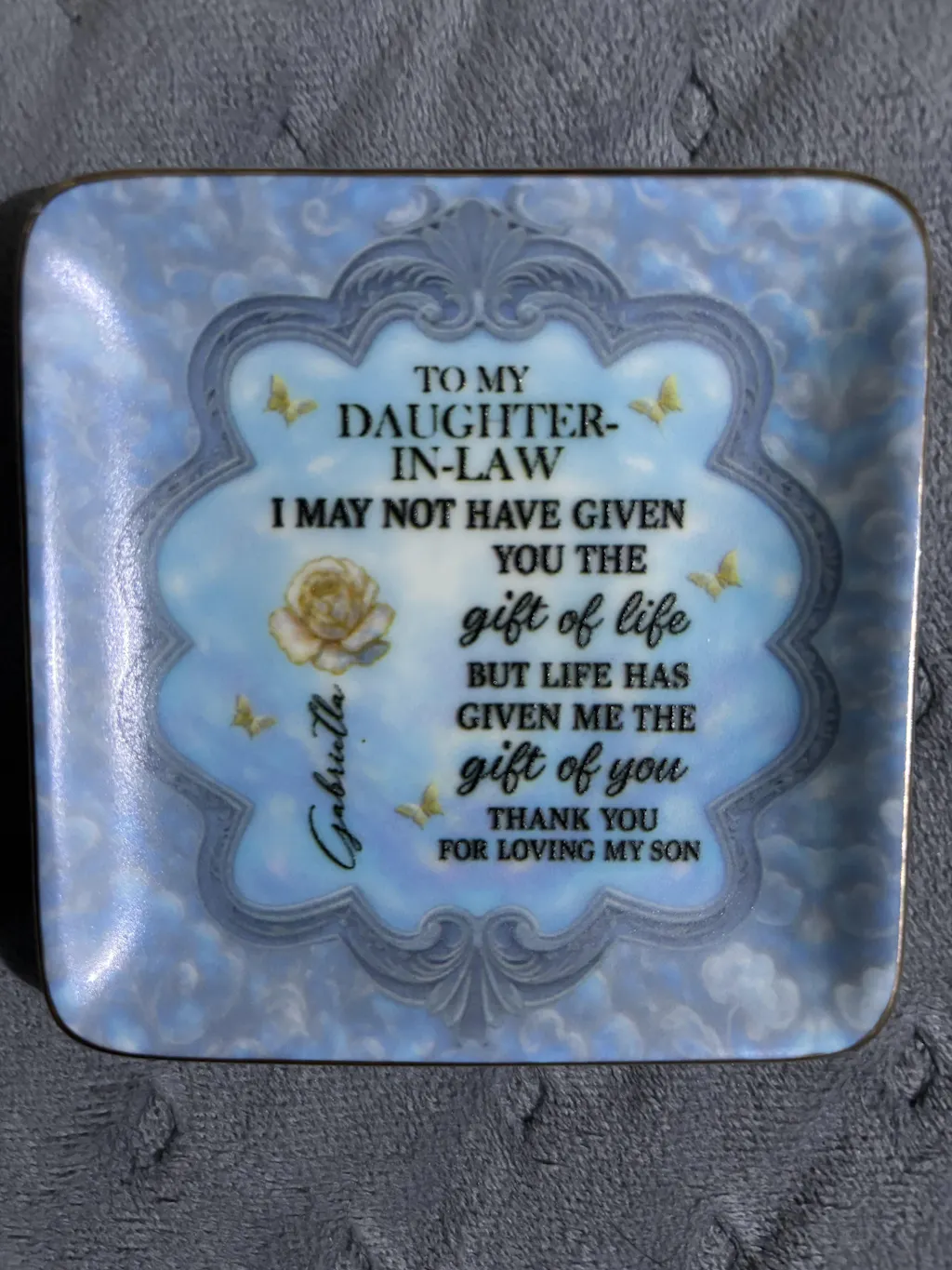 Is breathtaking, just beautiful 🤩the details of the flower and her name came out beautifully. I know when my daughter in law see it , she’s gonna Love it . Thank you for this amazing jewelry dish.