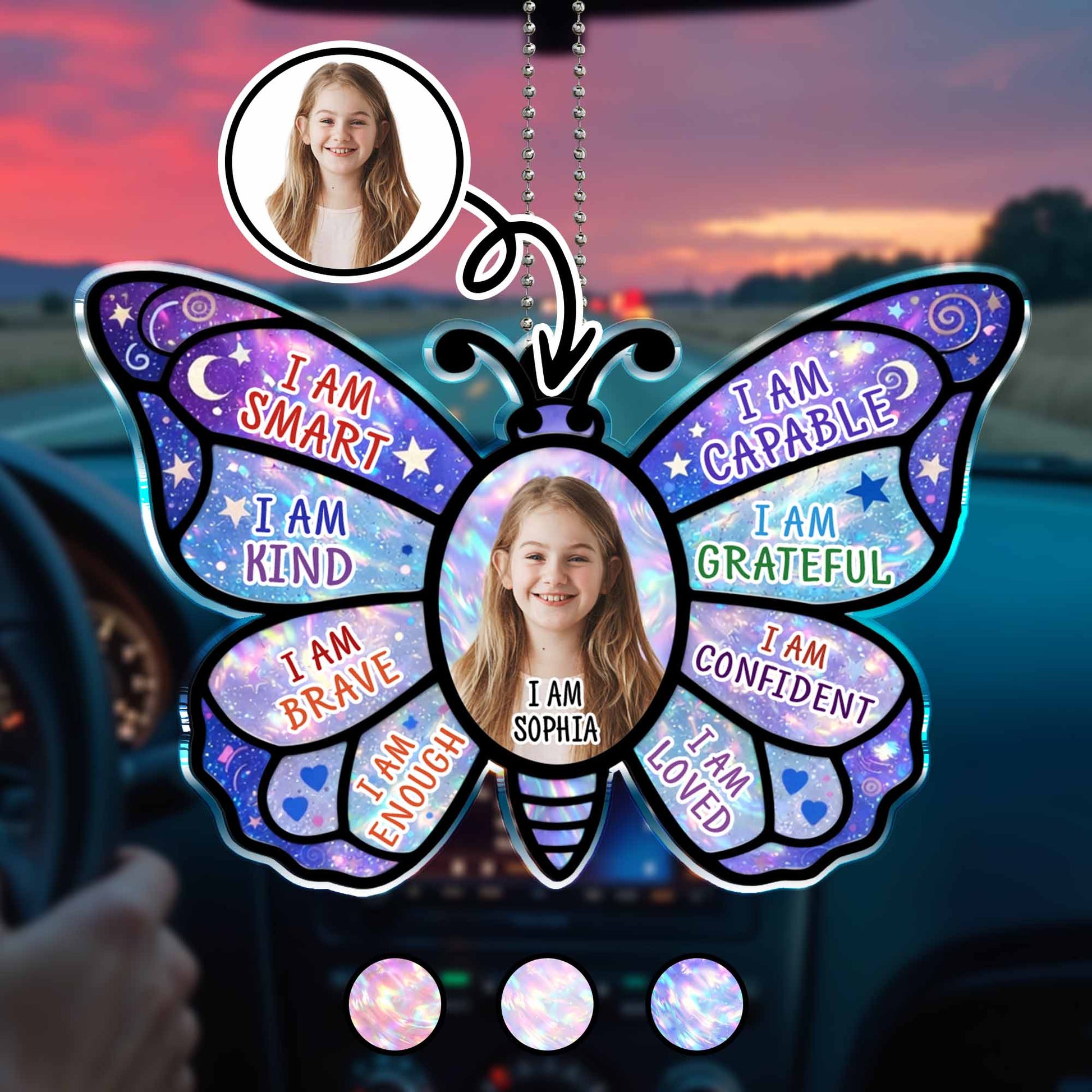 I Am Smart Kind Brave Butterfly Affirmations With Custom Photo - Personalized Custom Acrylic Ornament, Car Hanging Ornament - KID580_ACA