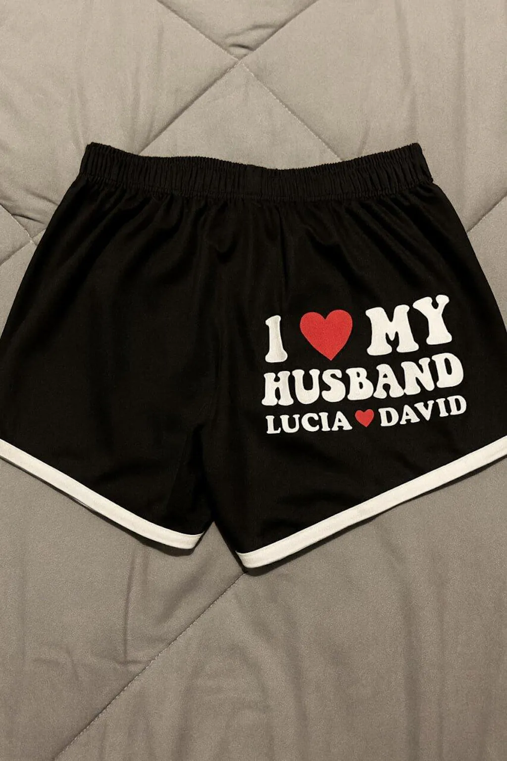 I Love My Husband With Heart Design, Personalized Women's Beach Shorts, Gift For Wife