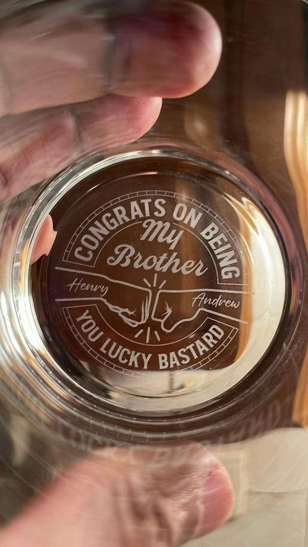 Celebrate love and life's milestones with a timeless, personalized engraved whiskey glass—perfect for commemorating anniversaries, special occasions, or as a humorous yet heartfelt groom’s gift. Made from premium-quality glass, this stylish piece elevates every toast, adding a touch of sophistication to any gathering. The custom engraving—whether it’s a name, special date, or meaningful message—transforms it into a cherished keepsake, perfect for your husband, boyfriend, or groom.
