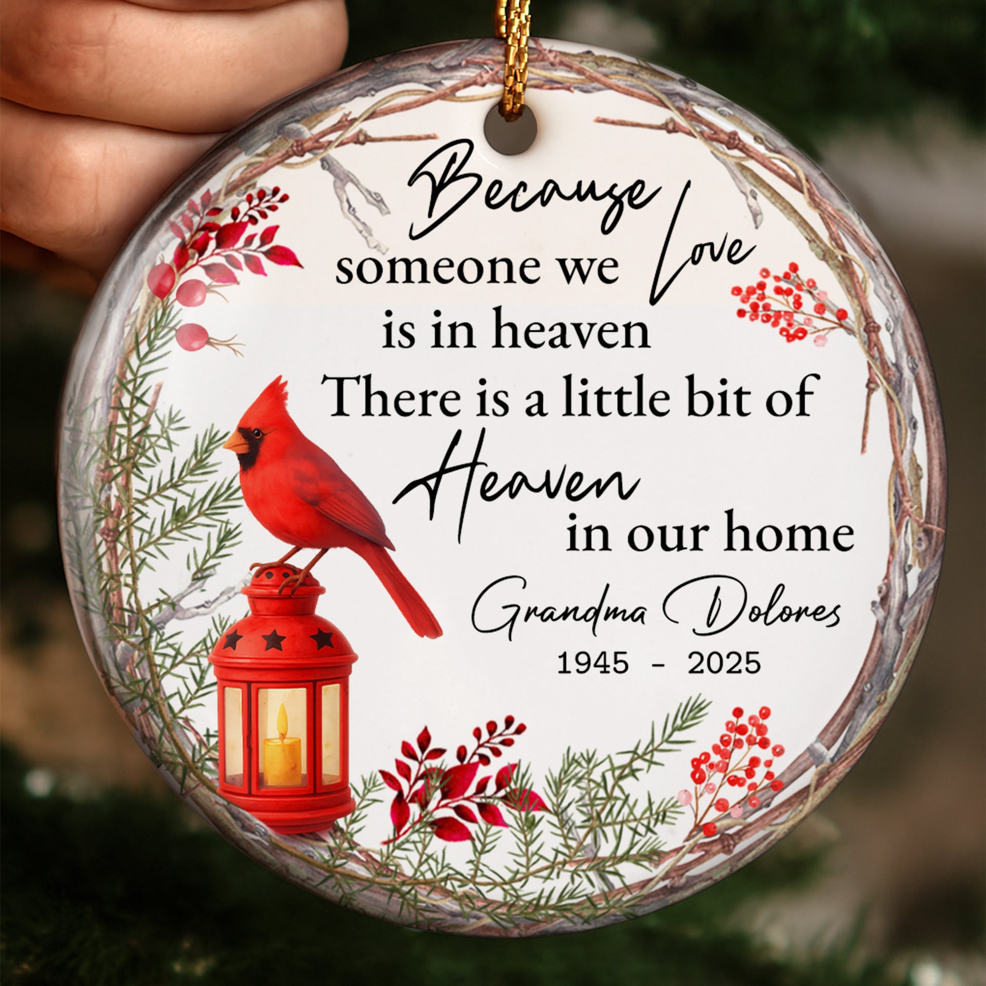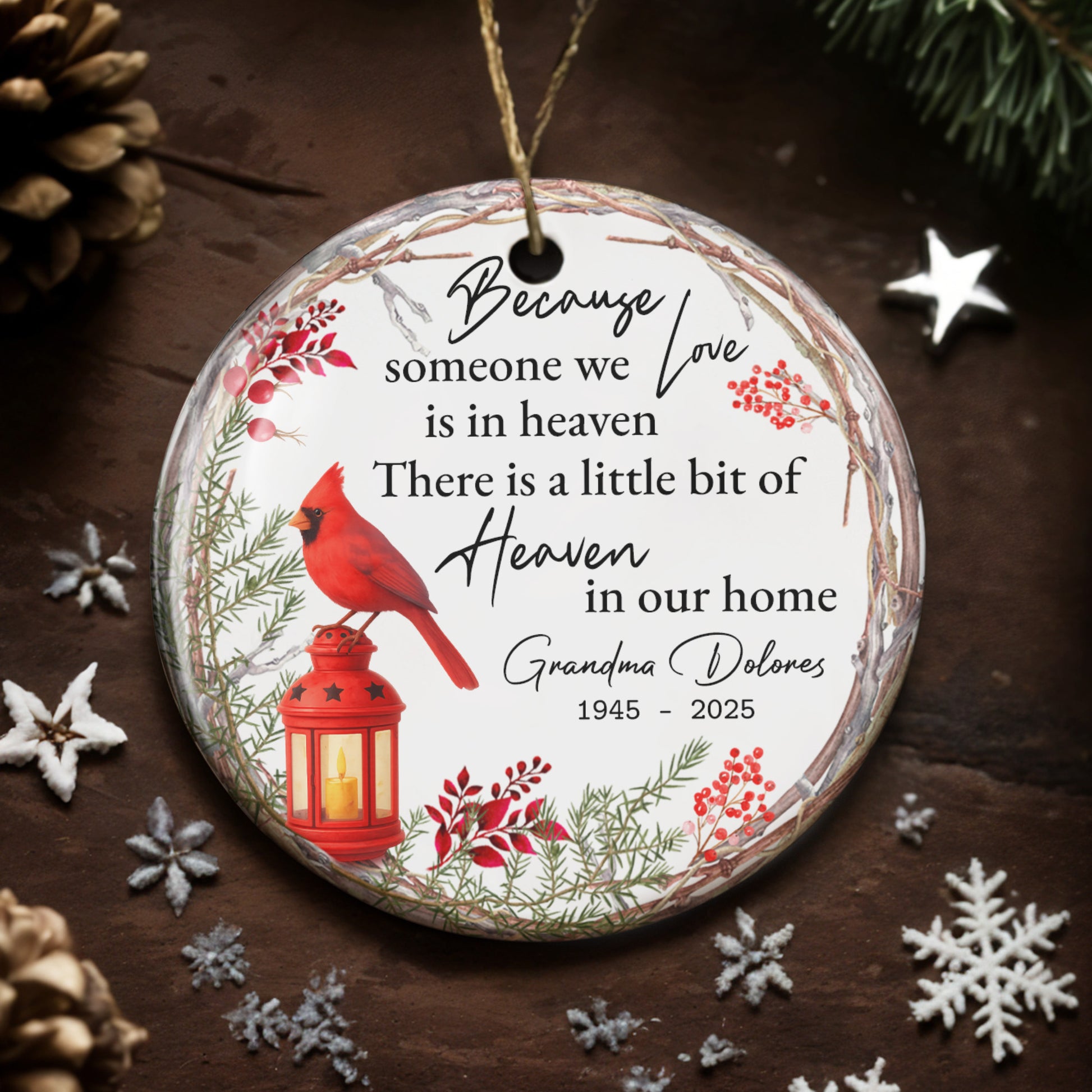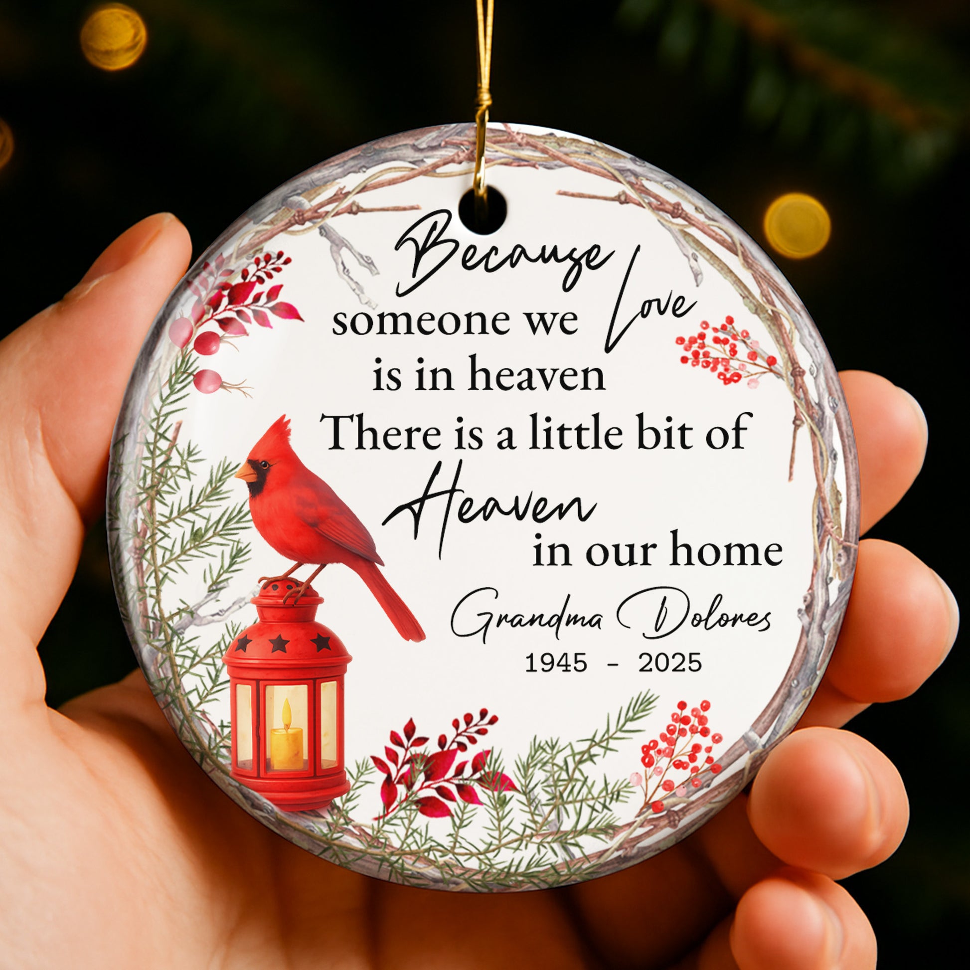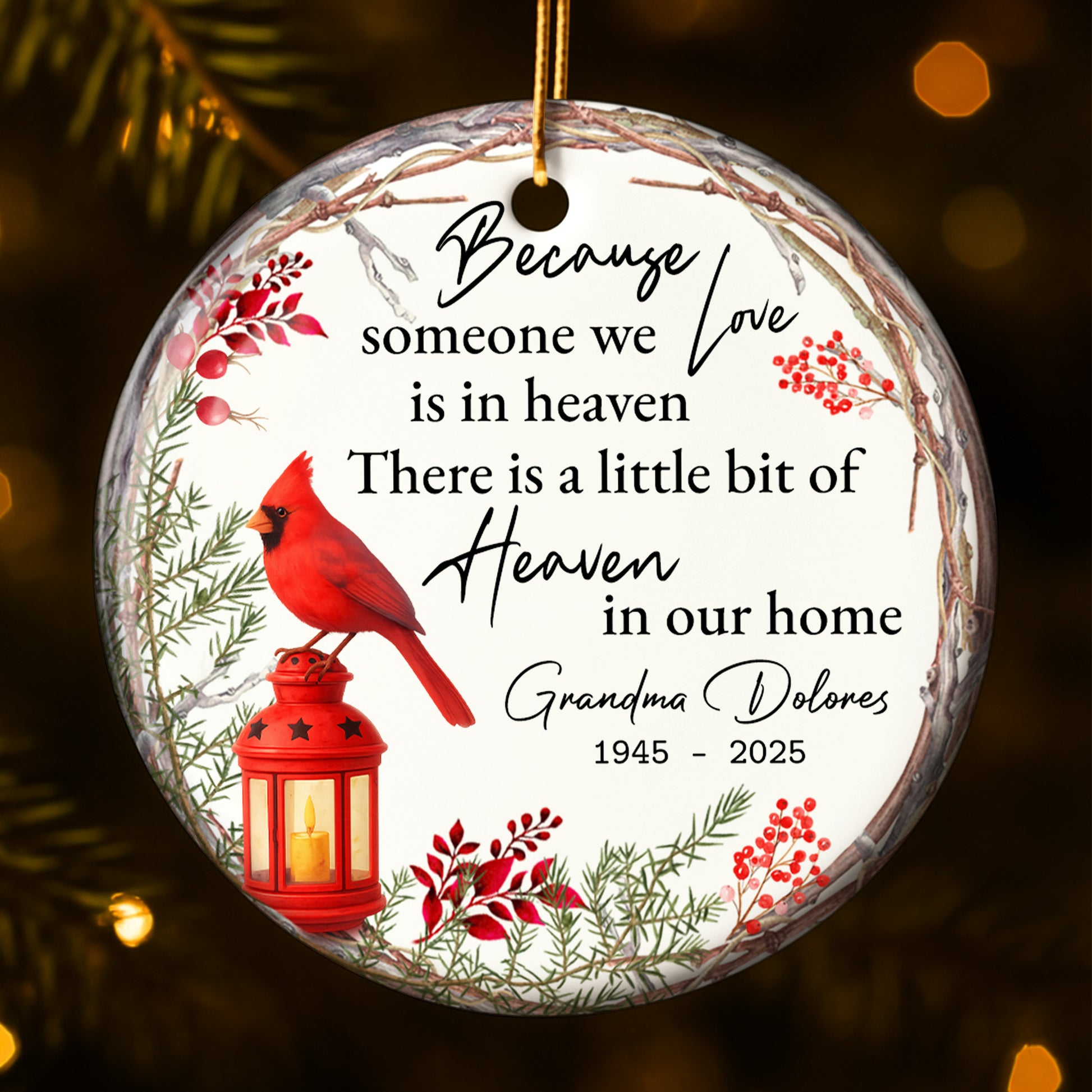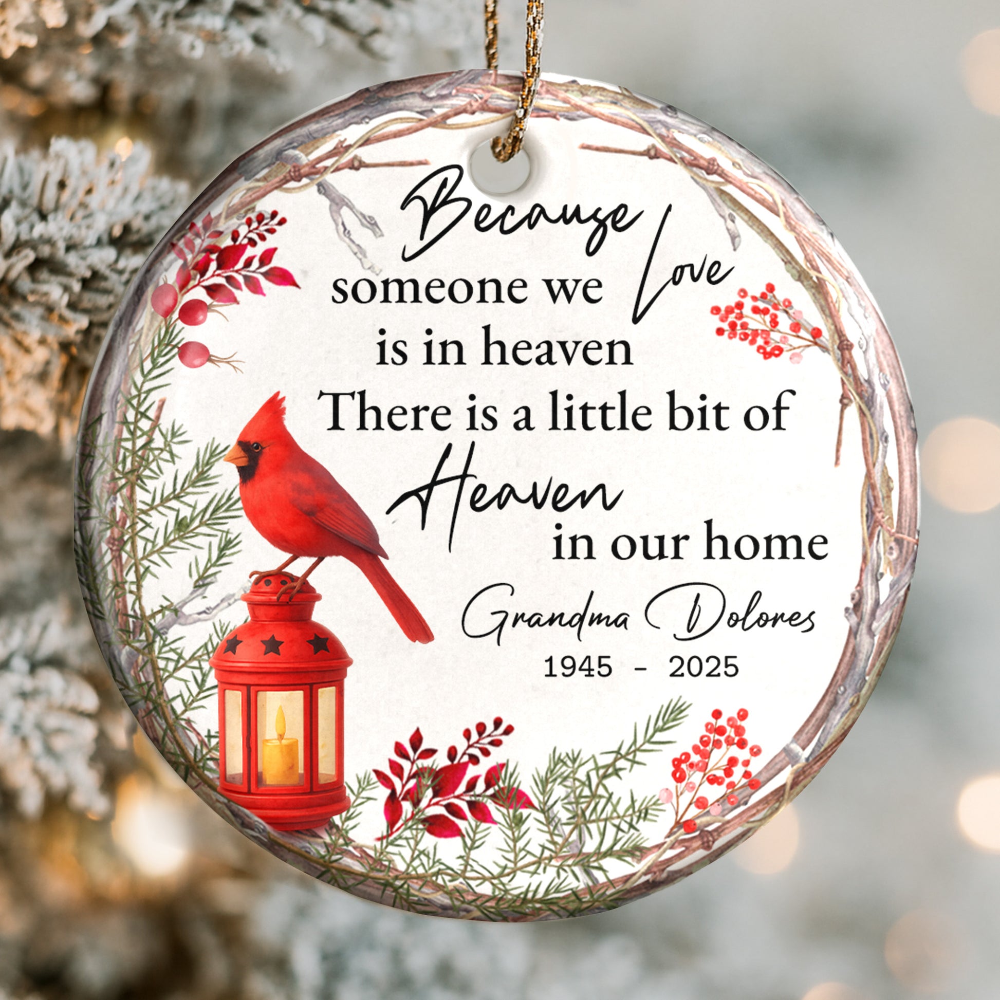 Because Someone We Love Is In Heaven, Cardinal And Lantern, Custom Ceramic Ornament, Gift For Family