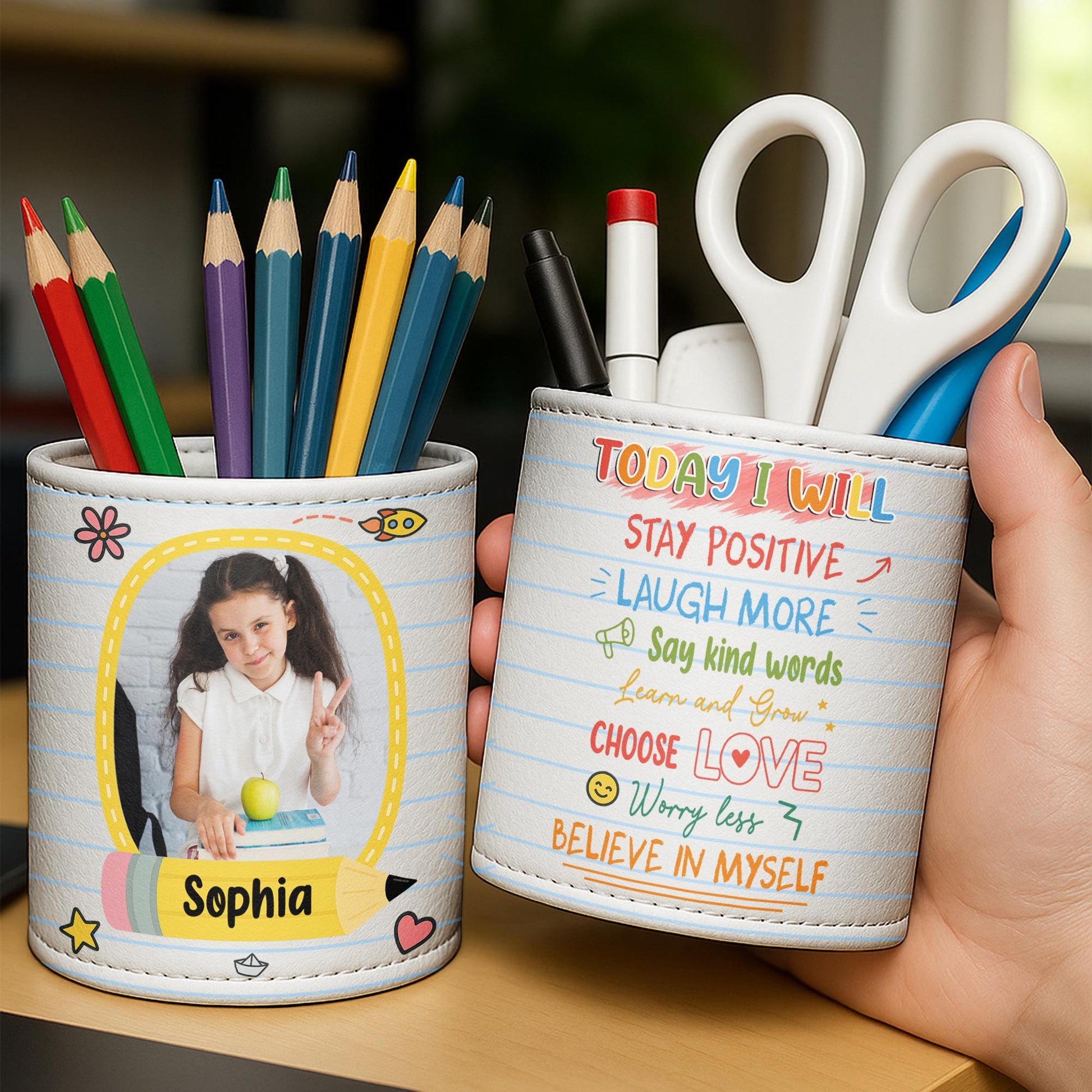 Capture The Joyous School Moments, Heart And Apple Design, Personalized Pen Holder, Gift For Students