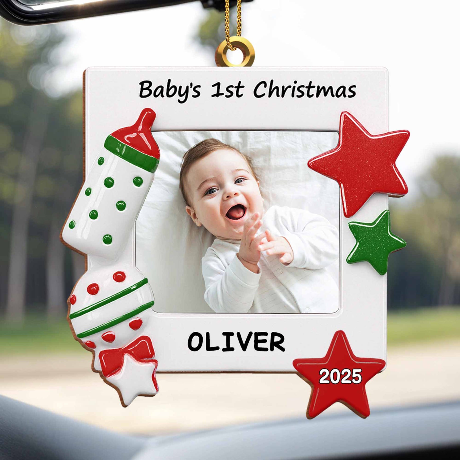 Célébrez le premier Noël de votre tout-petit : biberon et étoiles – Décoration en bois personnalisée, forme personnalisée – KID182_WDO