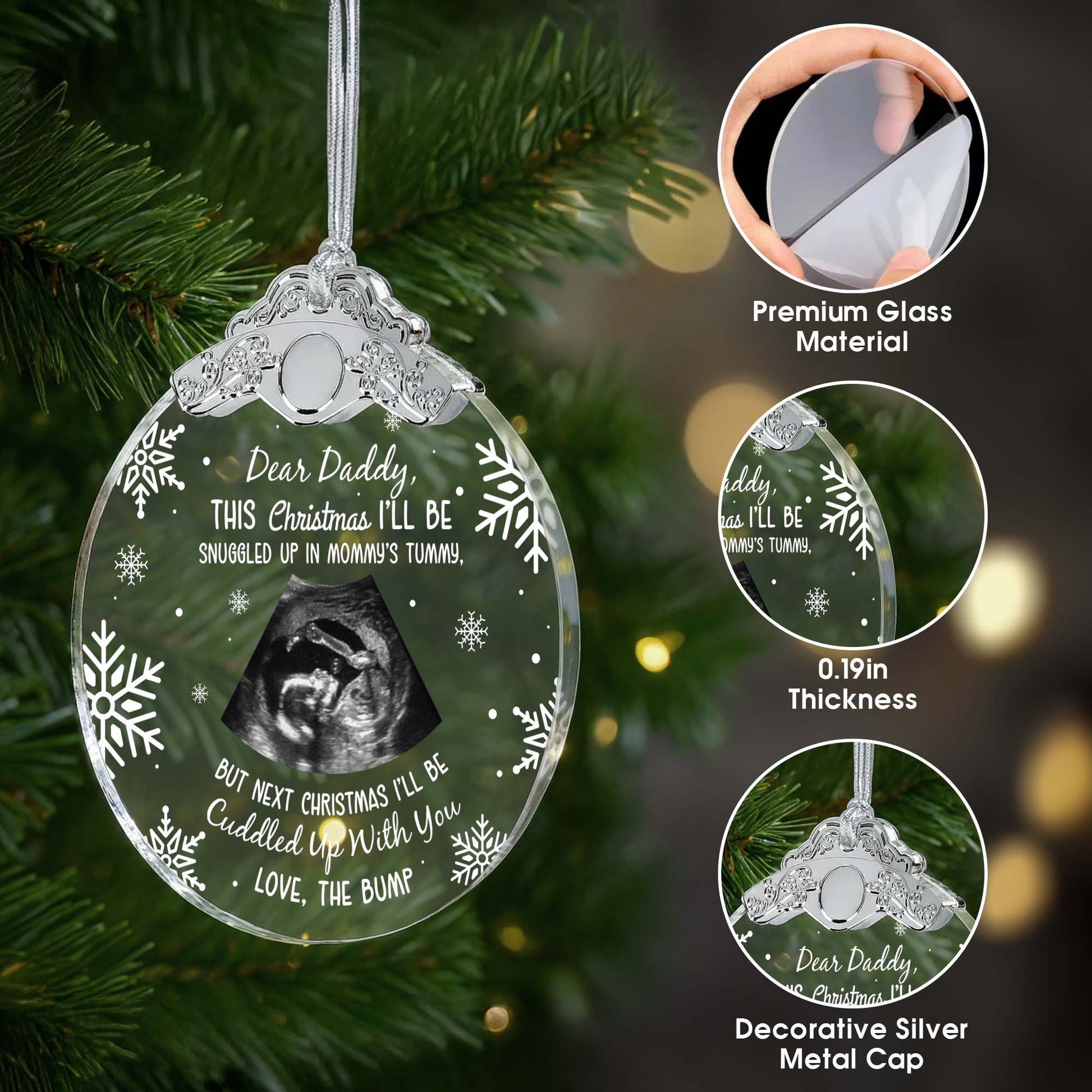 Dear Daddy This Christmas I'll Be Snuggled Up, Personalized Glass Ornament, Gift For Expectant Fathers