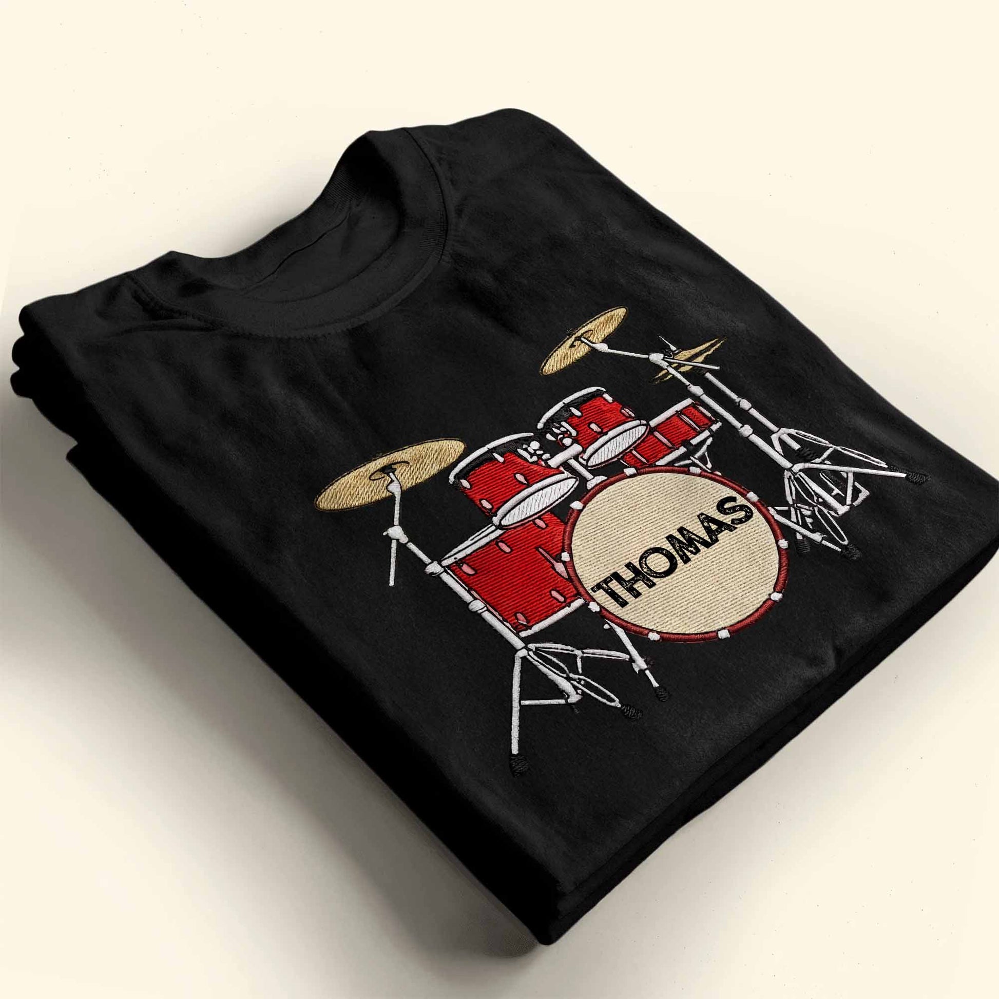 Drummer Personalized Custom Drum Set With 3D Embroidery - Personalized Custom Unisex T-shirt, Hoodie - MUSIC069_BBAS