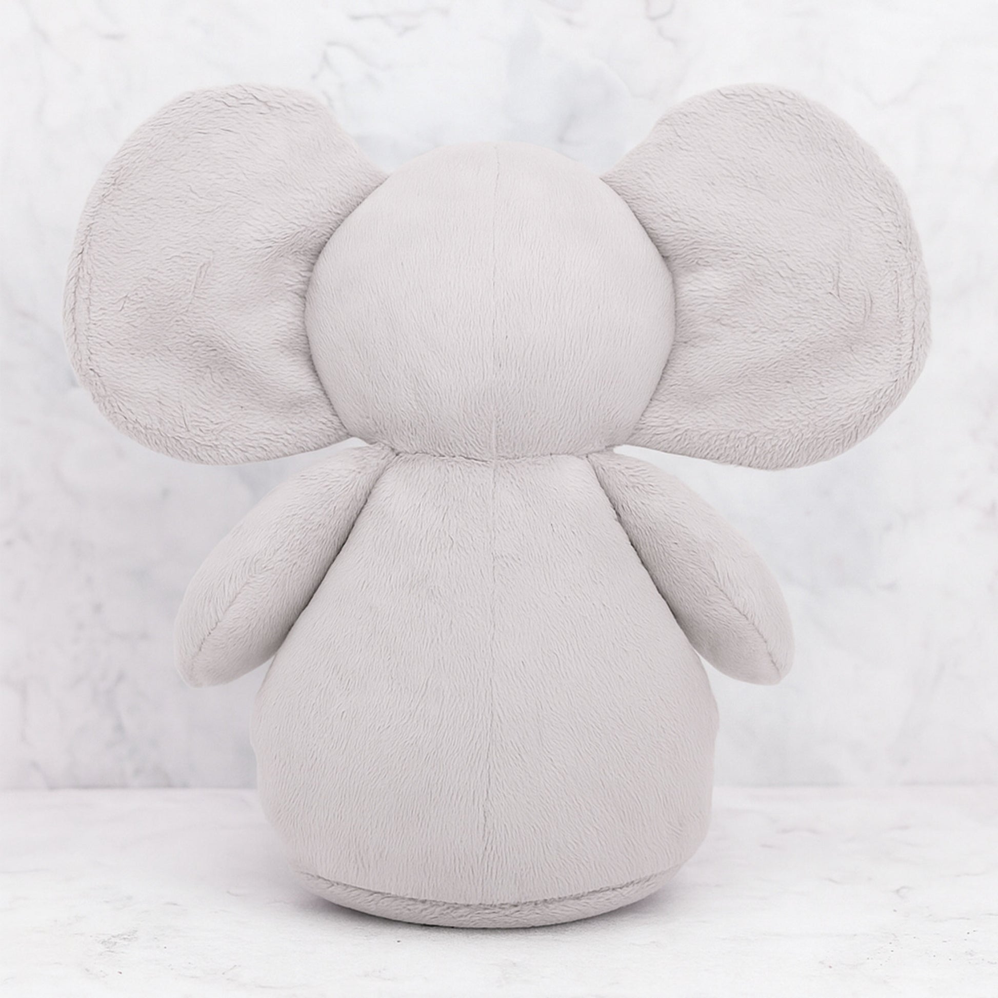 Envoyez des câlins à travers les kilomètres avec notre peluche éléphant personnalisée . Cette peluche de 25 cm présente des imprimés colorés sur une oreille et sur le ventre, parfaits pour écrire des noms, des dates ou un message spécial, ce qui en fait un souvenir réconfortant et réconfortant.