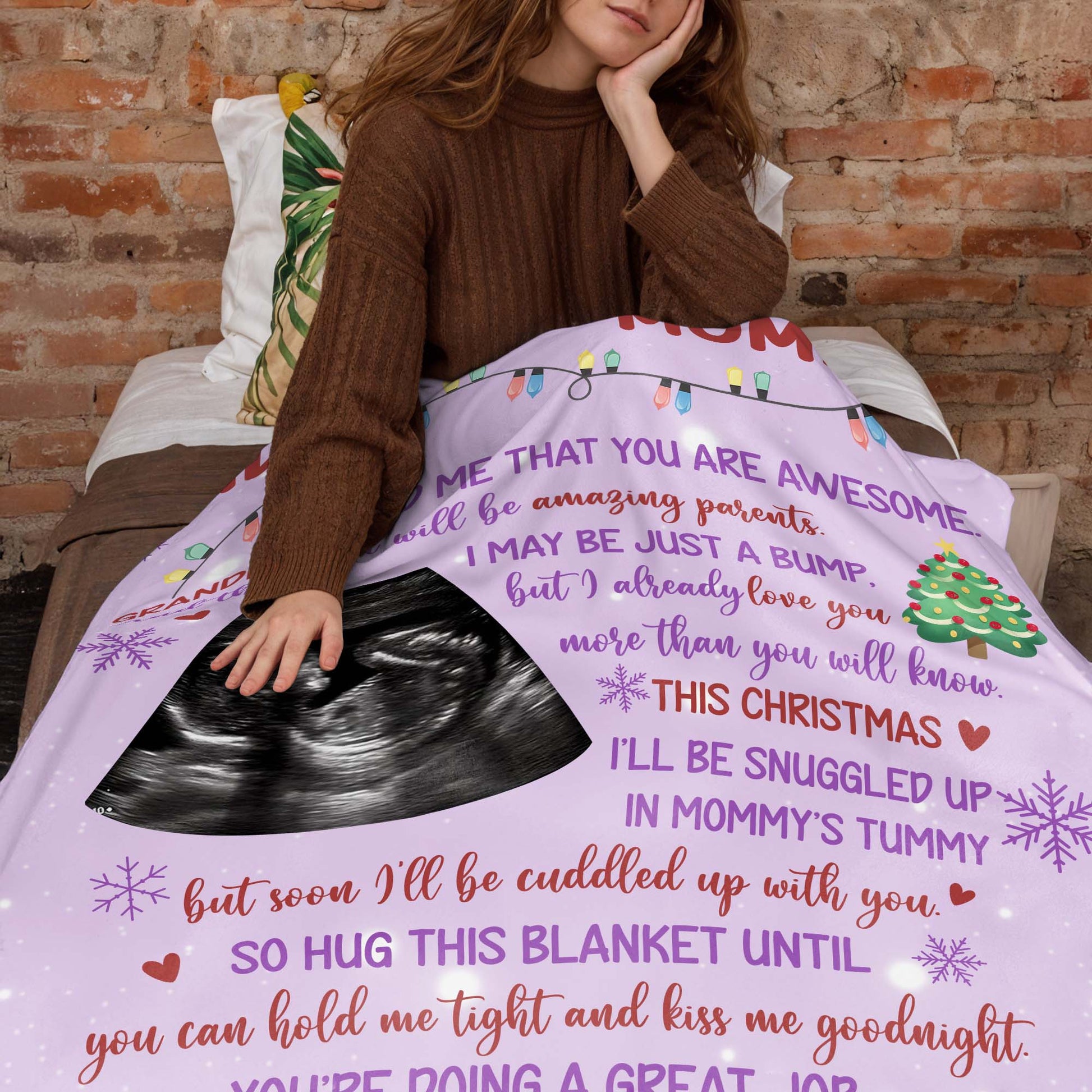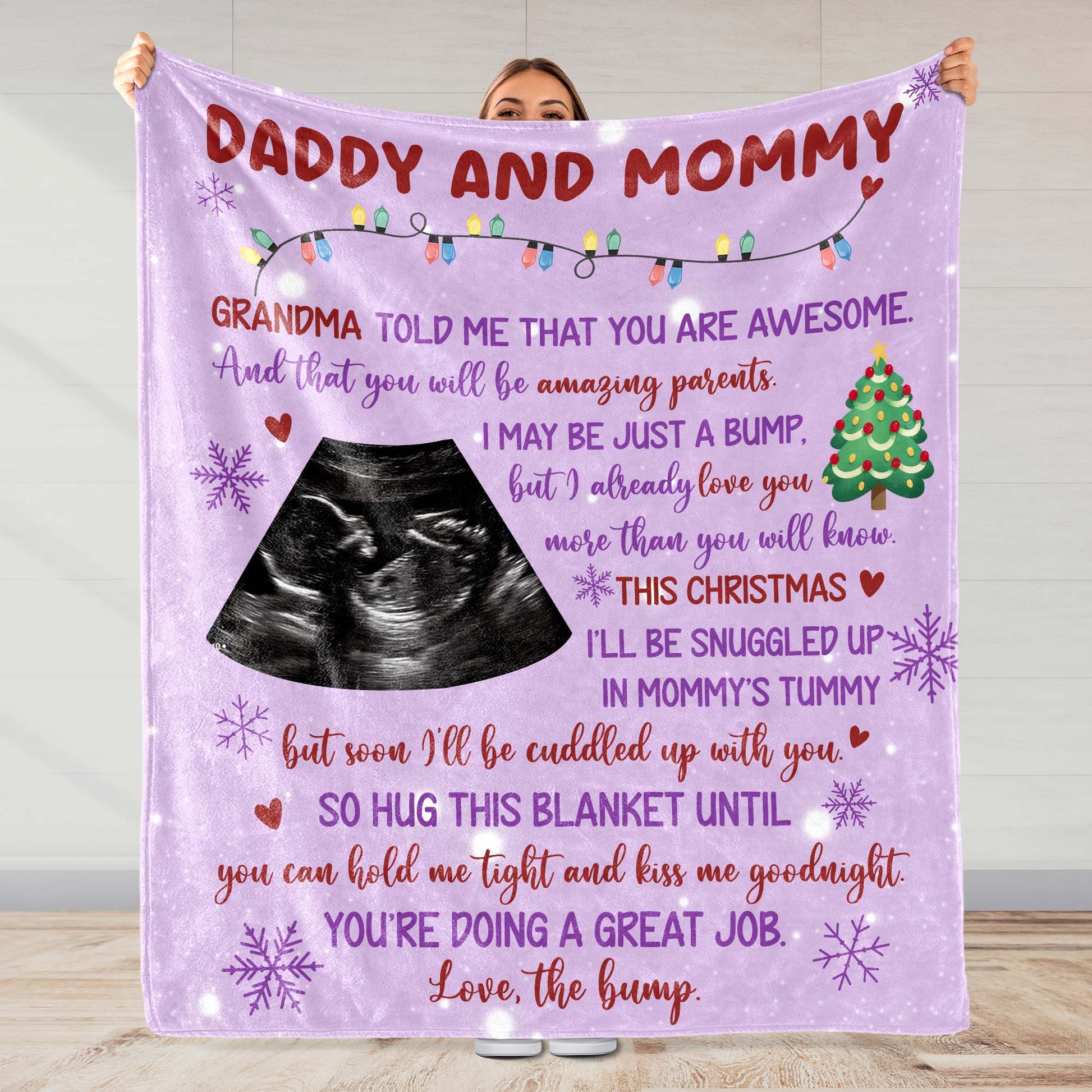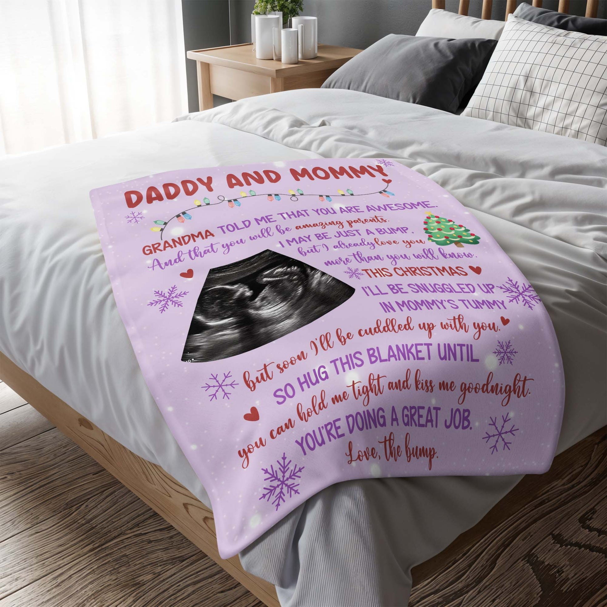 Grandma Told Me You Are Awesome, Ultrasound Image, Christmas Tree, Personalized Custom Blanket, Gift For Expecting Parents